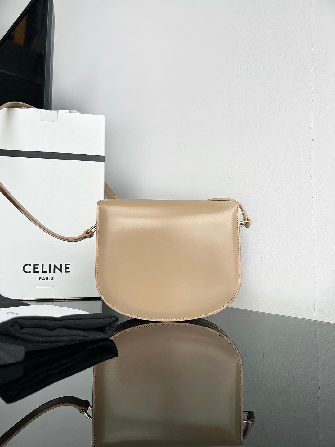CELINE TEEN BESACE TRIOMPHE Shiny Calfskin Handbag, Arc de Triomphe Saddle Bag, Original Leather + Full Steel Hardware, Dimensions: 18.5 X 16 X 6cm, Exterior Made of Original Calfskin, Original Sheepskin Lining, Can Be Worn Crossbody or on the Shoulder, Metal TRIOMPHE Logo Closure, 3 Interior Compartments, 1 Interior Zippered Pocket, 1 Interior Flat Pocket, Adjustable Long Strap
