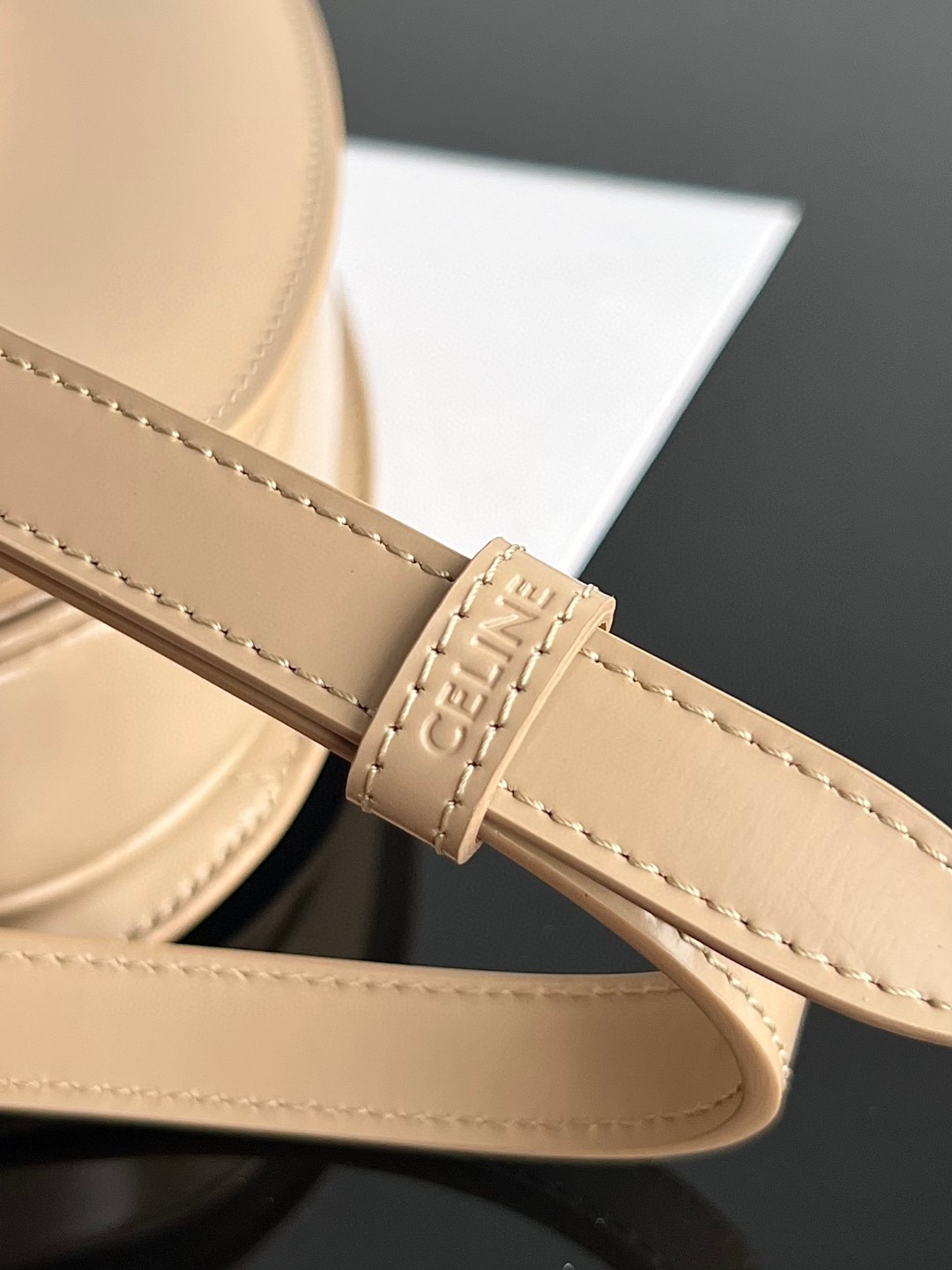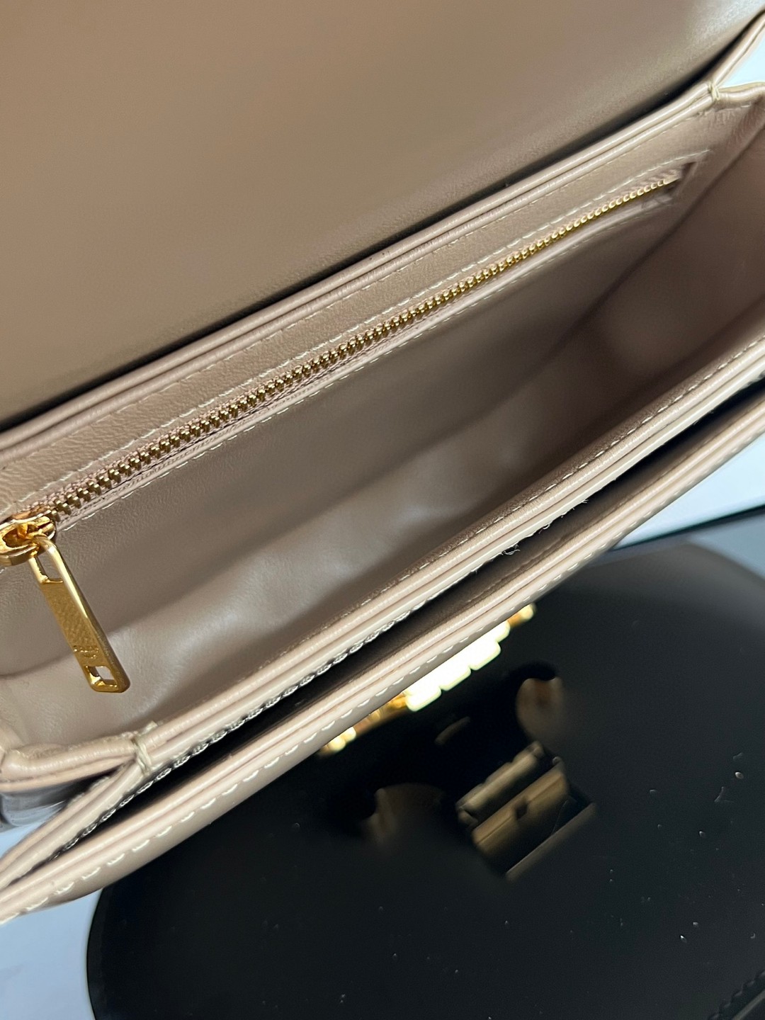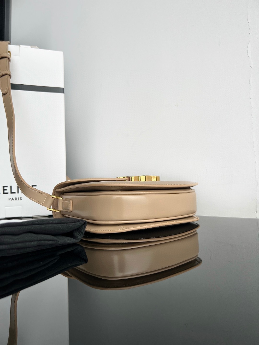 Home • Luggage • Celine Triomphe bag in glossy calfskin, 18.5x16x6cm, adjustable strap, multiple compartments.