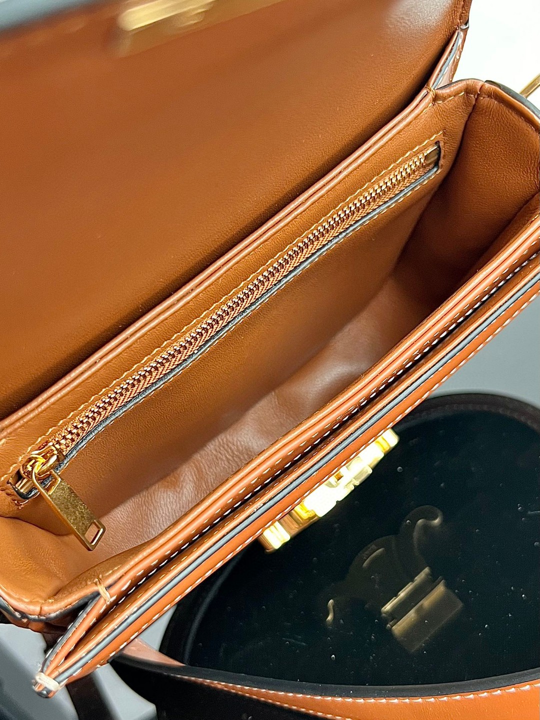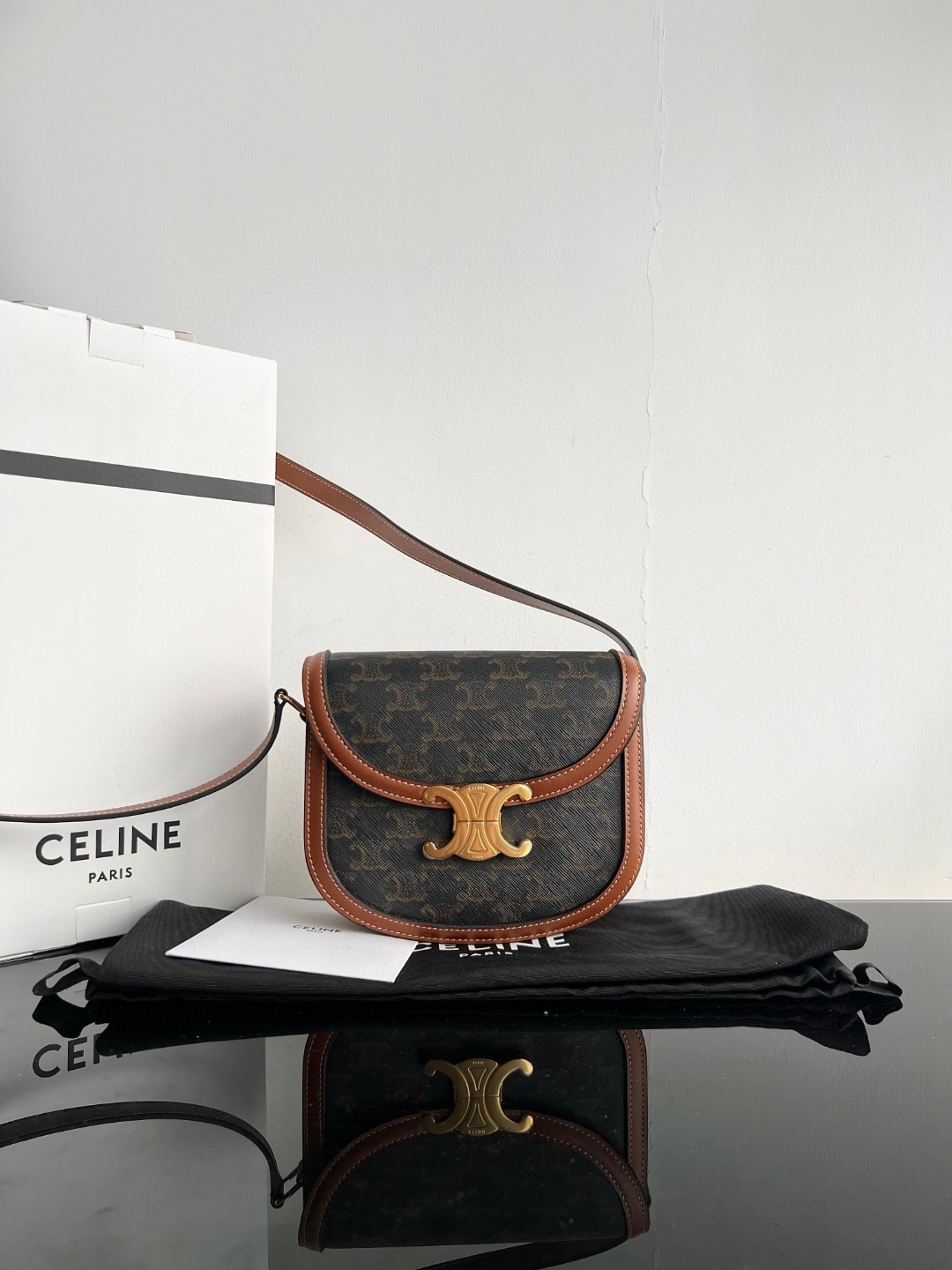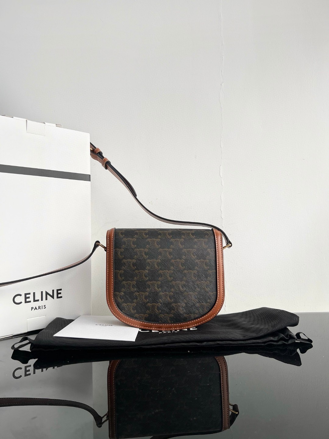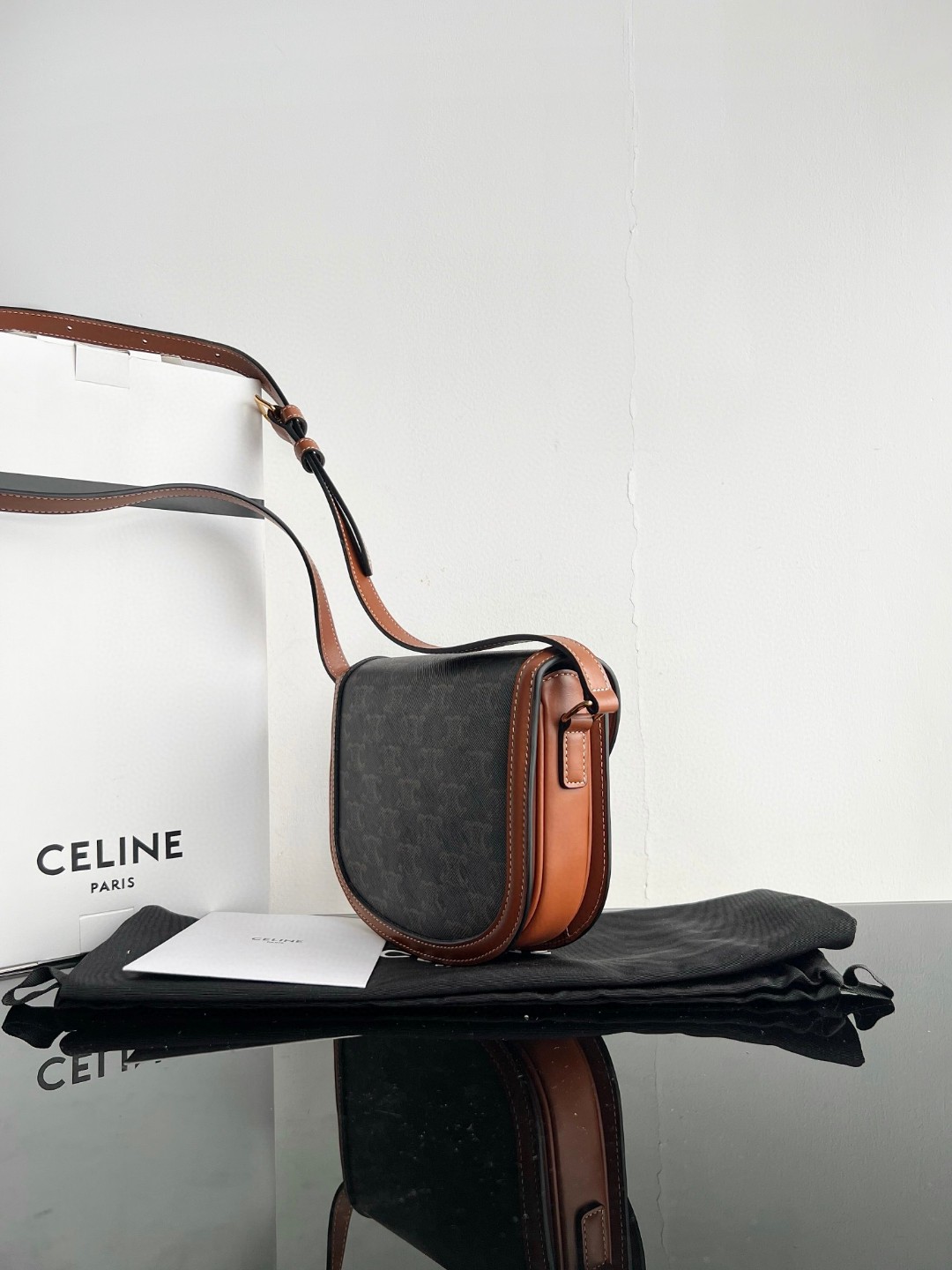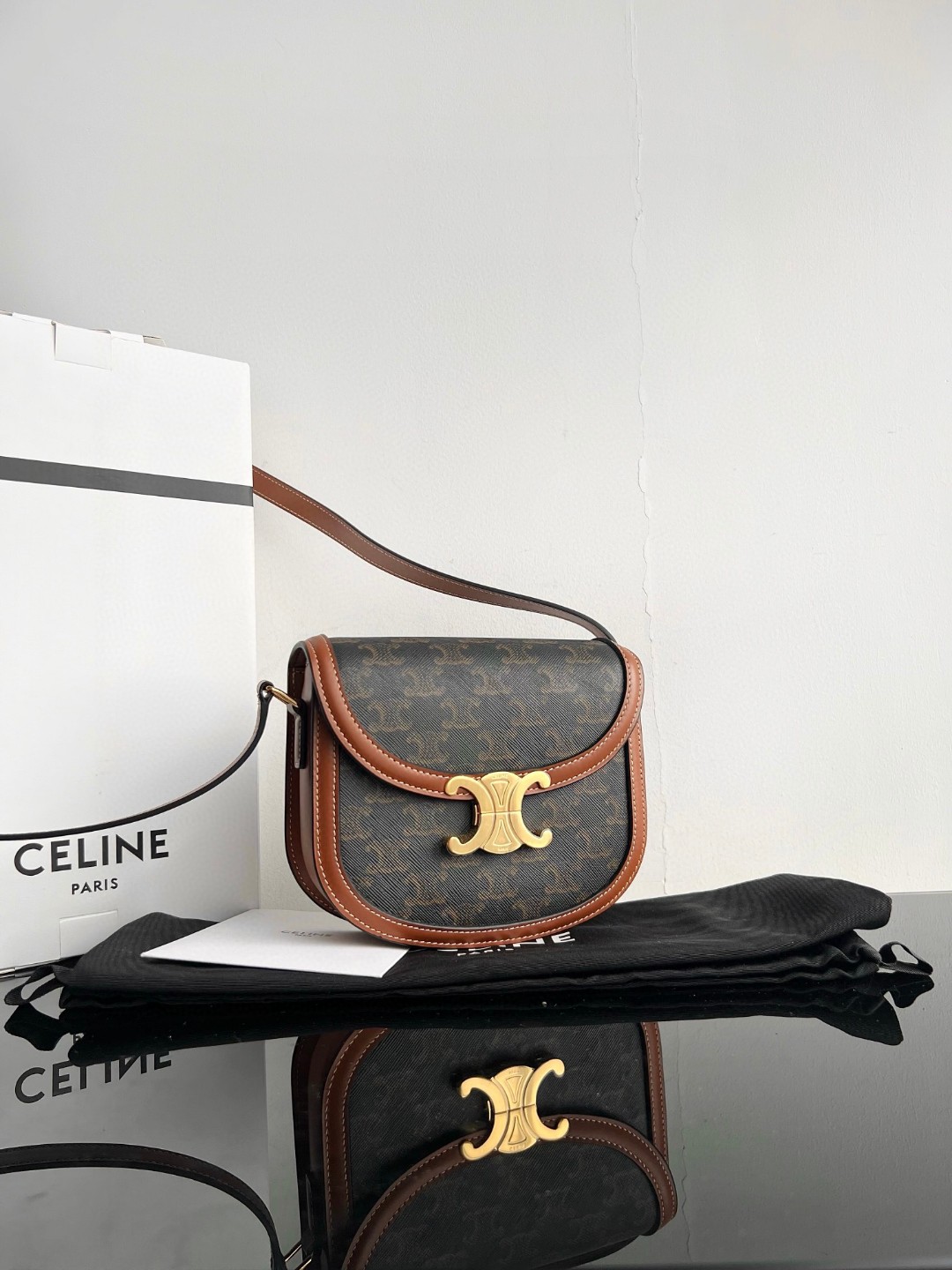 CELINE TEEN BESACE TRIOMPHE Shiny Calfskin Handbag, Triumph Arch Saddle Bag, Original Leather + Full Steel Hardware, Dimensions: 18.5 X 16 X 6cm, Exterior Original Calfskin, Original Sheepskin Lining, Can Be Worn Crossbody or on the Shoulder, Metal TRIOMPHE Logo Closure, 3 Interior Compartments, 1 Interior Zippered Pocket, 1 Interior Flat Pocket, Adjustable Long Strap