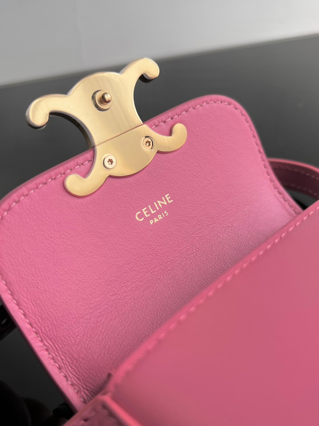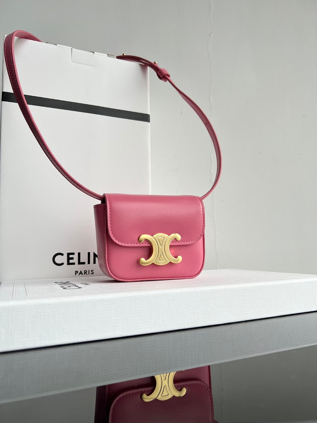 CELINE mini mini Arc de Triomphe TRIOMPHE glossy calfskin handbag, earbud case Dimensions: 11 X 8 X 4cm, original factory calfskin + retro glossy hardware, heavily crafted 【Cannot fit a phone】