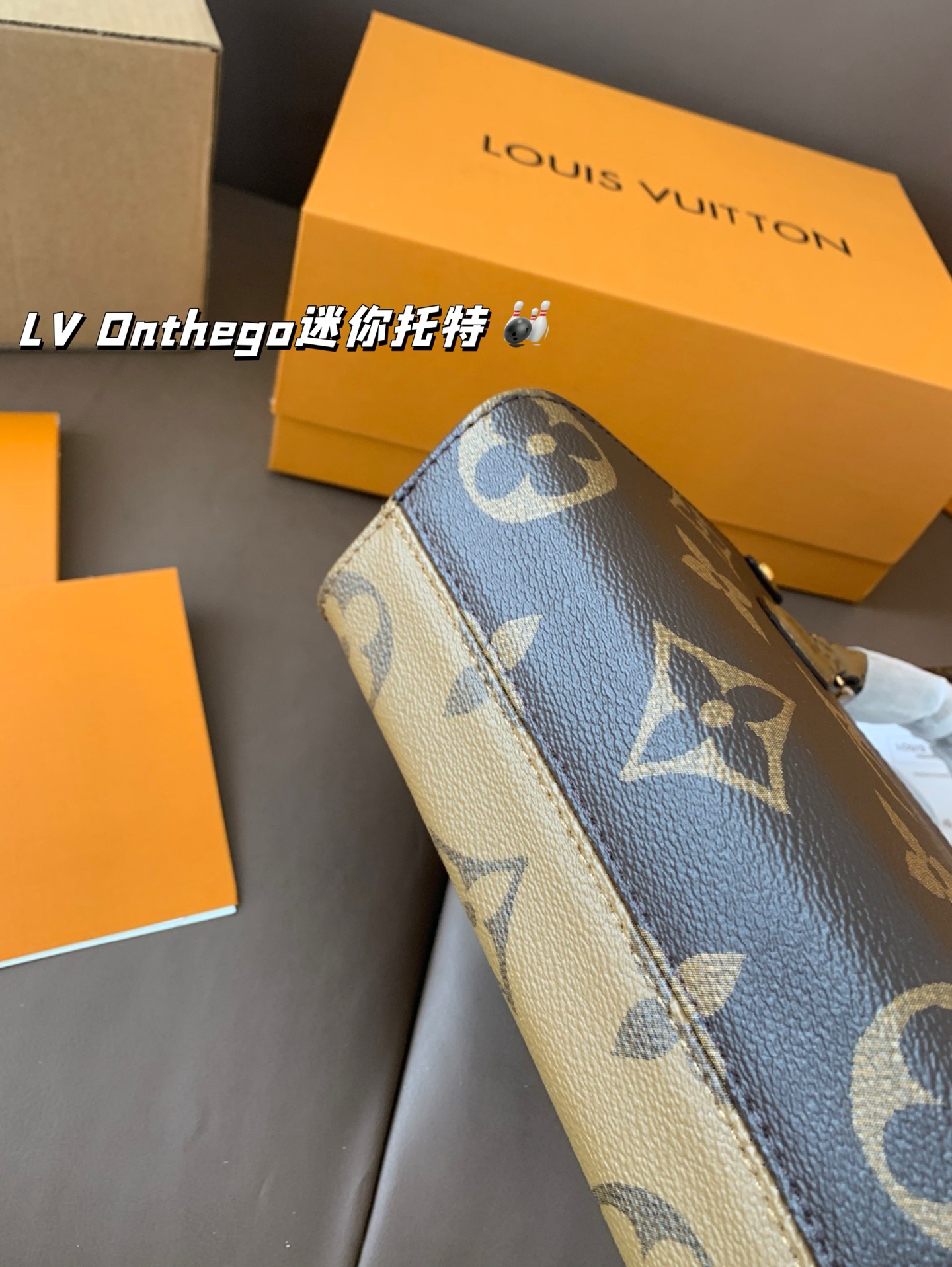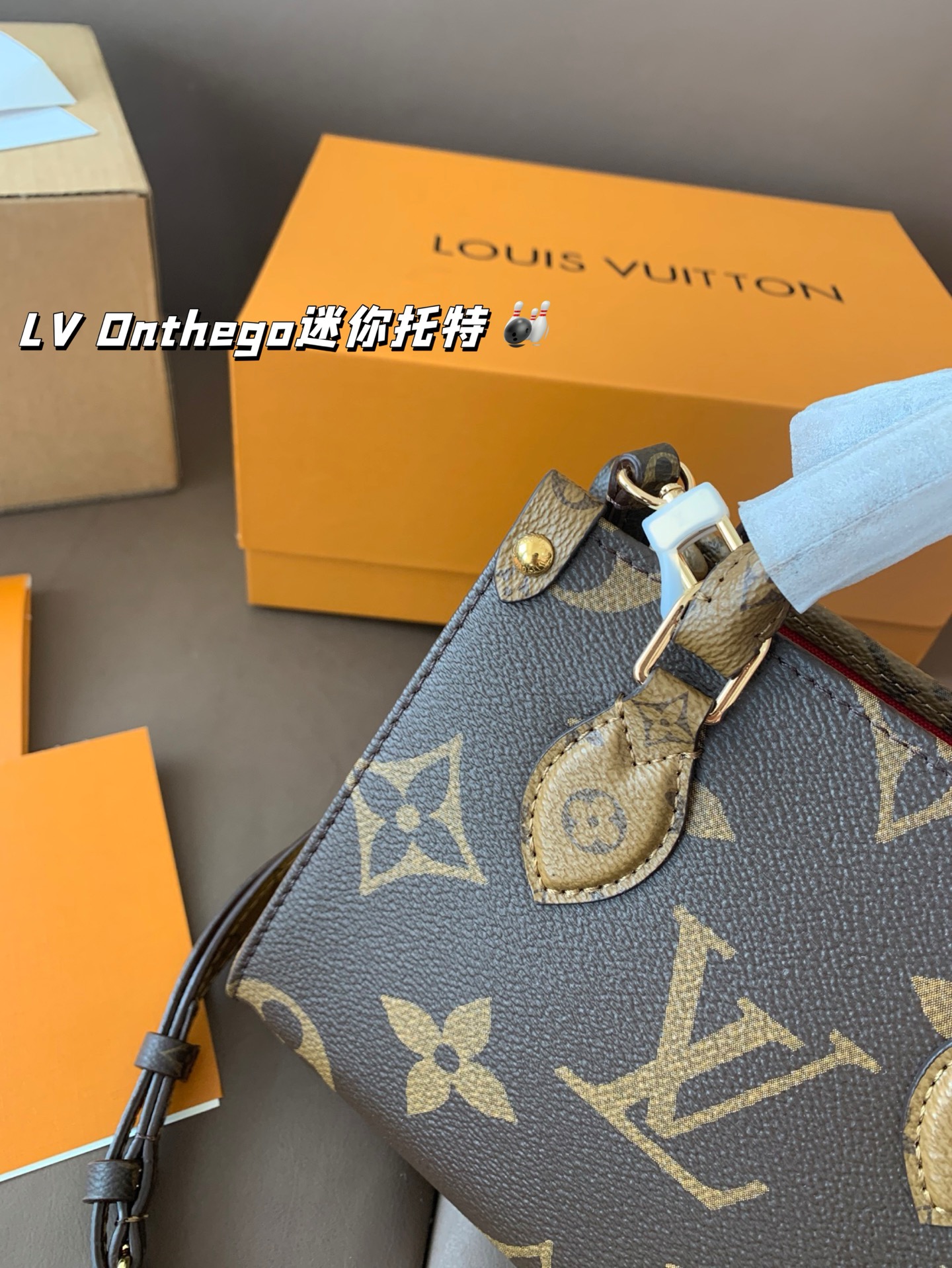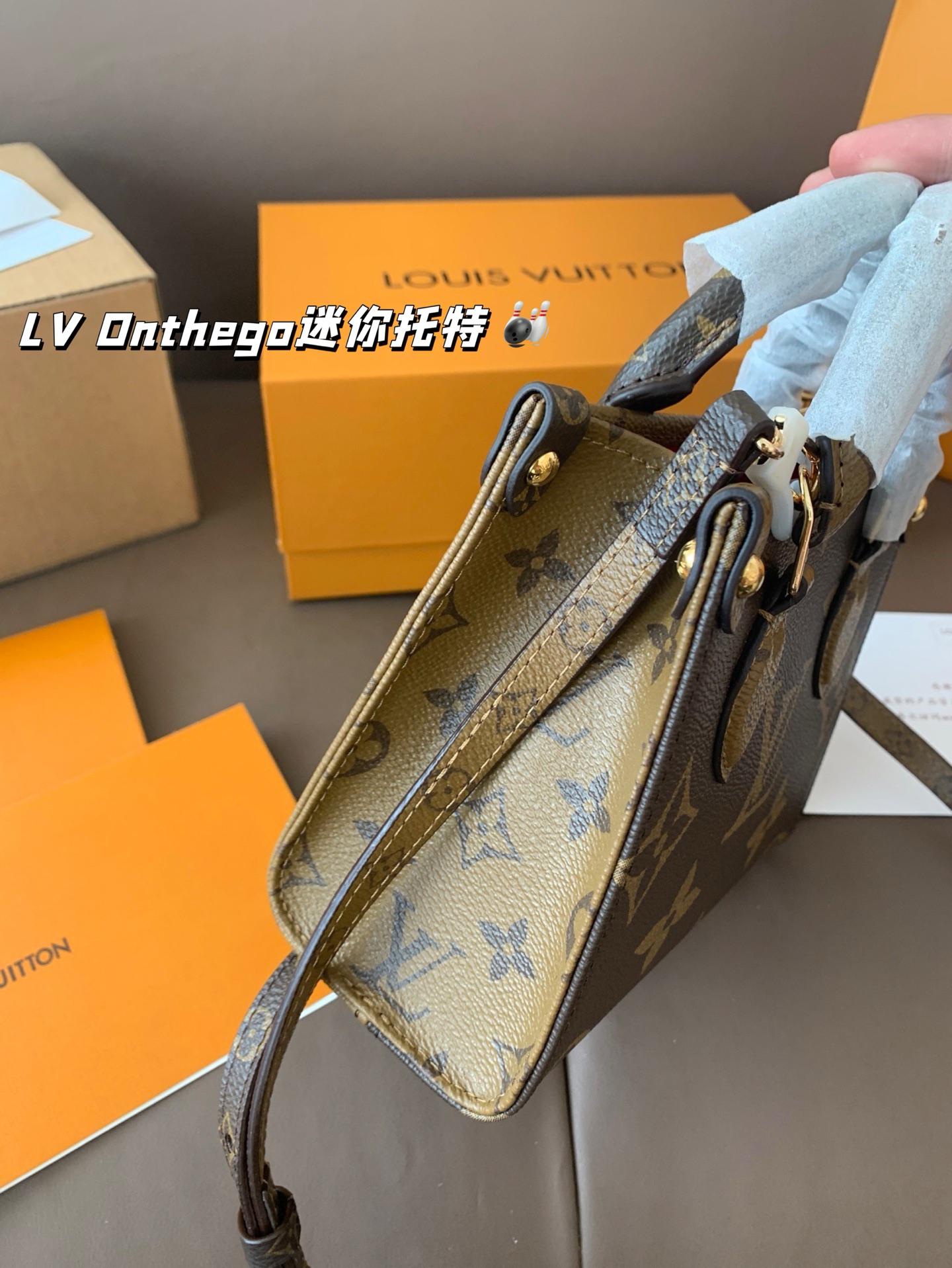 With airplane box folding box LV Onthego mini tote line simple, neat, bag on the body atmospheric, large capacity size 18*15