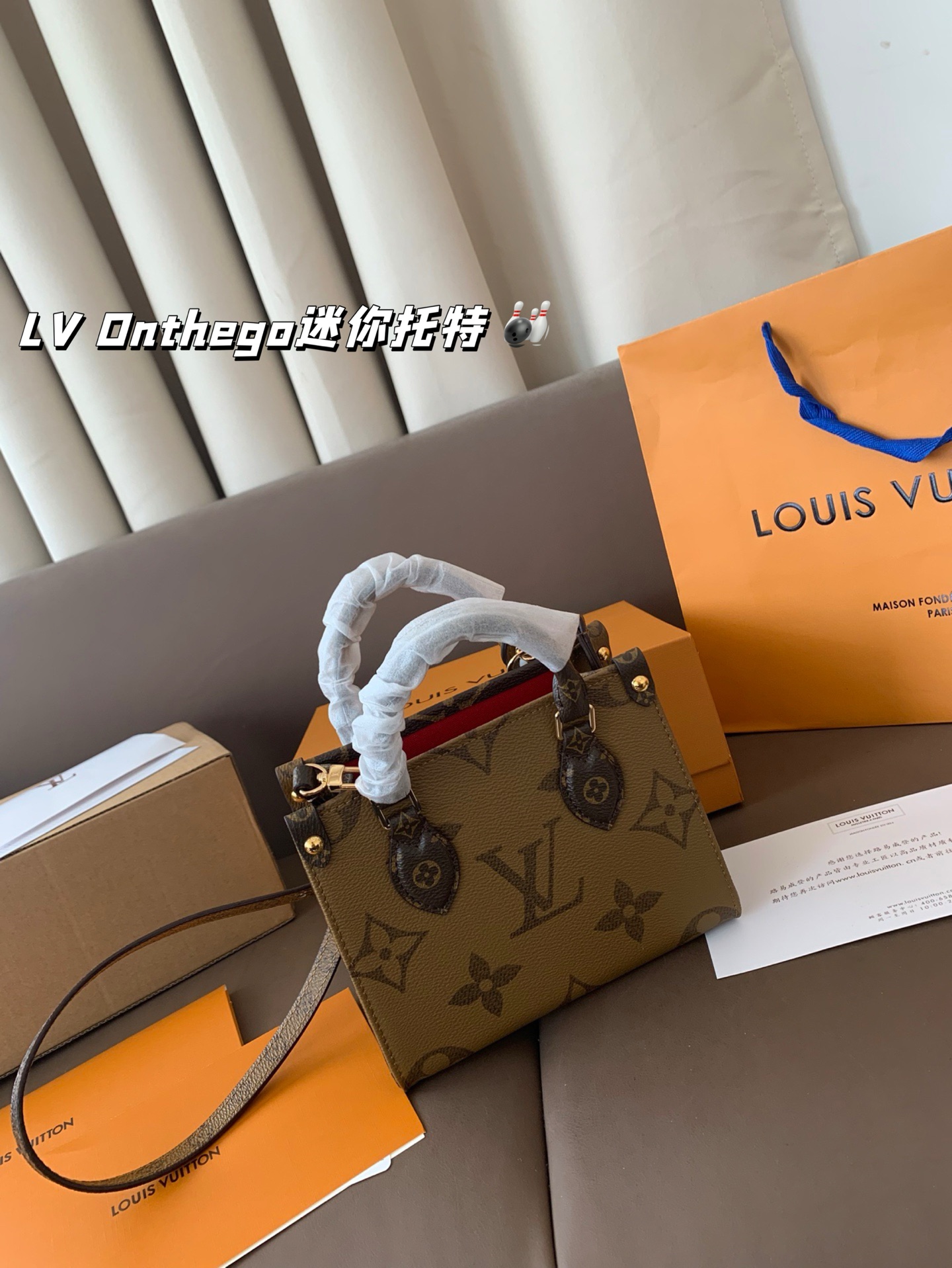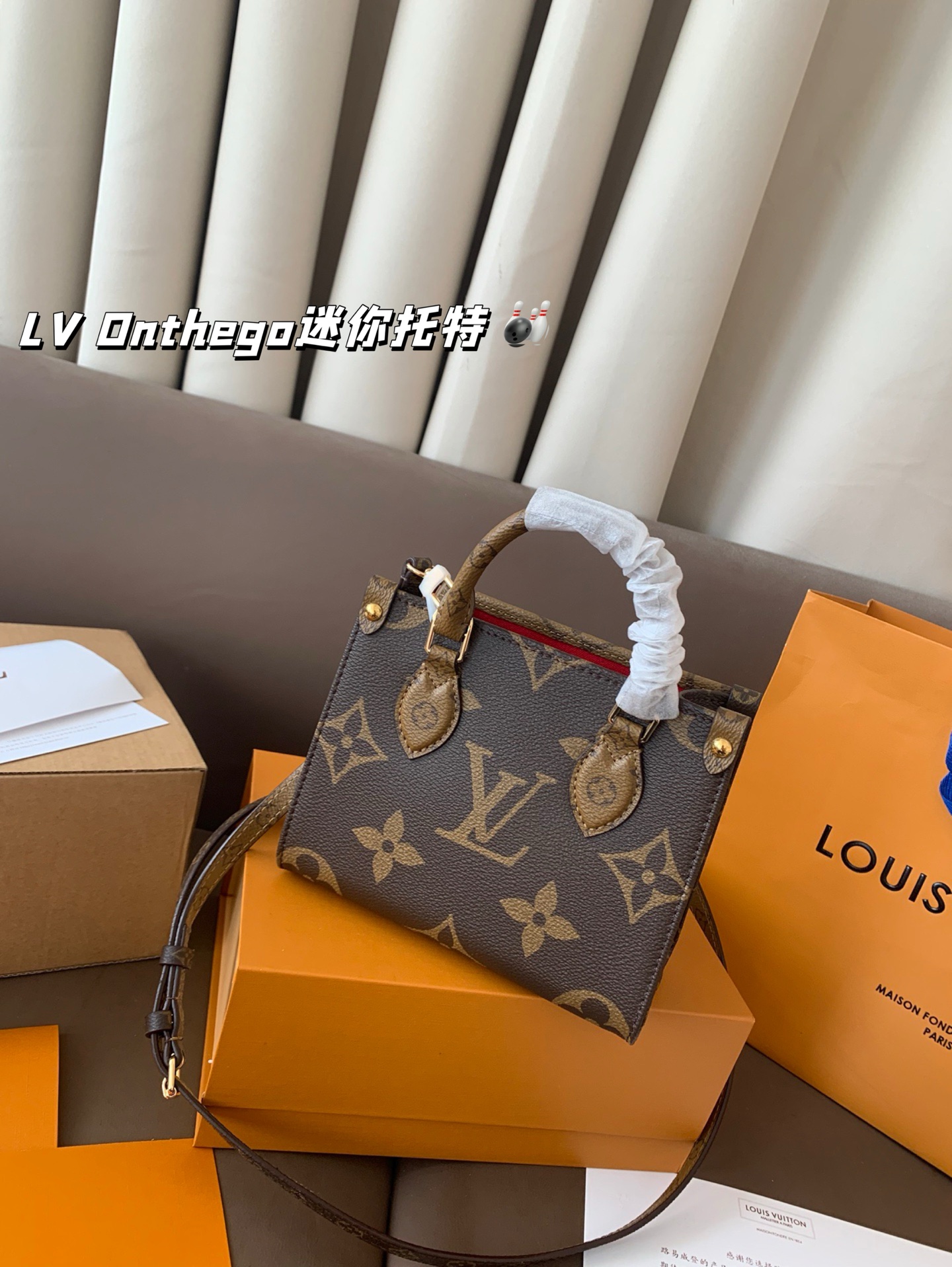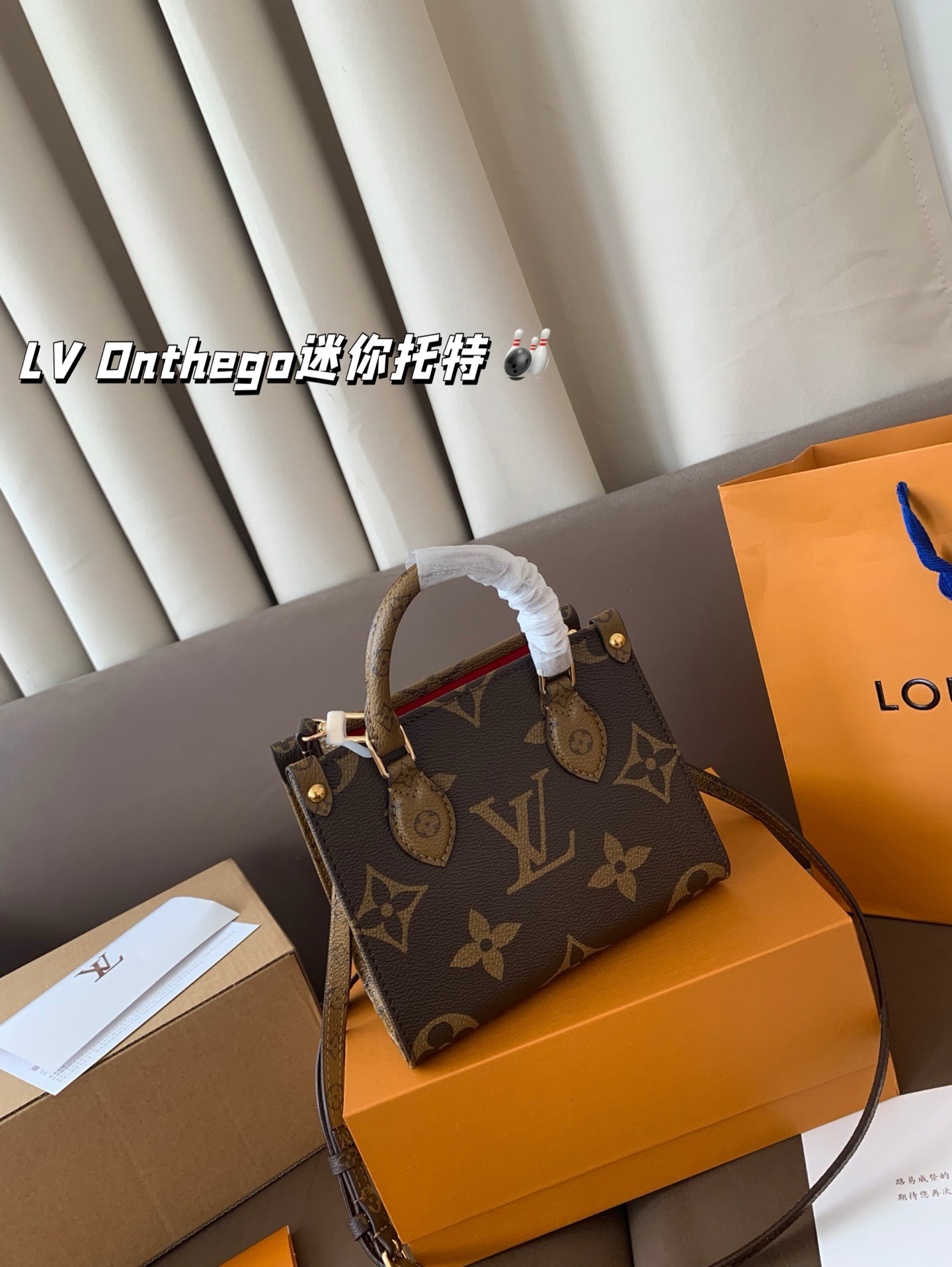 With airplane box folding box LV Onthego mini tote line simple, neat, bag on the body atmospheric, large capacity size 18*15