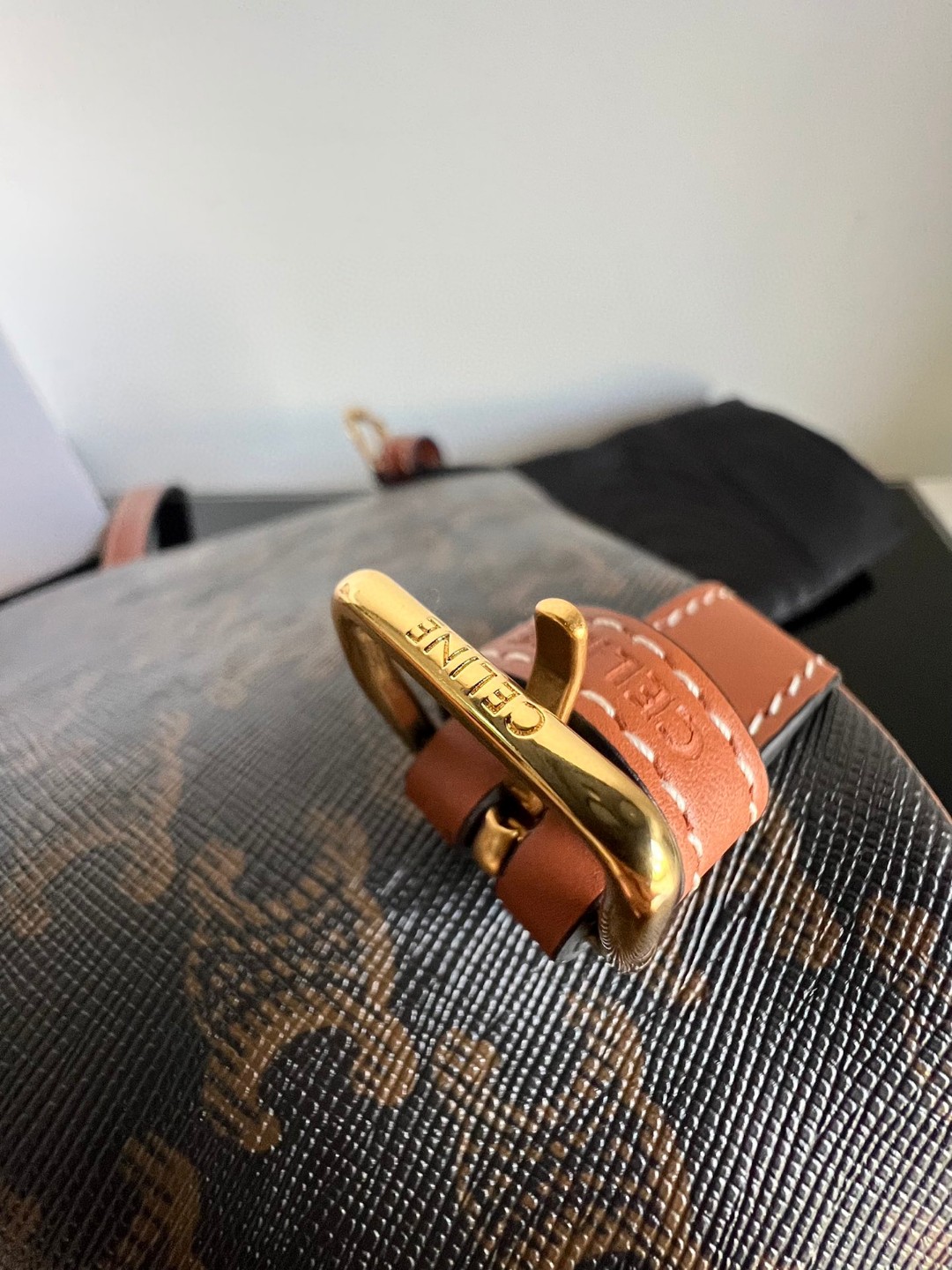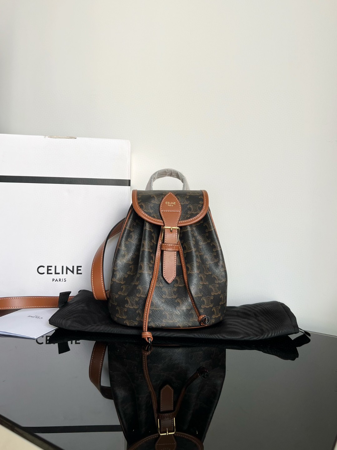 CELINE FOLCO Logo Print Calfskin Mini Backpack, Monogram Backpack, Dimensions: 17 X 20 X 10cm, This model 【cannot】accommodate larger IPADs and other smart tablets, TRIOMPHE CANVAS logo print, Calfskin edging, Fabric lining