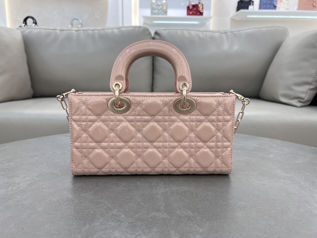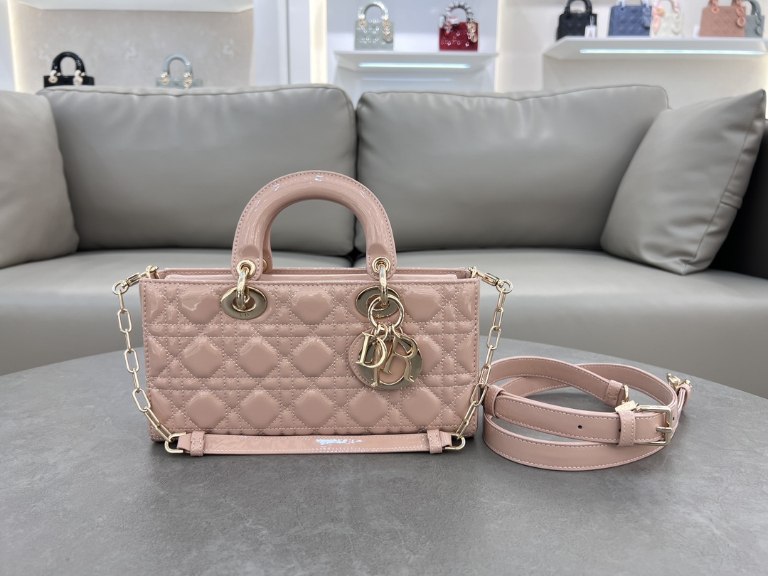 This Lady D-Joy handbag interprets Dior's profound insight into elegance and beauty. The elegant and classic style is meticulously crafted with imported patent leather embroidery thread and the brand's classic Cannage pattern. It is enhanced with a light gold-finished metal Dior charm, adding a touch of dynamism to the exquisite silhouette. Equipped with a detachable chain shoulder strap and an adjustable, detachable leather shoulder strap, it can be carried by hand, on the shoulder, or cross-body, making it an ideal choice for everyday goddesses.