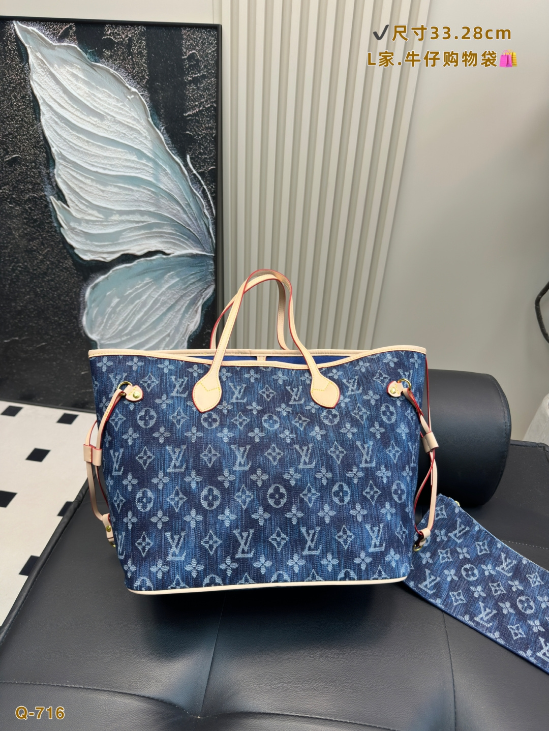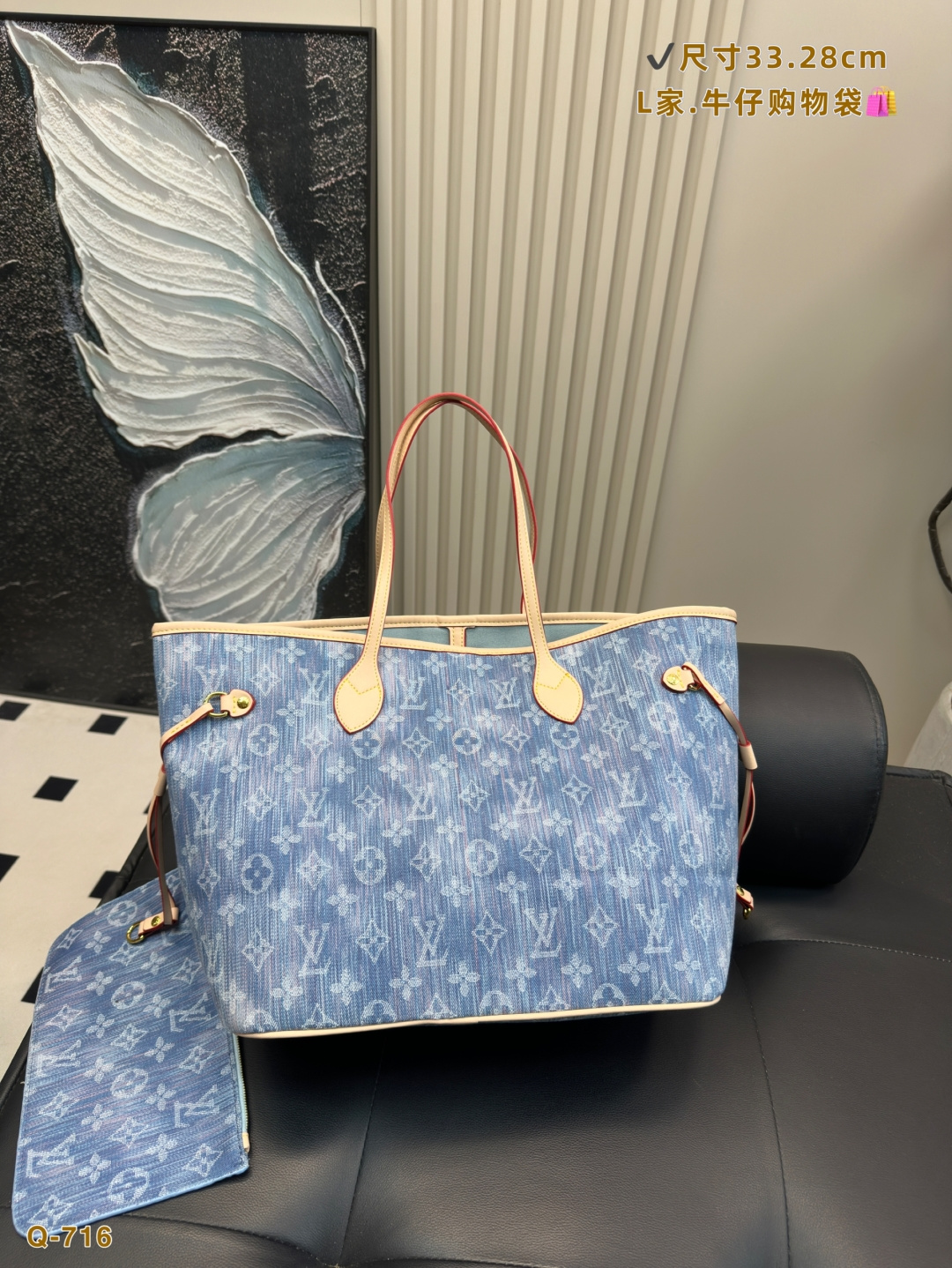 LV Neverfull denim shopping bag. I never used to get the appeal of the classic NF bag. The LV Neverfull is arguably one of LV's most iconic bags and is often chosen as many people's first luxury bag or first LV bag. I didn't use mine much before, thinking it was too big or a bit old-fashioned and hard to style. Until one day, I took an LV scarf that I originally bought as part of a purchase requirement and tied it onto the NF bag—suddenly, it looked so much better! The main compartment is perfect for holding touch-up makeup, and the space is super spacious and practical. The thin straps look great whether worn on the shoulder or carried by hand. Classic is classic for a reason—no matter how much time passes, it always feels timeless and intriguing. A highly valuable LV piece.