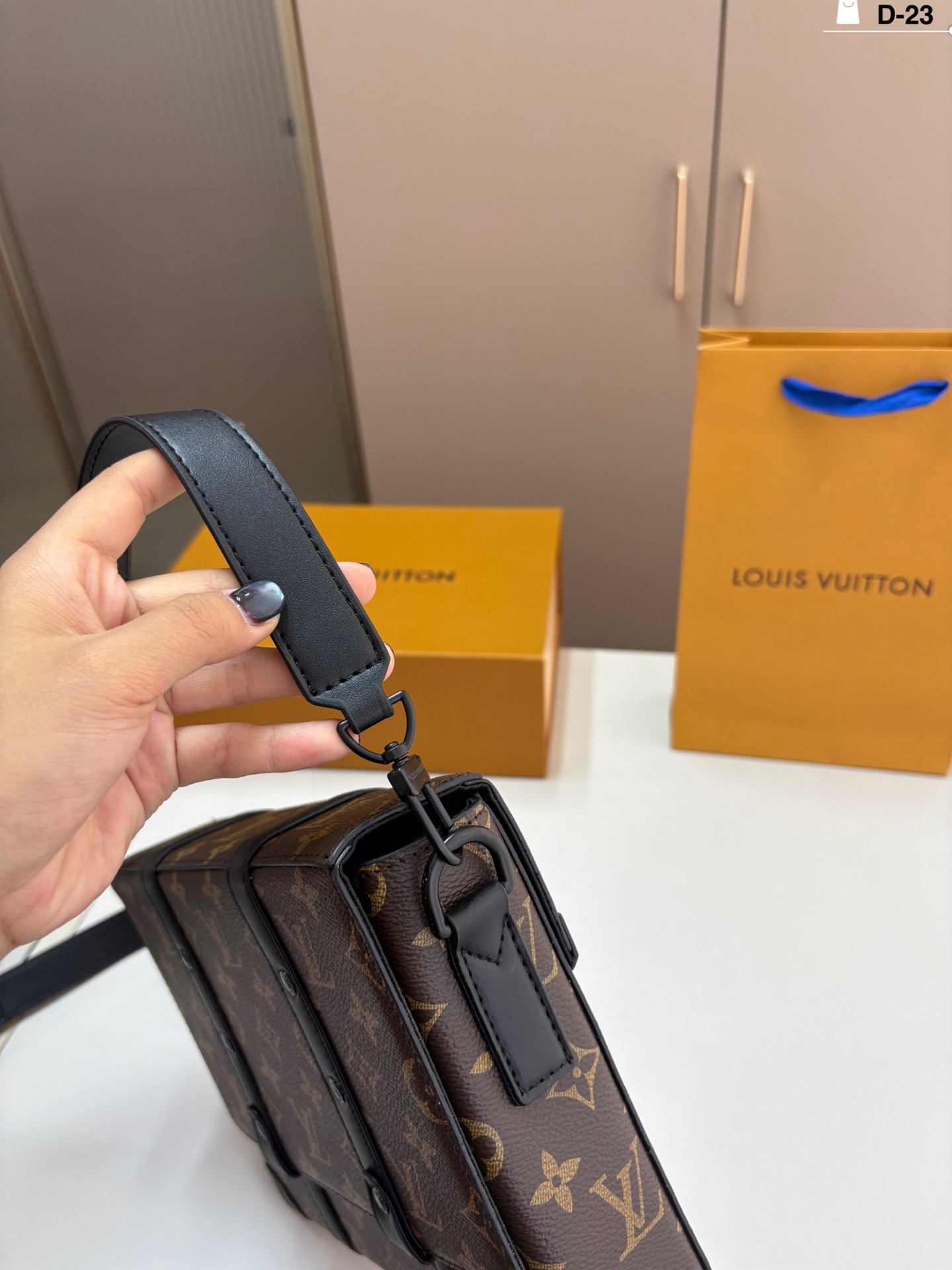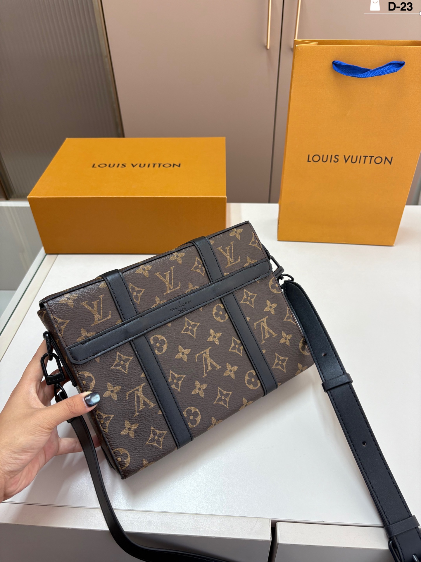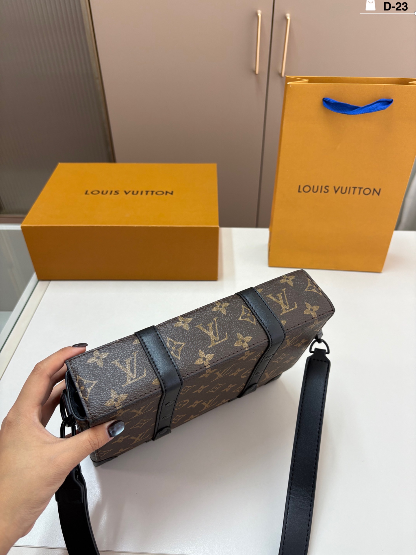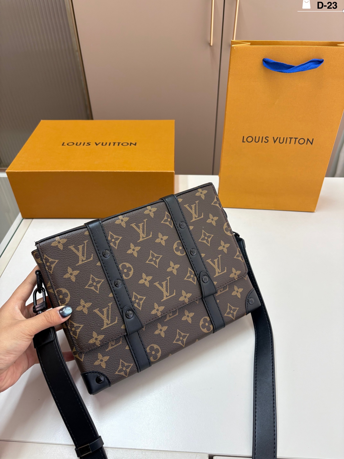 Home • Luggage • LV Messenger Bag TRUNK MESSENGER. Keeps items organized and easily accessible. D-23 size 24×19 folding box.