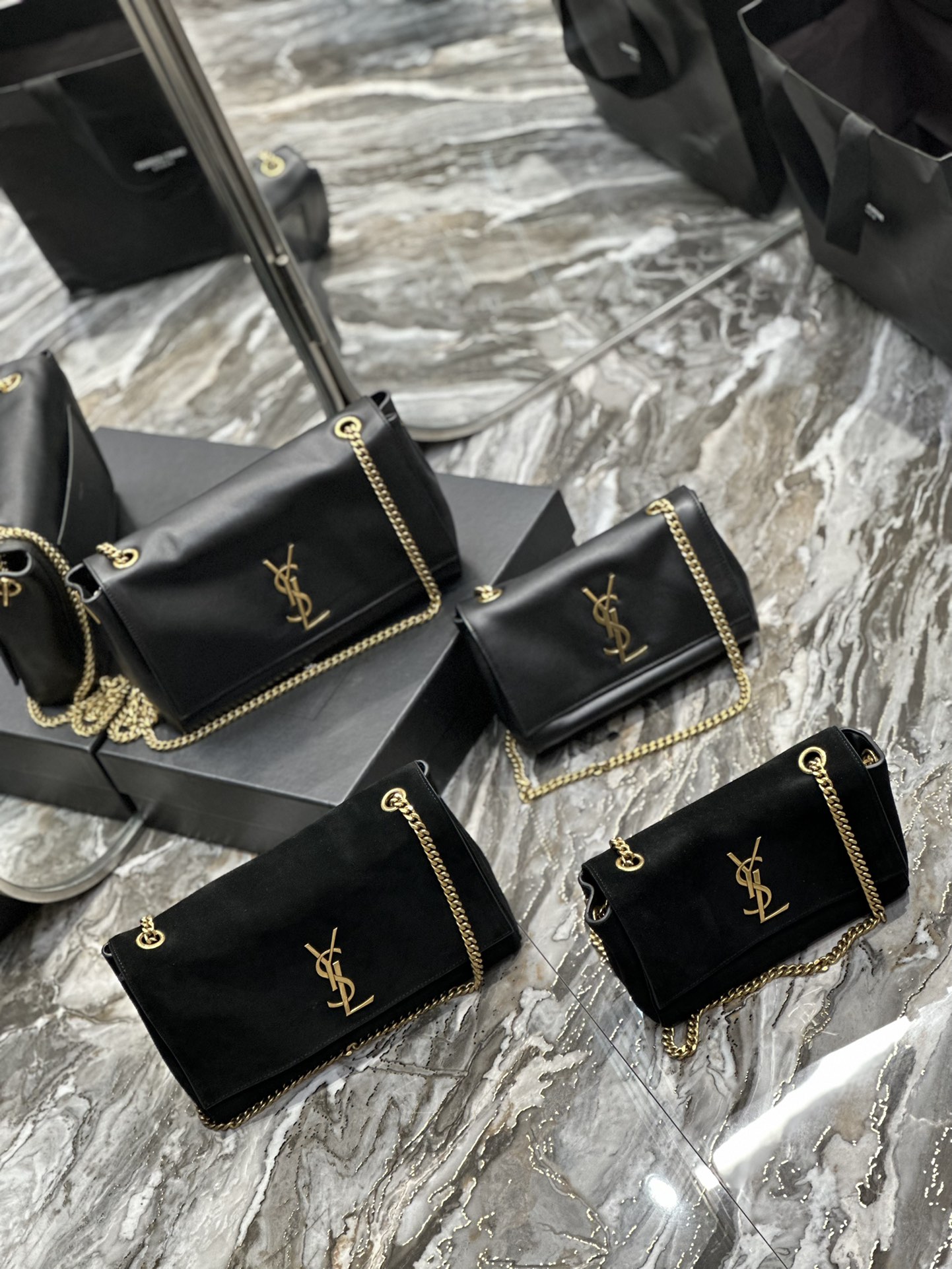 YSL Saint Laurent Kate Double-Sided Black Smooth Leather and Suede 22/28cm