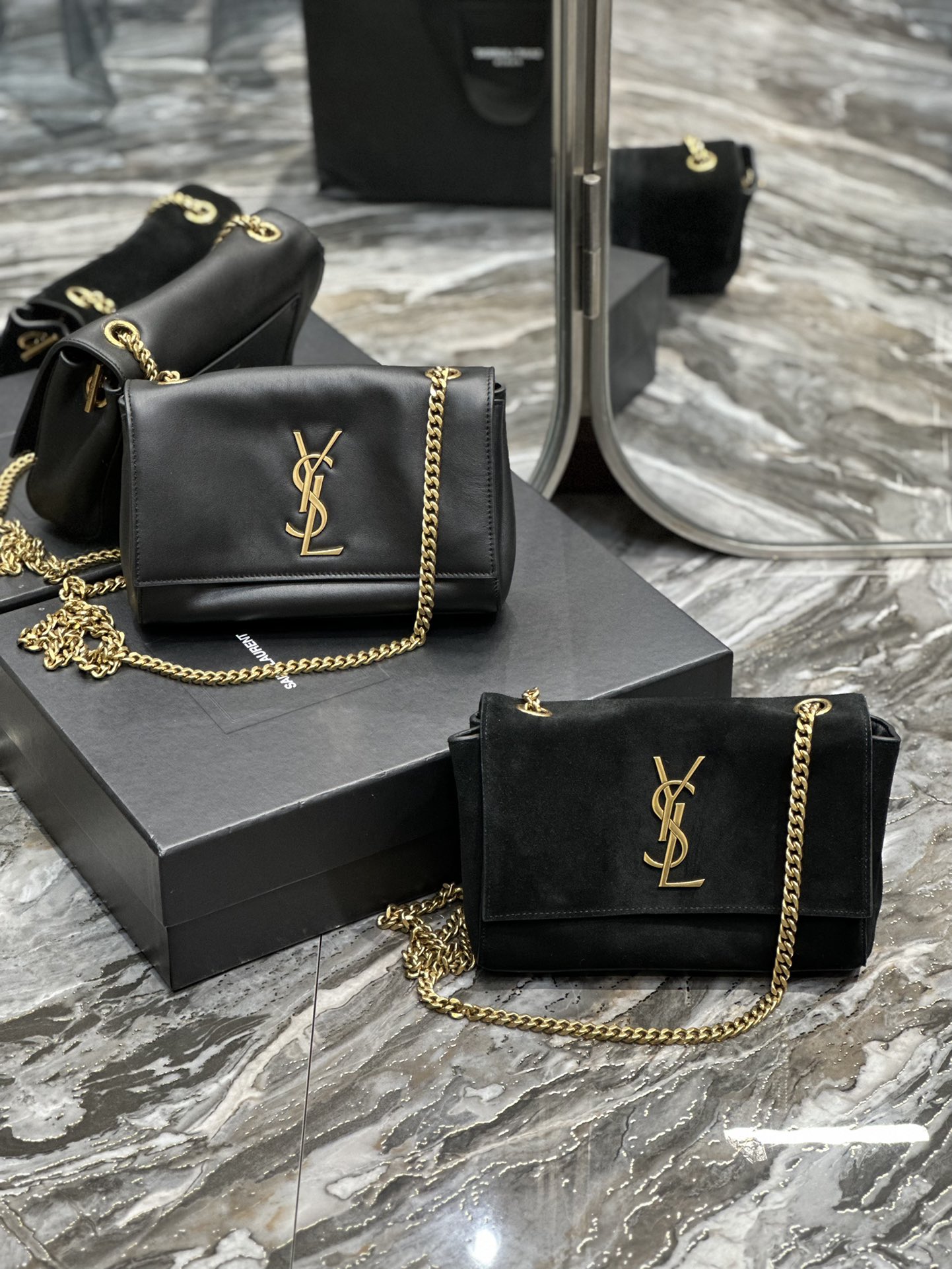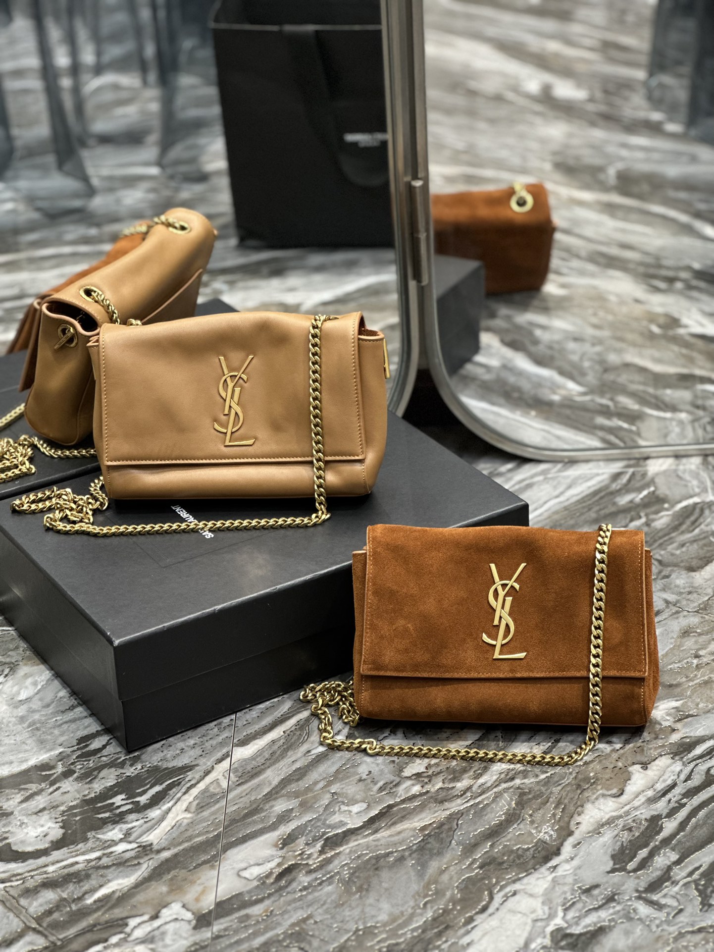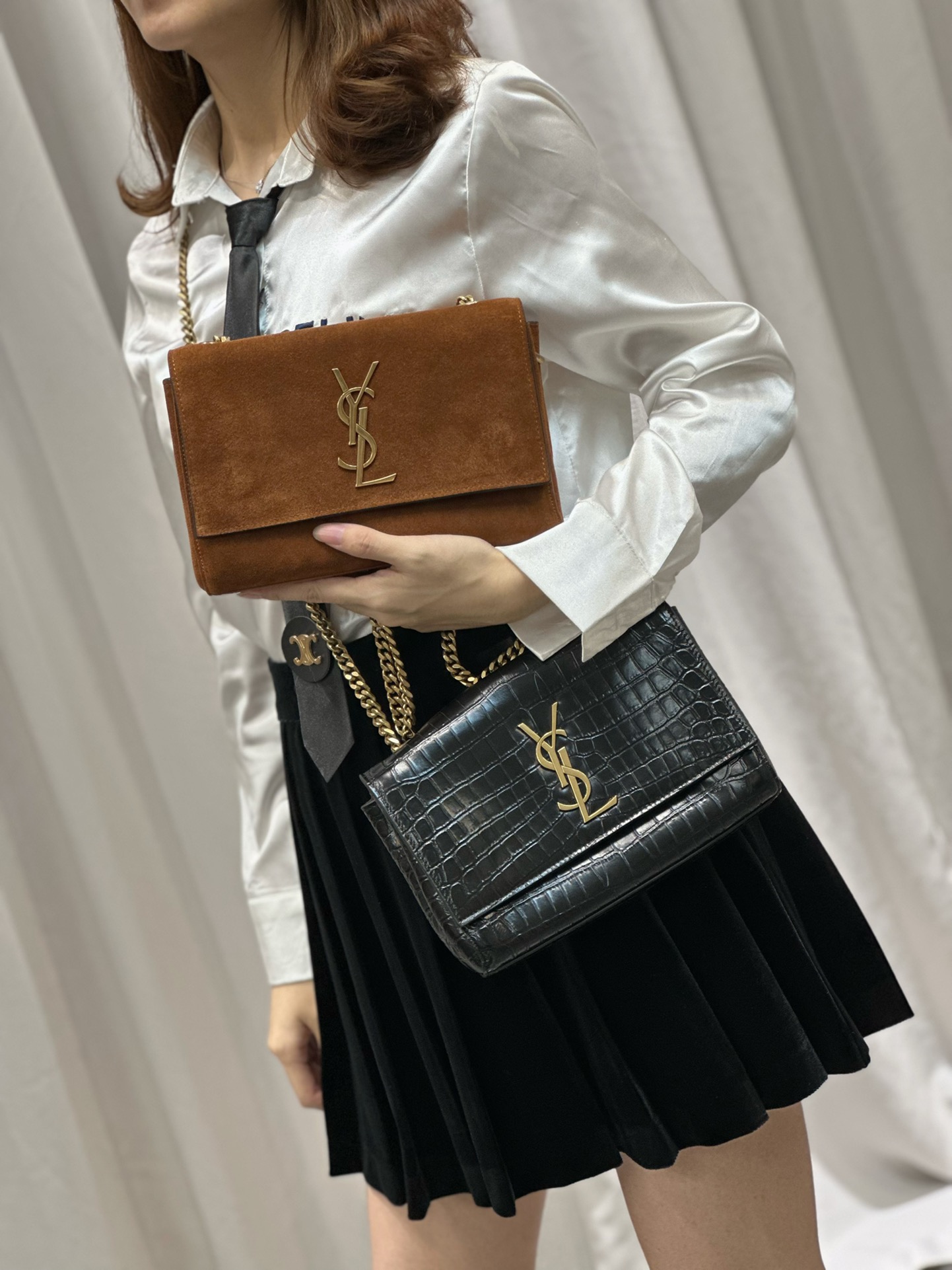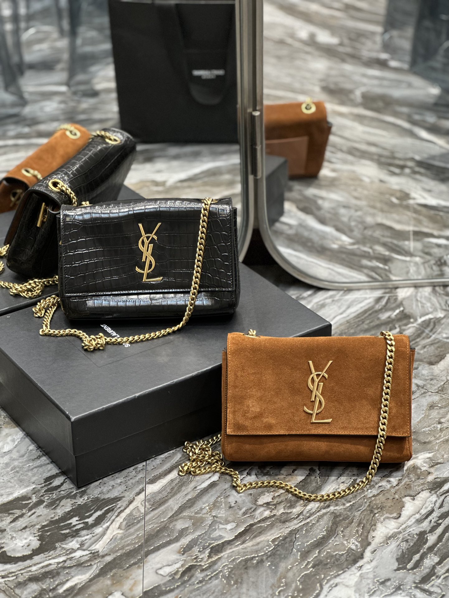 Black crocodile pattern/Earth yellow suede