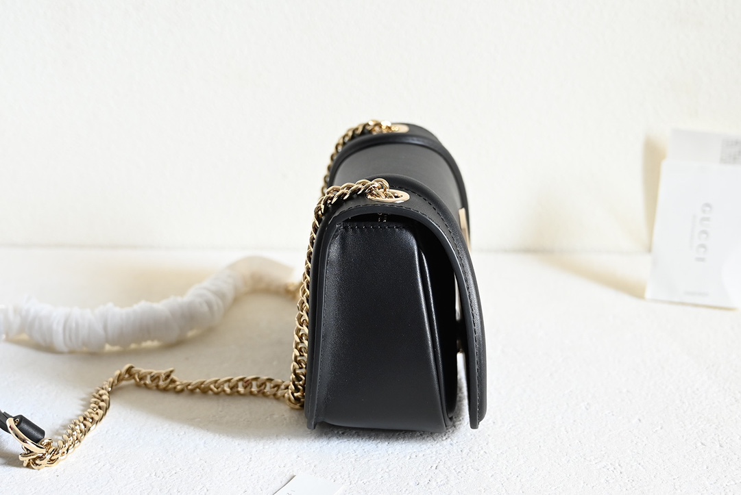 The new Gucci Blondie bag features the classic emblem that first debuted in the early 1970s, skillfully blending heritage charm with contemporary style, and brilliantly interpreting the brand's classic design and modern essence. This small shoulder bag is crafted from Gucci Ancora red leather, paired with an enameled circular brand emblem, and comes with a gold-toned chain shoulder strap.