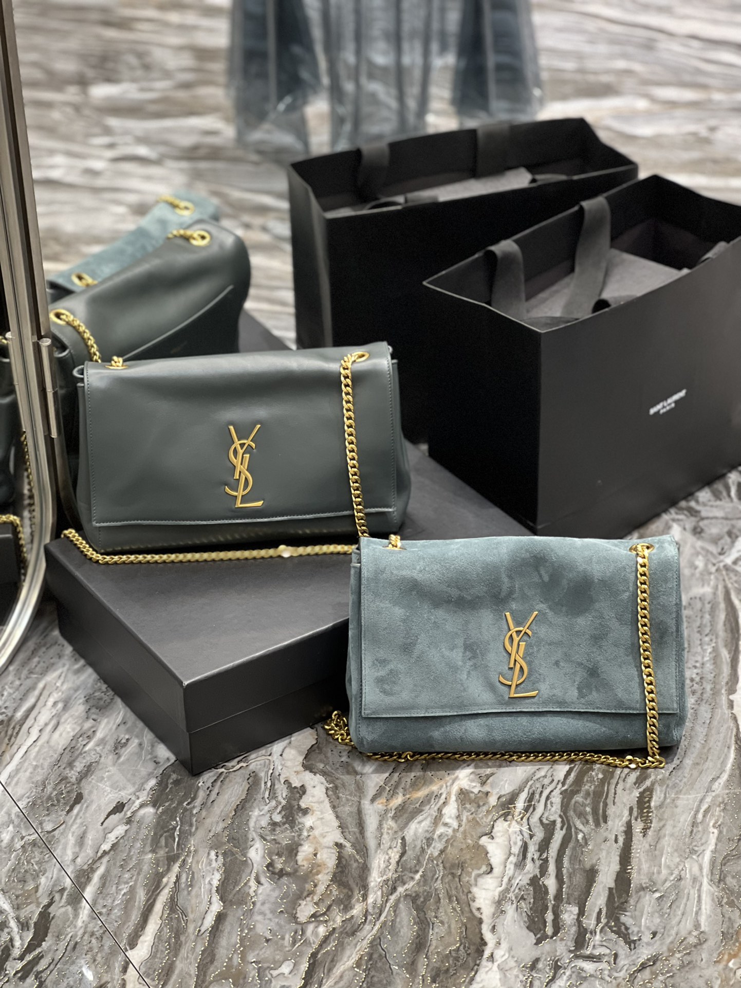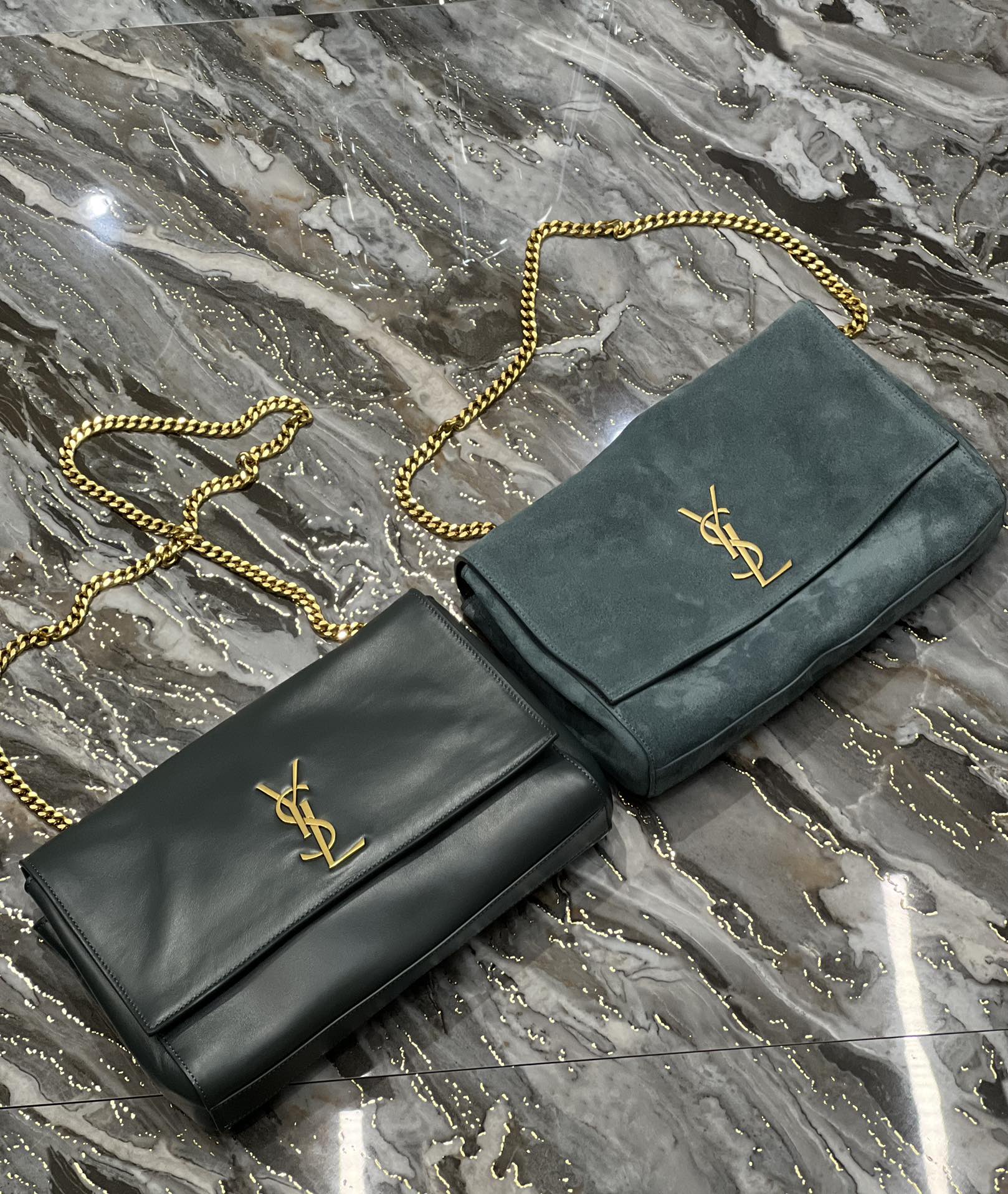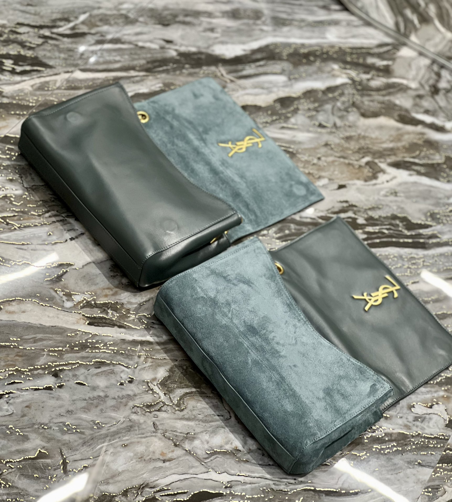 Kate_Double-sided style Green plain leather & suede
