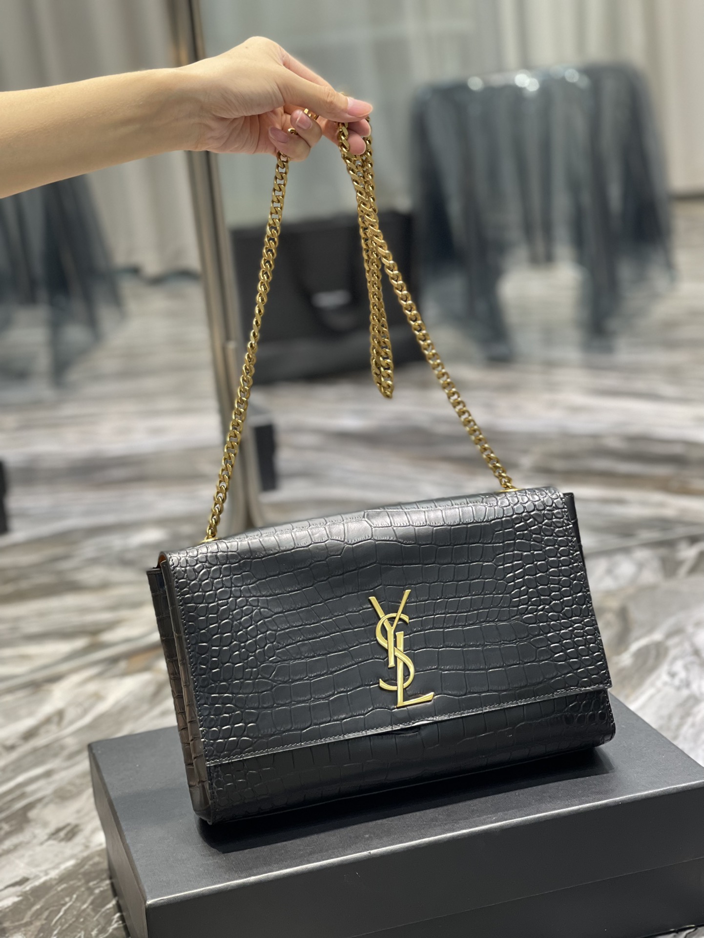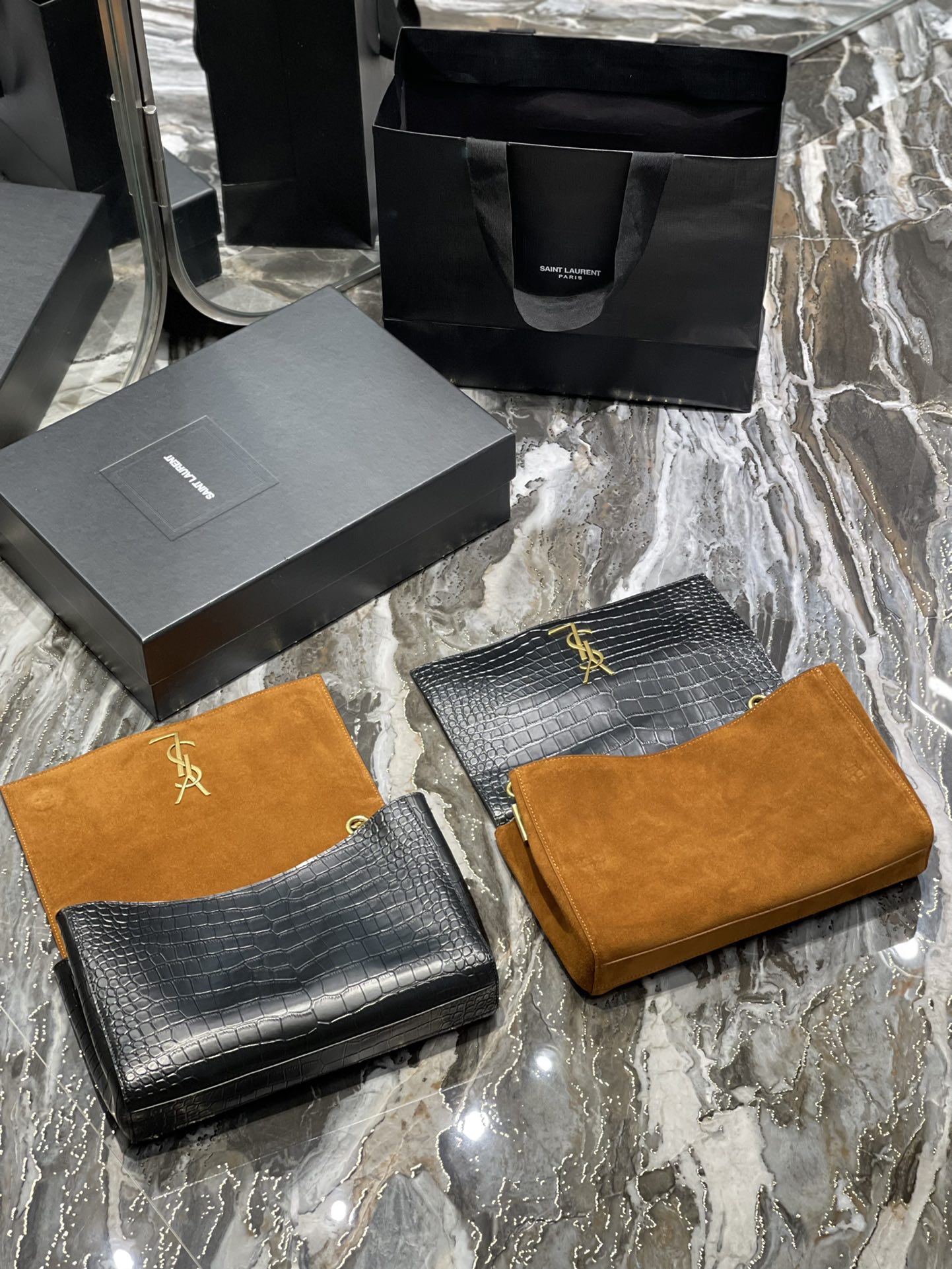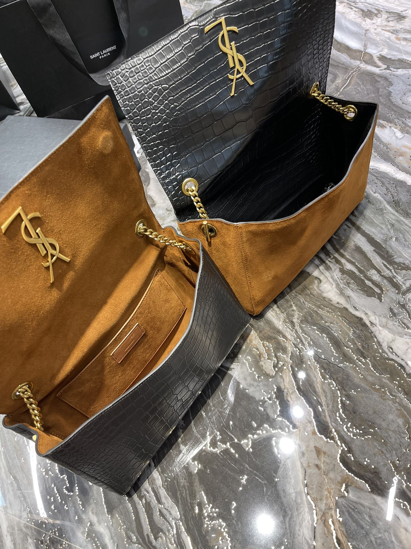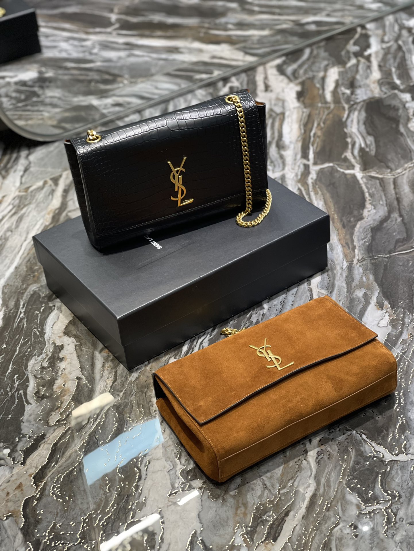 Crocodile pattern & earth yellow suede