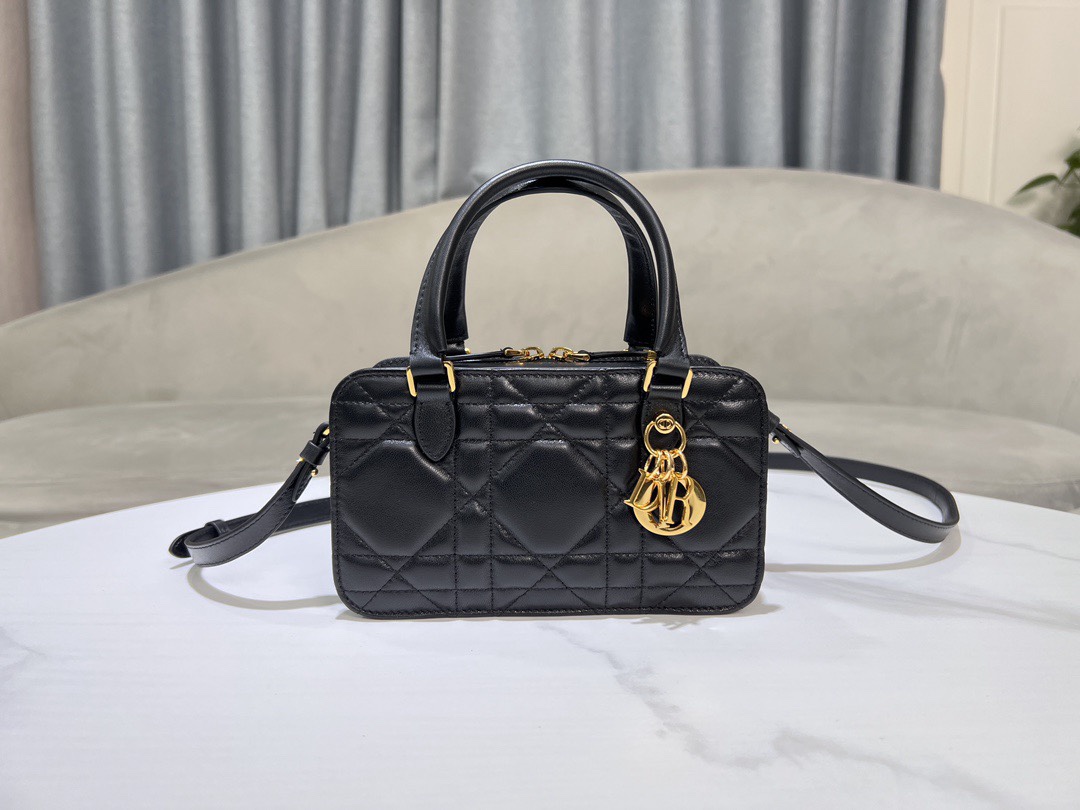 Dior 2024 winter new doctor's bag. This niche bag is unexpectedly beautiful! The Dior doctor's bag is said to be a newly released style, square and retro. The bag feels particularly nice to the touch and comes with a detachable mirror engraved with the logo. It features a top handle and an adjustable leather strap, allowing it to be carried by hand or over the shoulder.