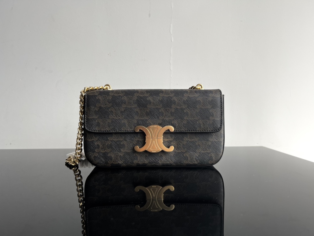 𝐂𝐄𝐋𝐈𝐍𝐄 TRIOMPHE Triumph Arch Chain Underarm Bag, Dimensions: 20.5 X 10.5 X 4cm, Exterior monogram material, Original factory lambskin lining, Single shoulder carry, ZP molded full hardware, Chain shoulder strap