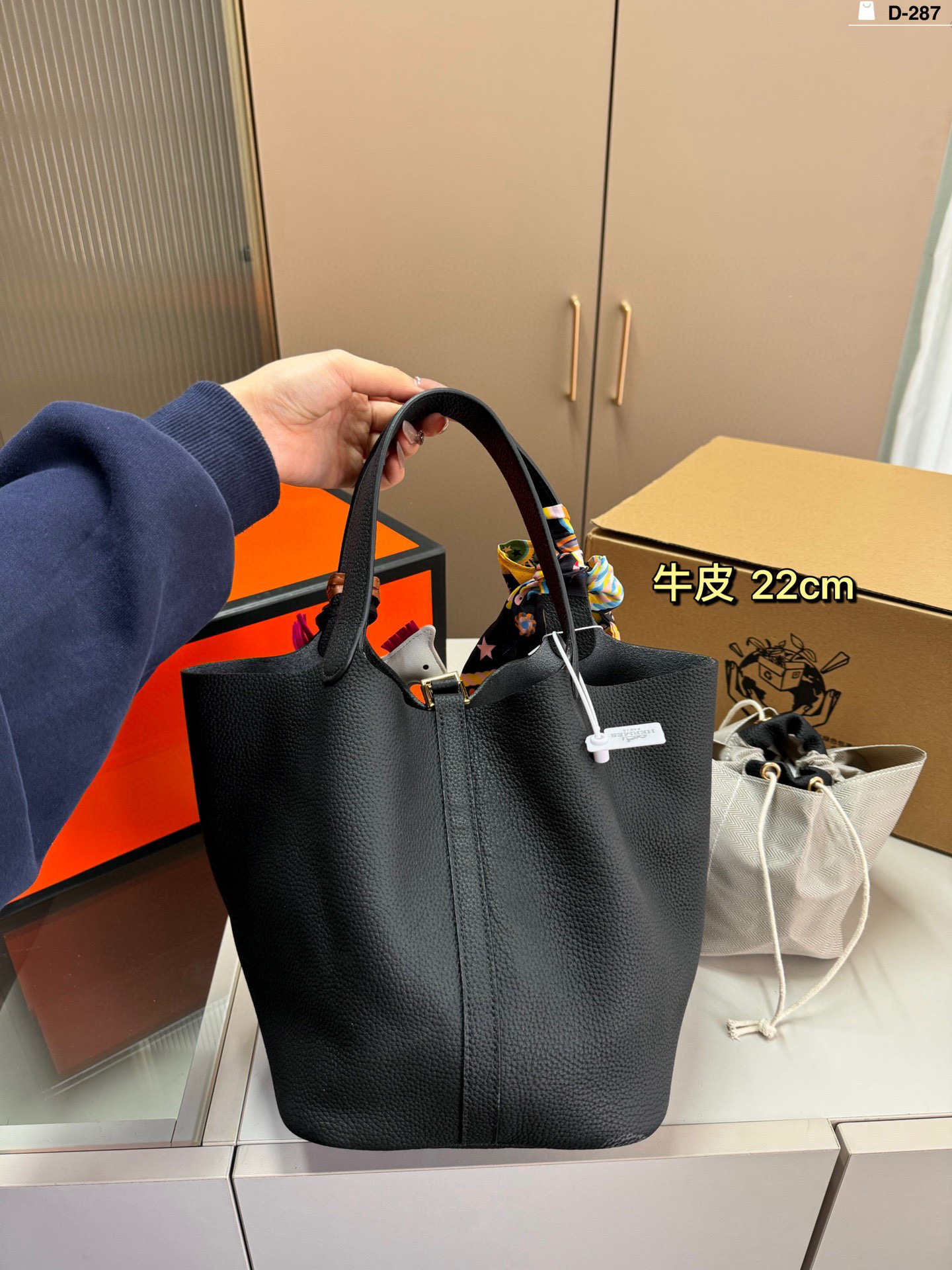 D-287 Dimensions 22×25, folding box, airplane box, scarf.