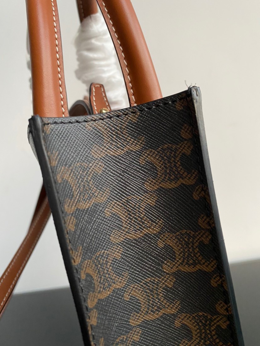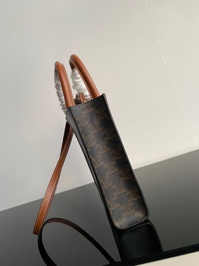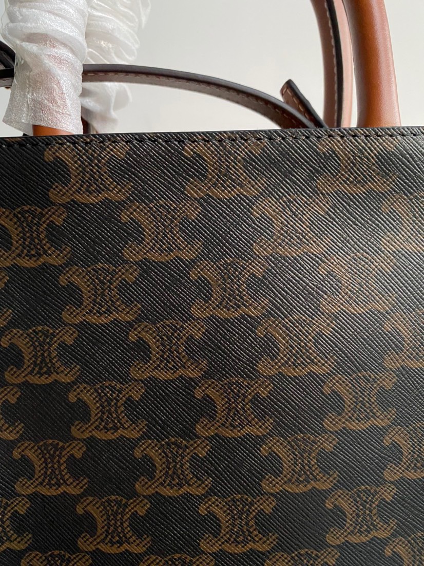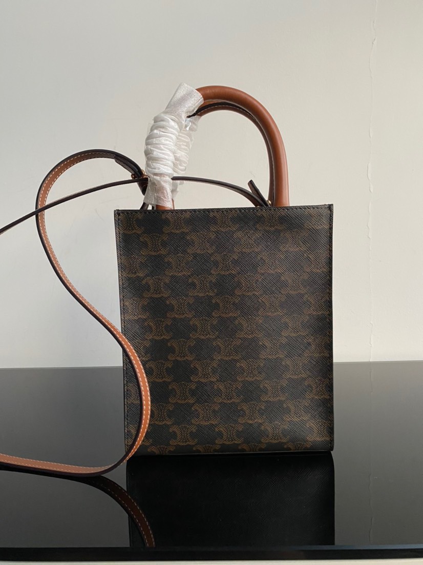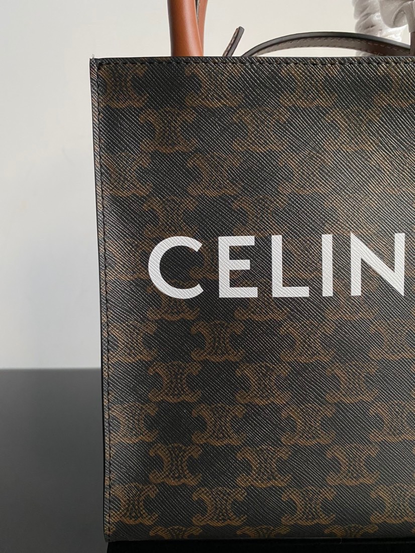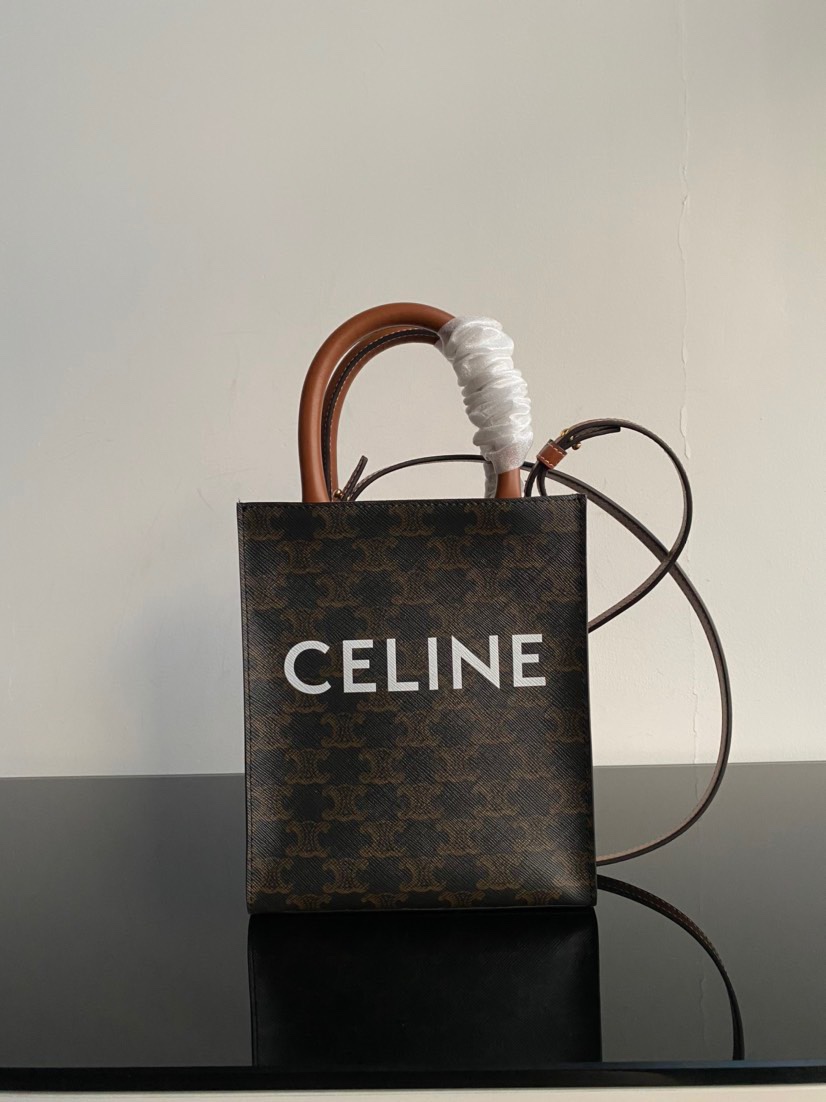 CELINE original genuine leather series - Small size CELINE tote bag, triome printed fabric, mini vertical handbag, inner pocket, adjustable and detachable leather strap, length 50 cm, dimensions 17 x 21 x 4 cm. Celine printed tote shopping bag.