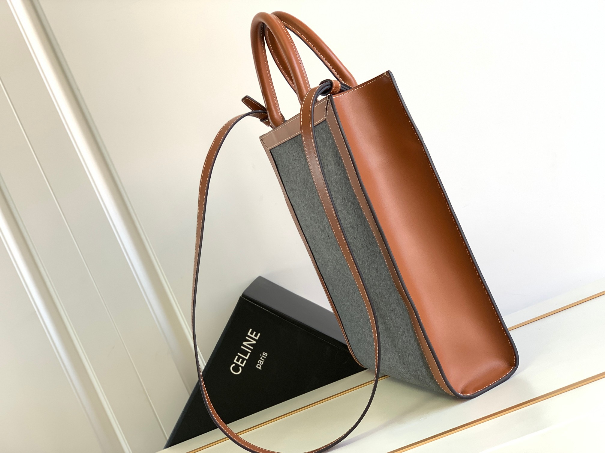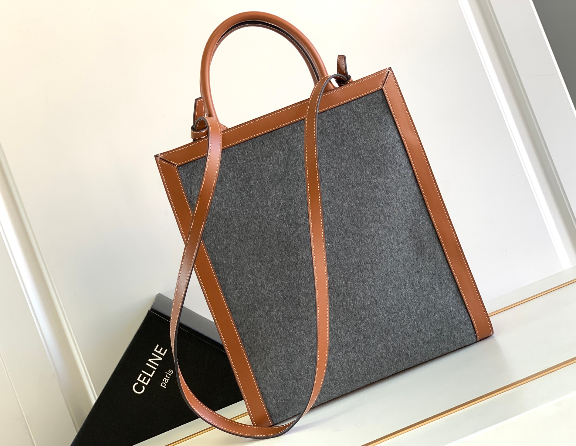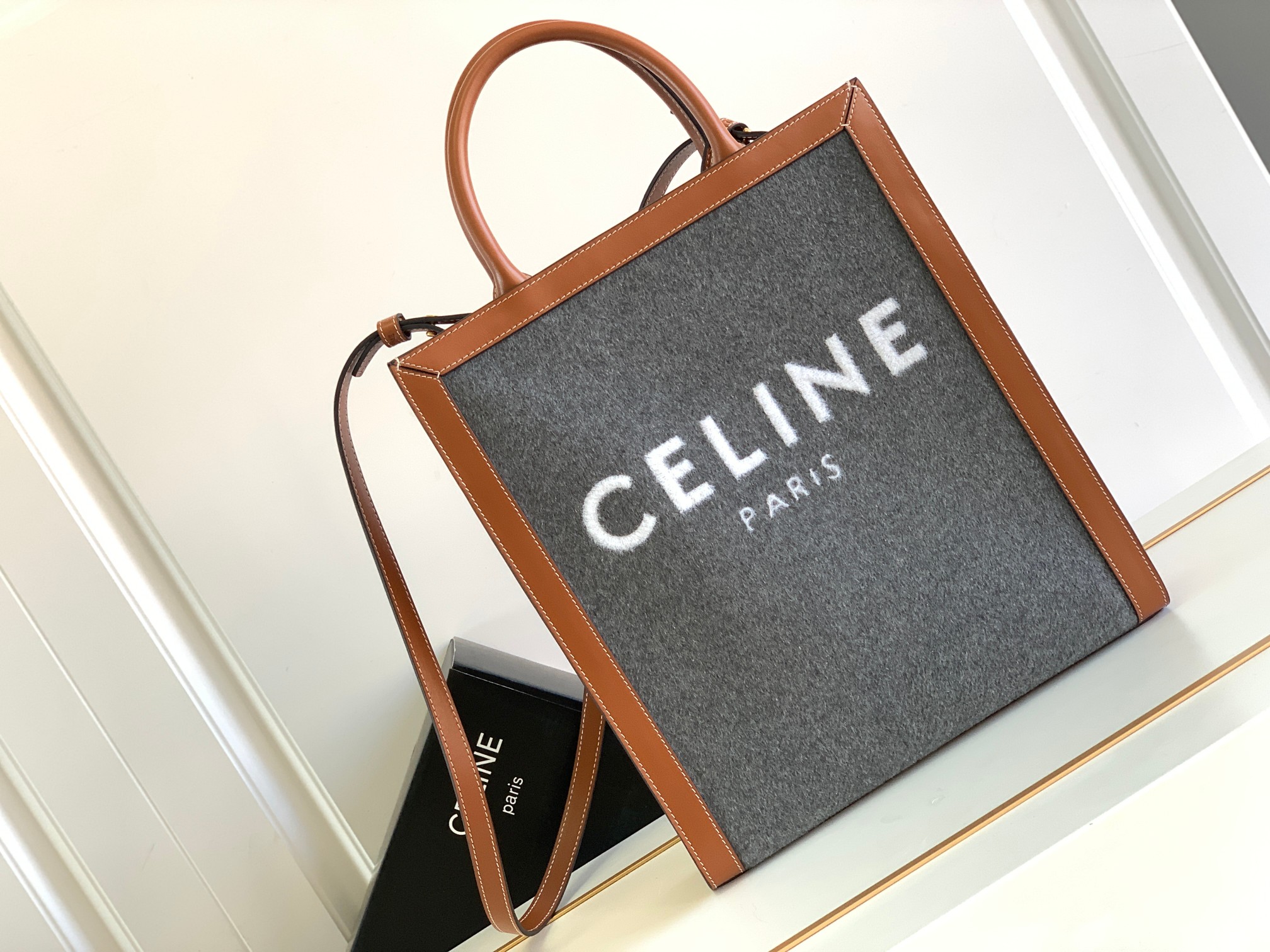 CELIN* | 23 New CELINE Felt Embroidered Fabric/Calf Leather CABAS Small Shopping Bag