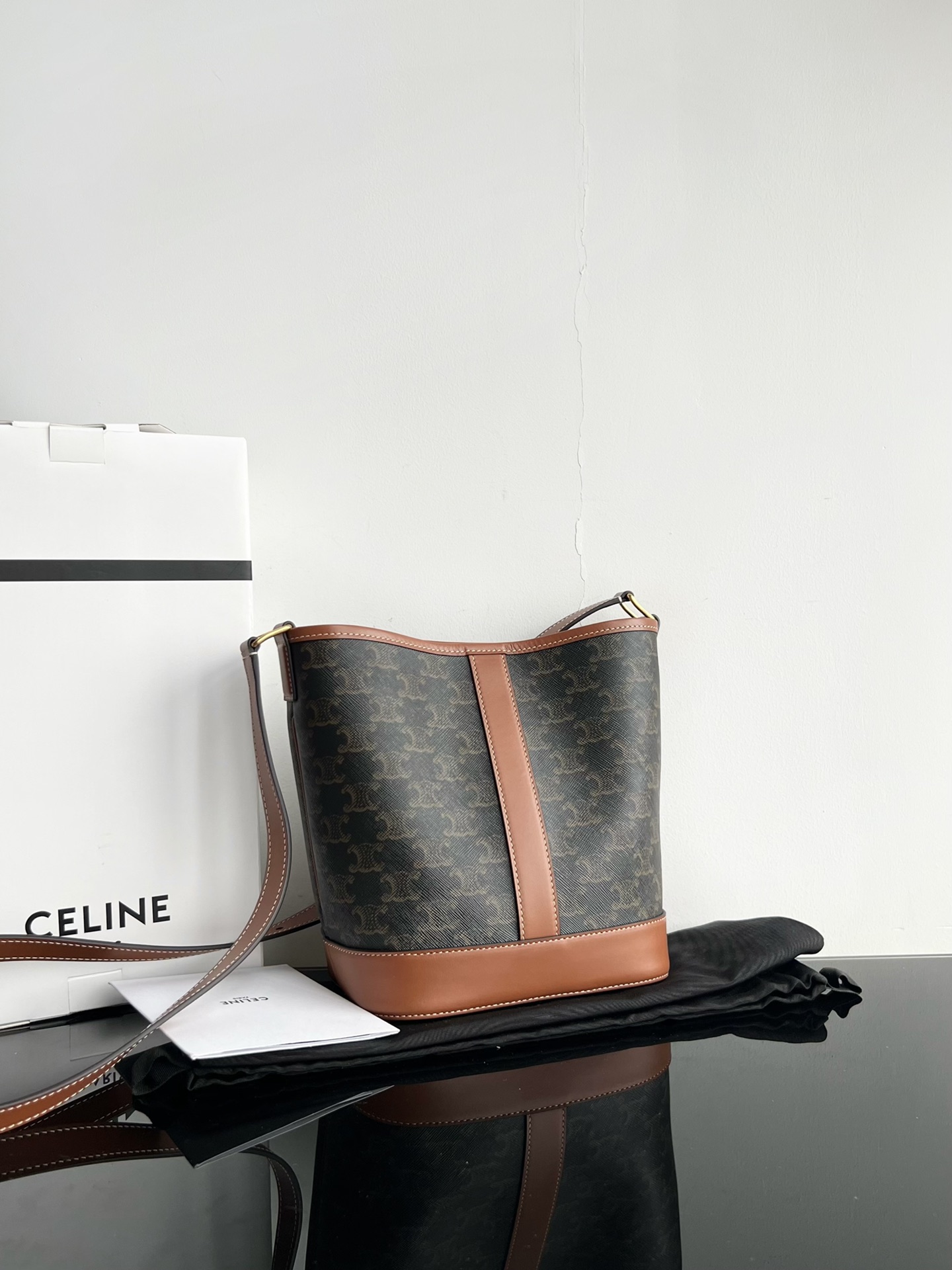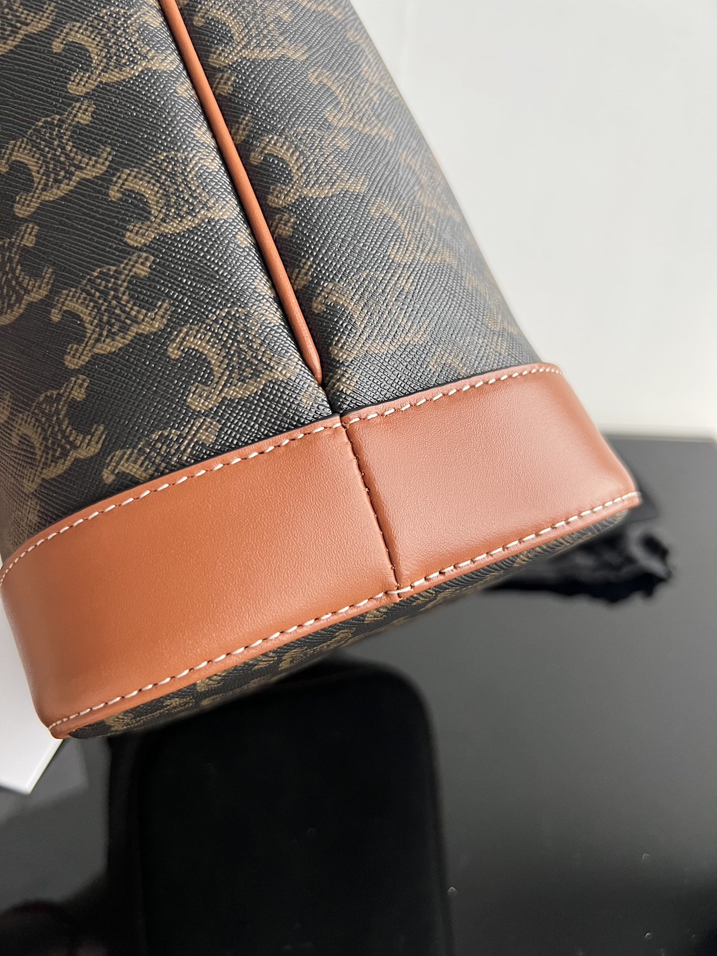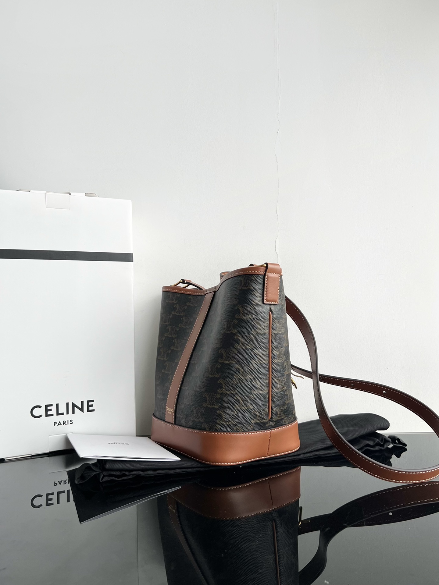 CELINE Small Logo Print Bucket Bag, Monogram Small Bucket Dimensions: 22 X 18 X 13cm, Fabric Lining, Crossbody and Shoulder Carry, Snap Closure, Adjustable Leather Strap