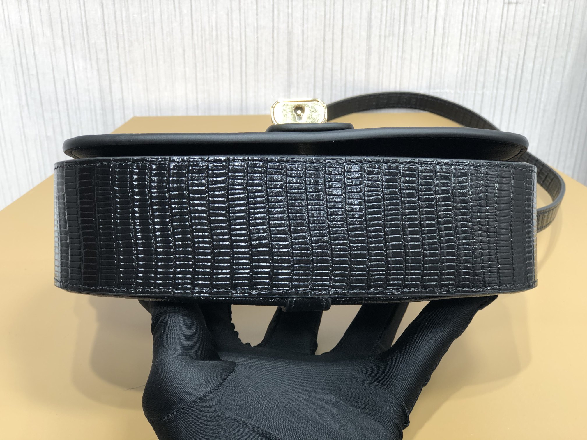 Lizard pattern cowhide embossing.