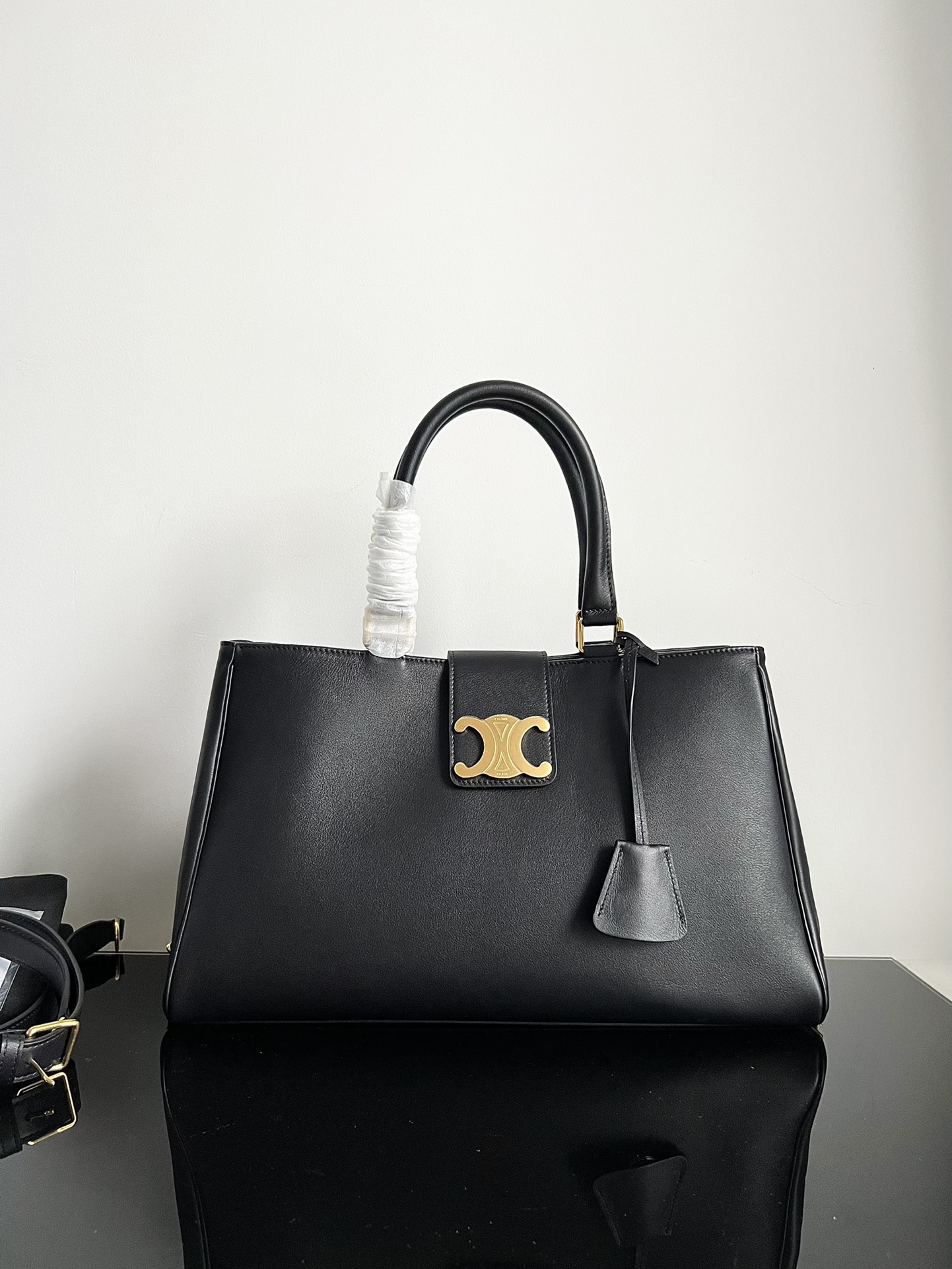 CELINE APPOLINE Arch of Triumph Soft Calfskin Leather Handbag, Briefcase Laptop Bag, All-Leather Handheld Shopping Bag, Original Factory Leather, Full Steel Hardware, Dimensions: 37.5 X 22 X 16cm, This model can hold tablets like IPAD, Calf suede lining, Golden finish, Can be handheld, shoulder-carried, and cross-body, Leather flap, Equipped with TRIOMPHE magnetic buckle, 1 inner zippered pocket, 1 inner flat pocket, With key ring, With detachable and adjustable shoulder strap