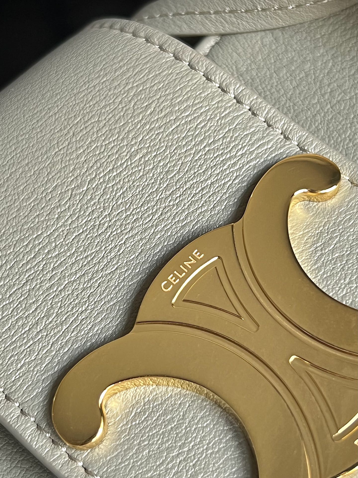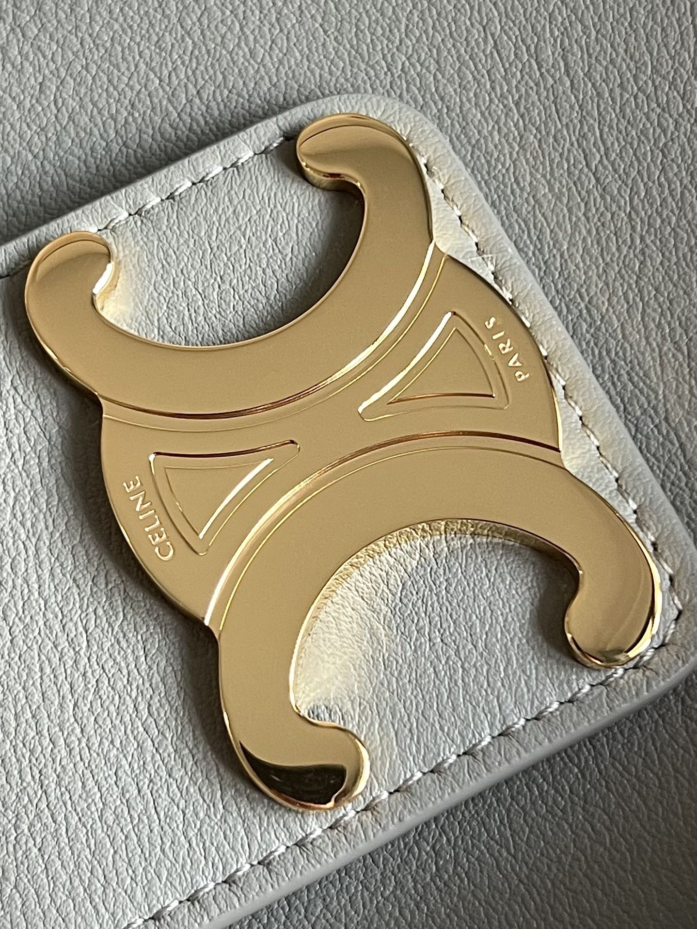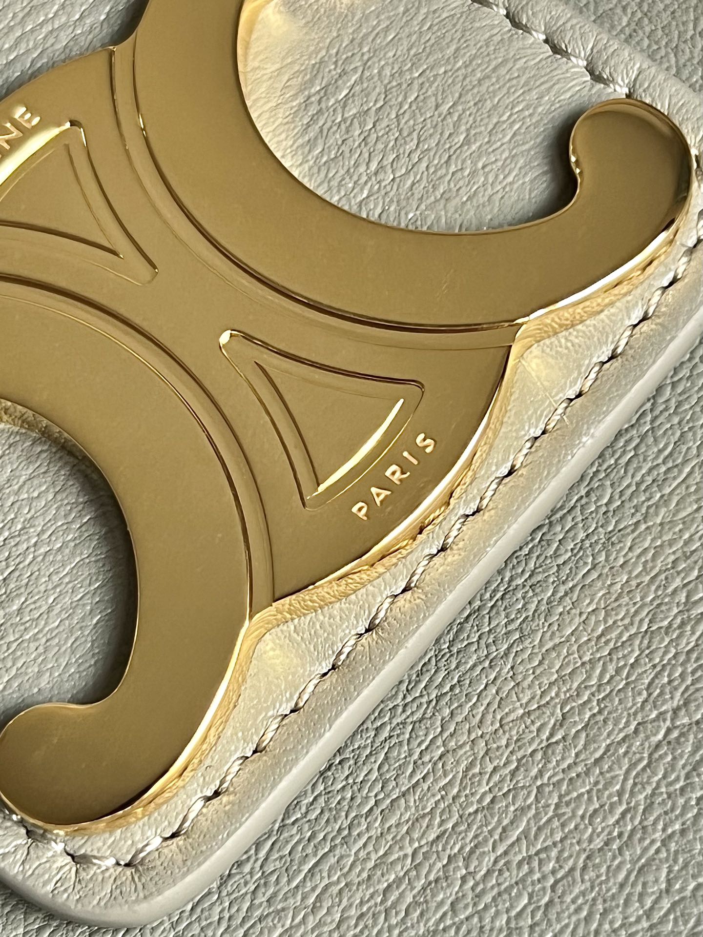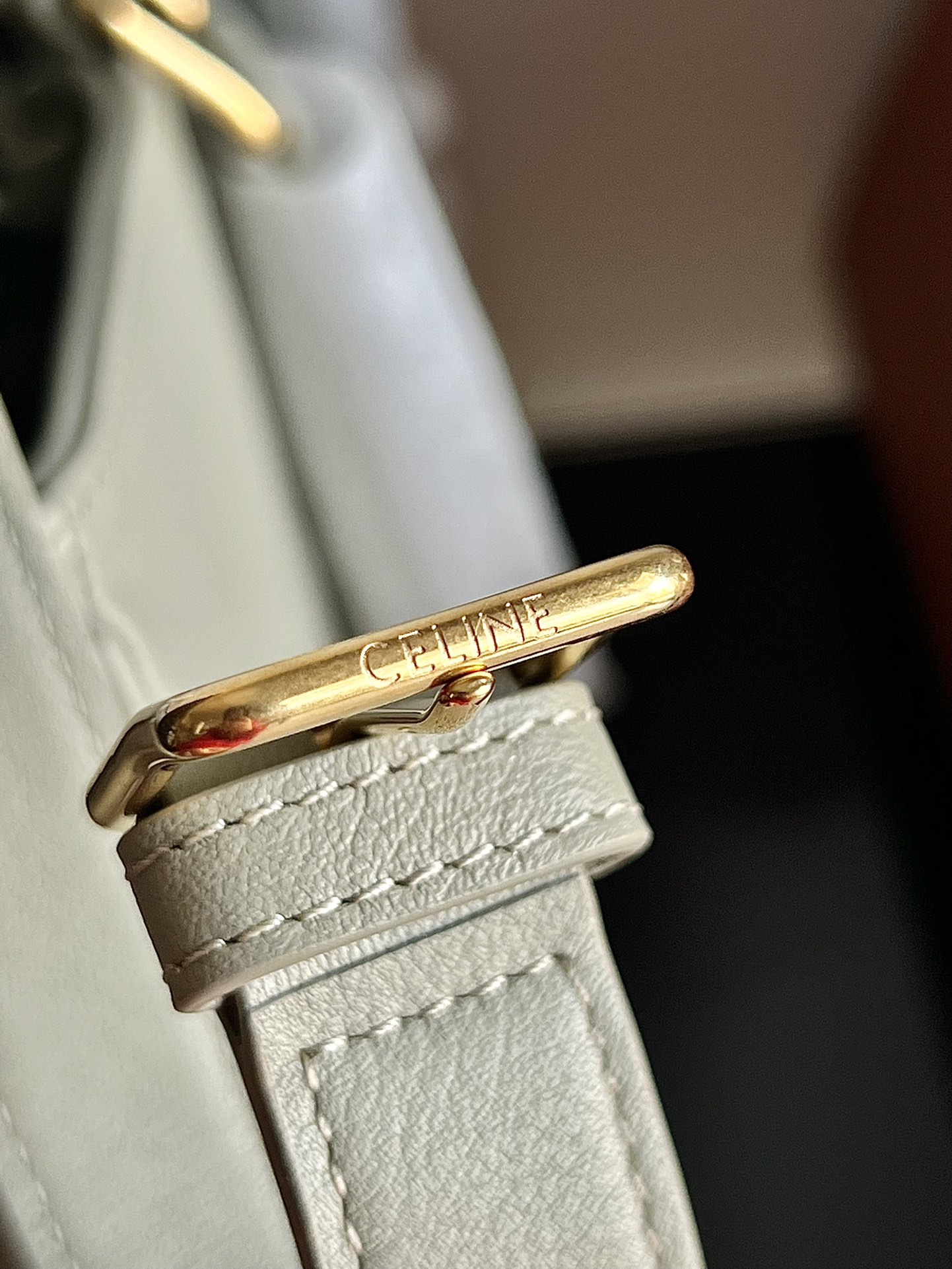 CELINE APPOLINE Triomphe Soft Calfskin Leather Handbag, Briefcase Laptop Bag, All-Leather Handheld Shopping Tote, Original Factory Leather, All-Steel Hardware. Dimensions: 37.5 X 22 X 16cm. This model can fit an iPad or other tablets. Calf suede leather lining. Gold finish. Can be carried by hand, on the shoulder, or crossbody. Leather flap with TRIOMPHE magnetic clasp. 1 interior zippered pocket. 1 interior flat pocket. Includes key ring. Includes detachable and adjustable shoulder strap.