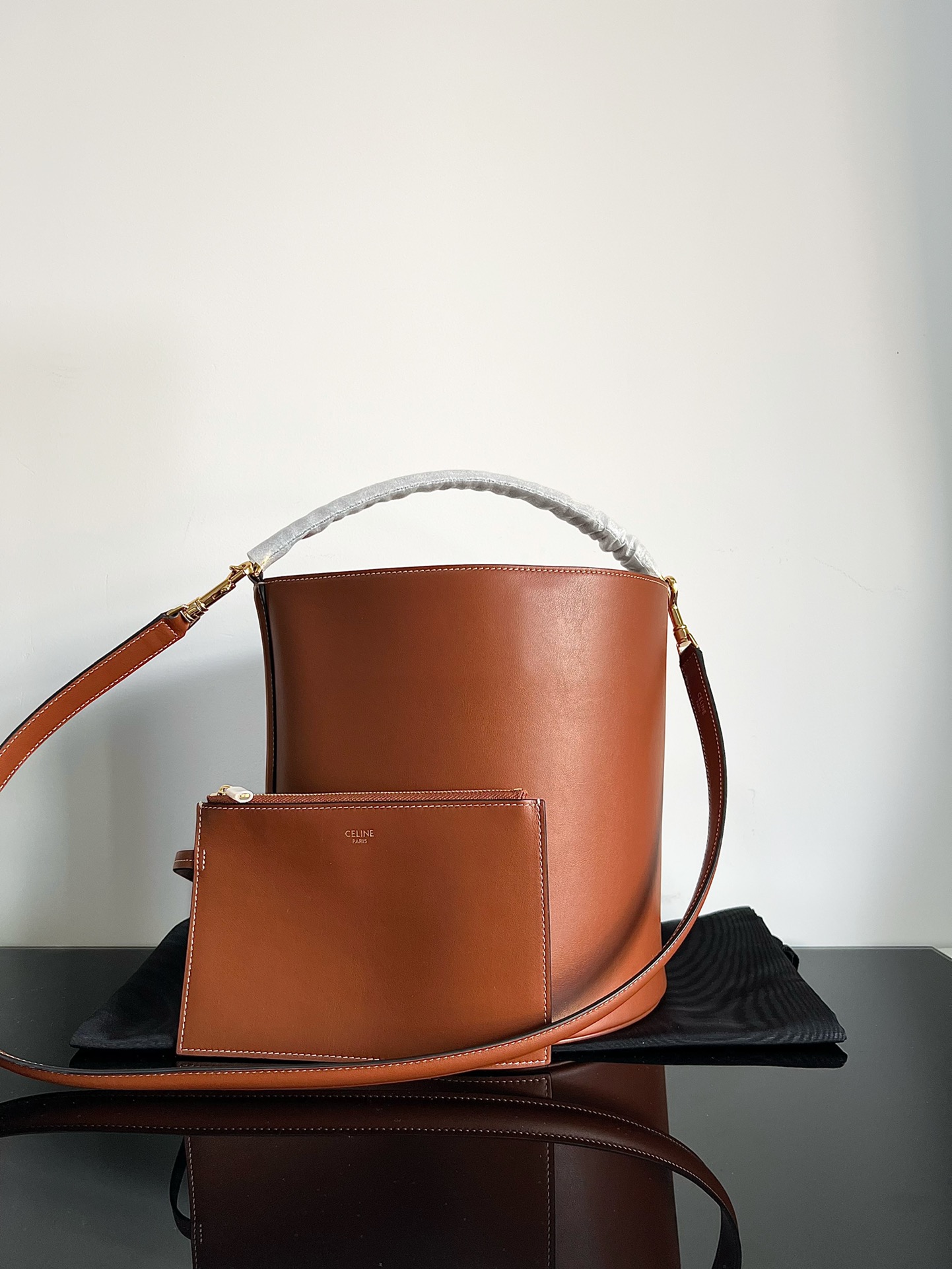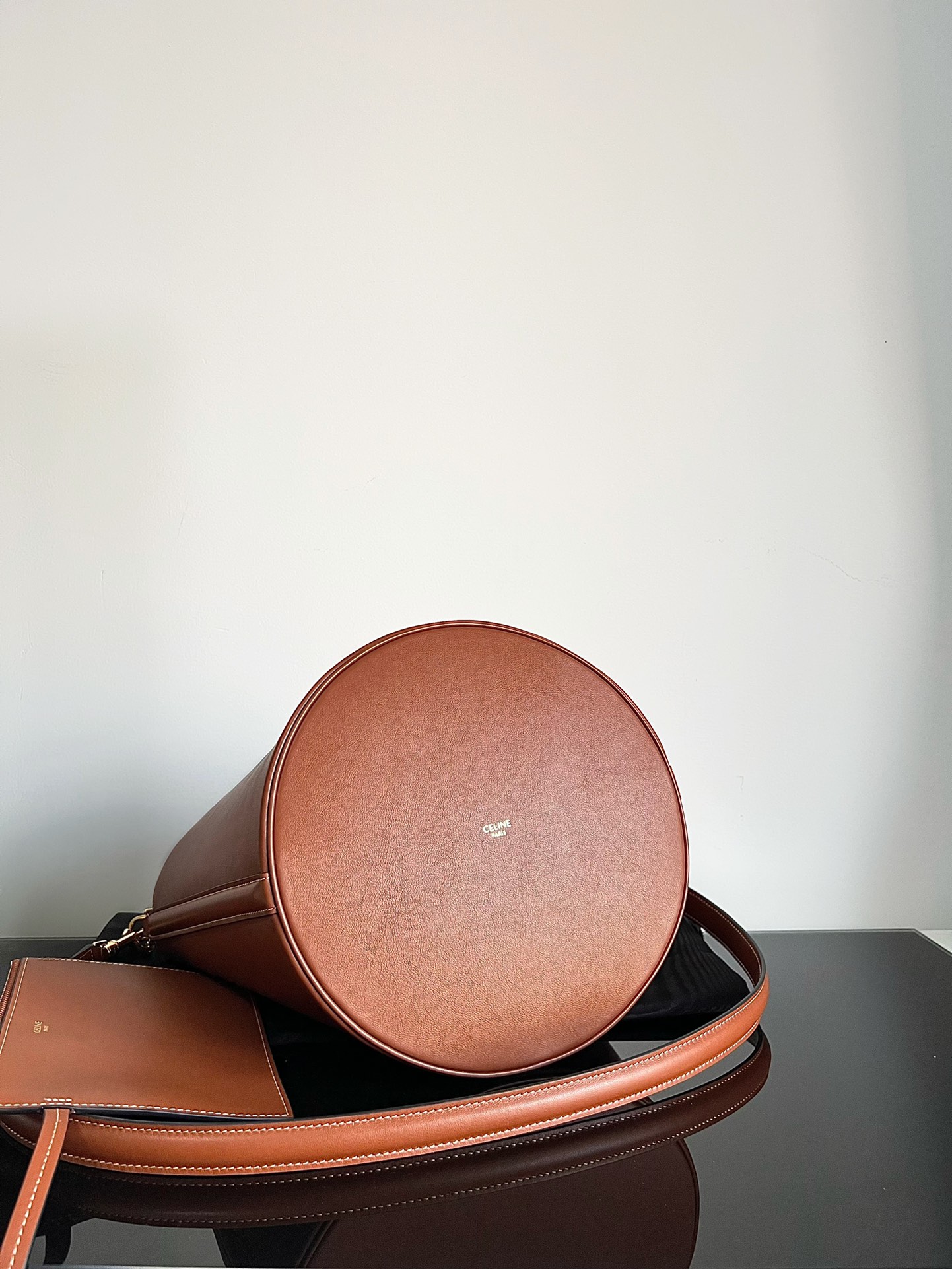 CELINE BUCKET 16 Smooth Calfskin Leather Bucket Bag Tawny
