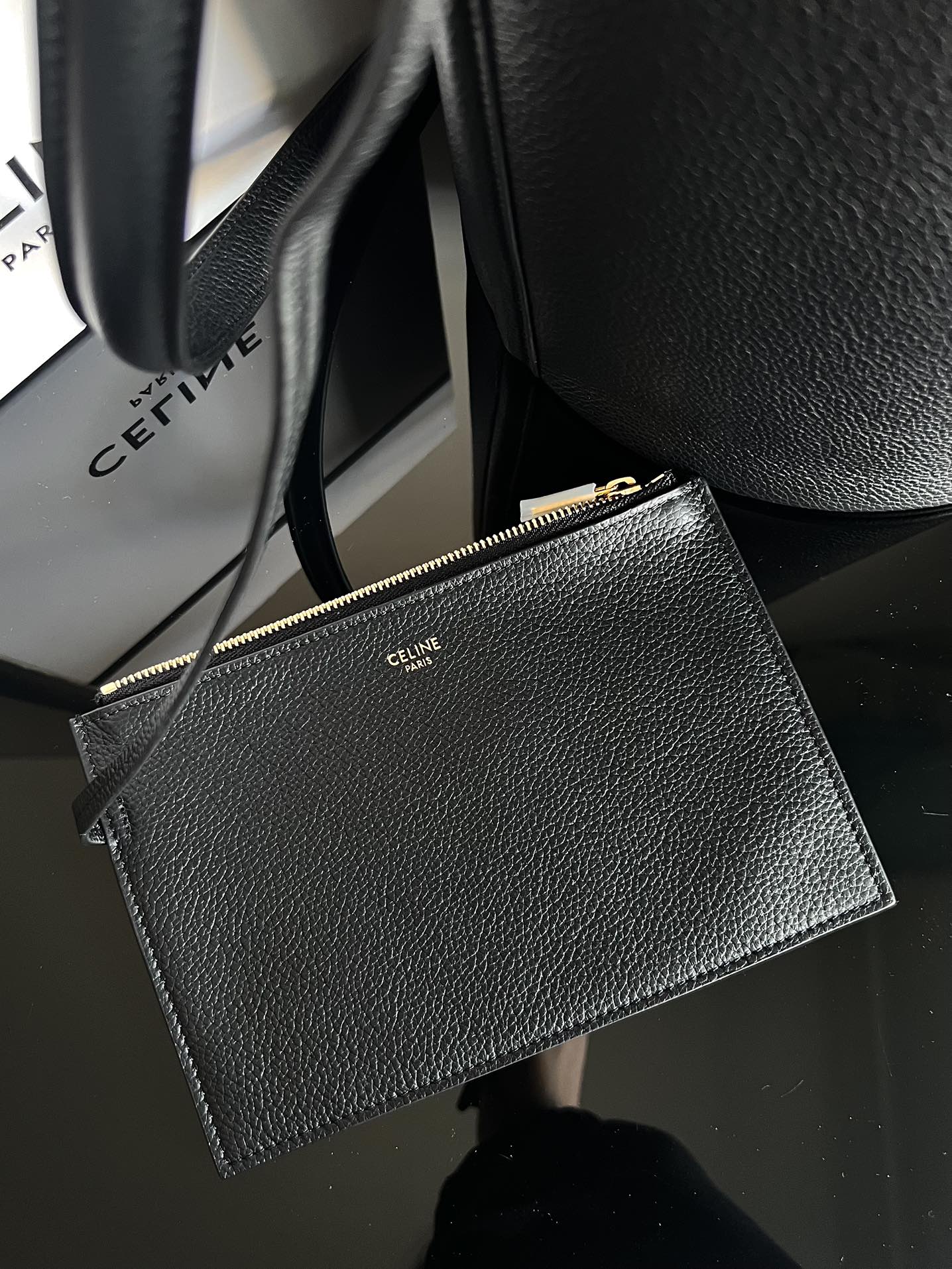 CELINE BUCKET 16 Soft Grain Calfskin Bucket Bag Black