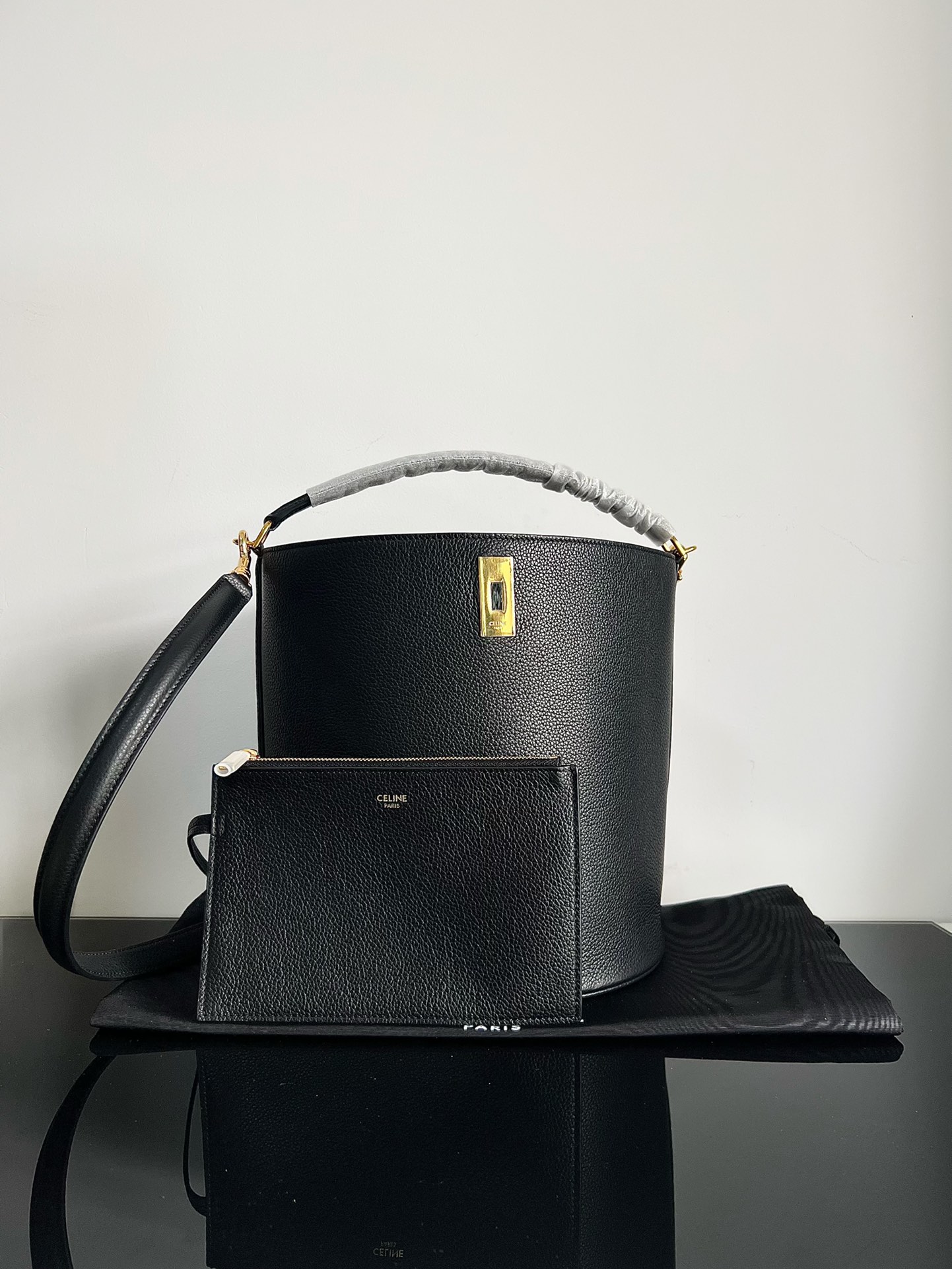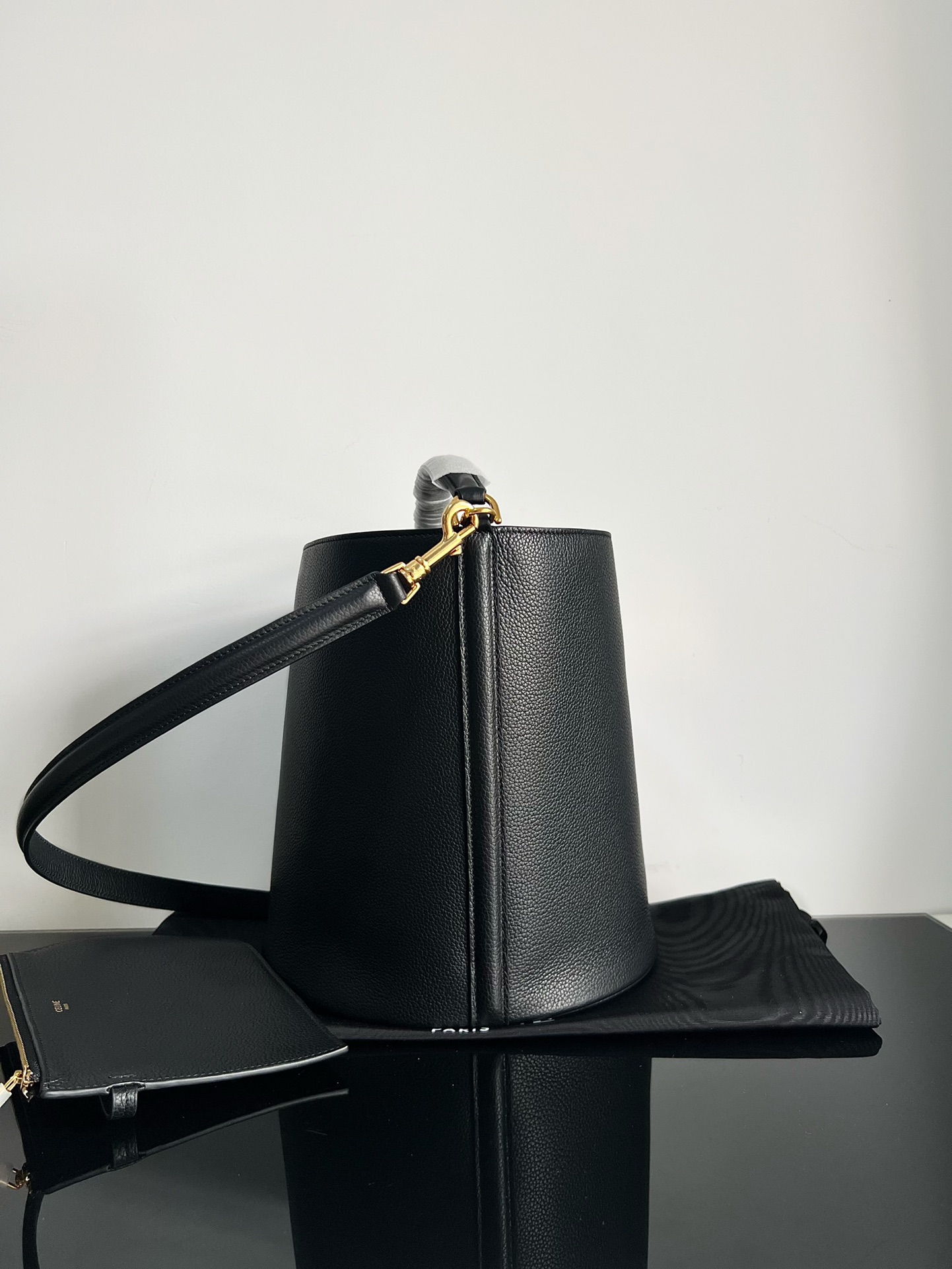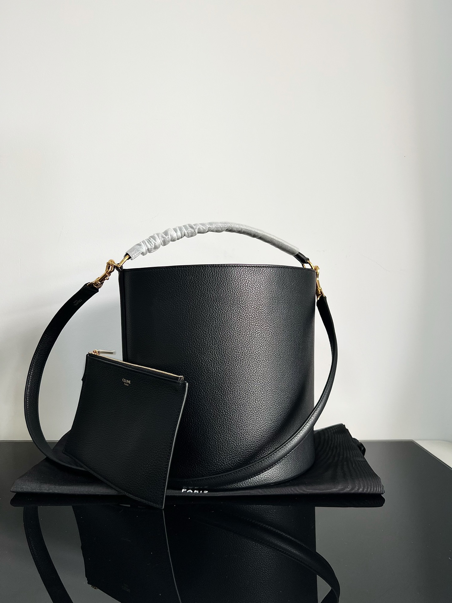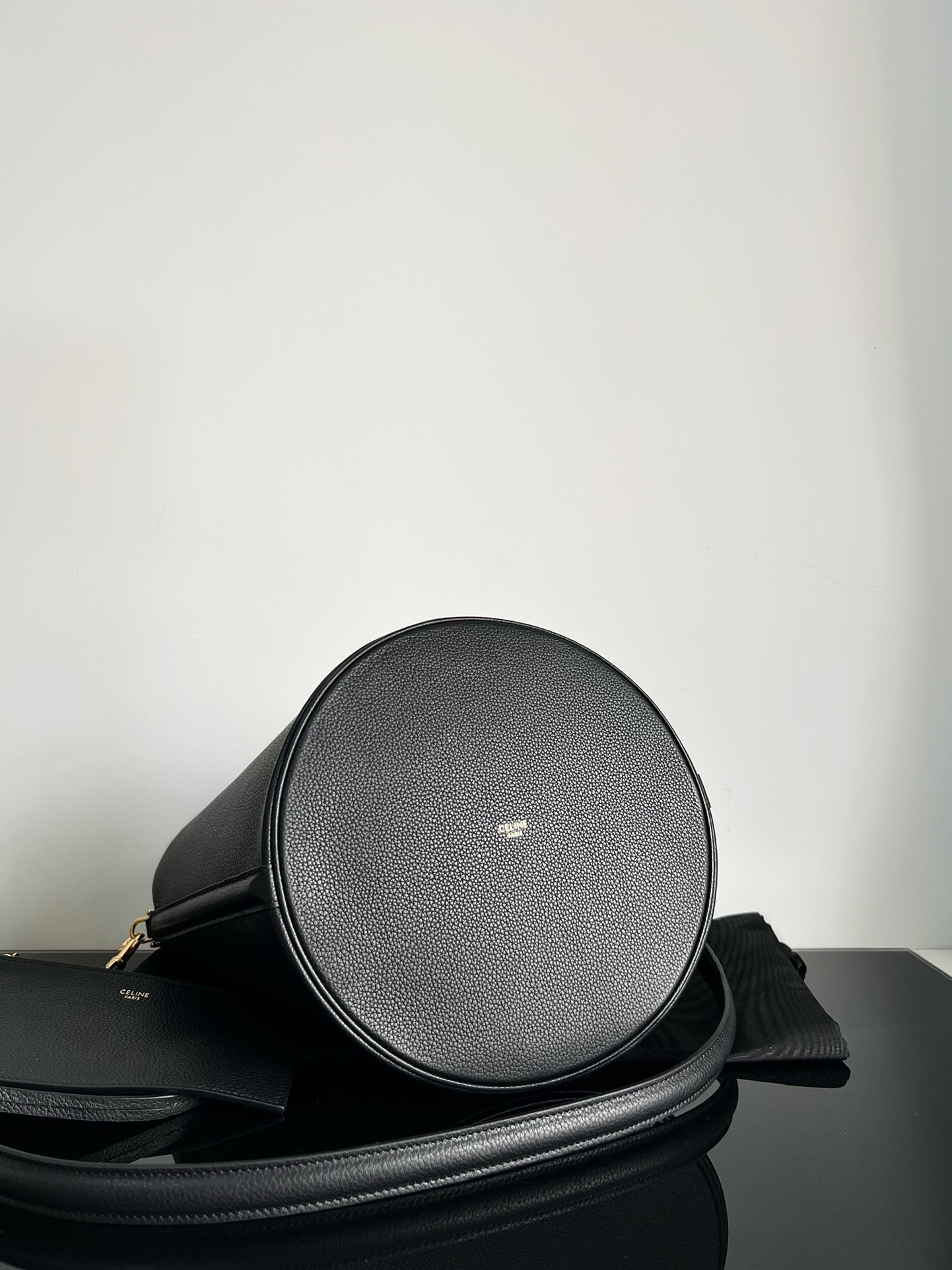 CELINE BUCKET 16 Soft Grain Leather Bucket Bag Black