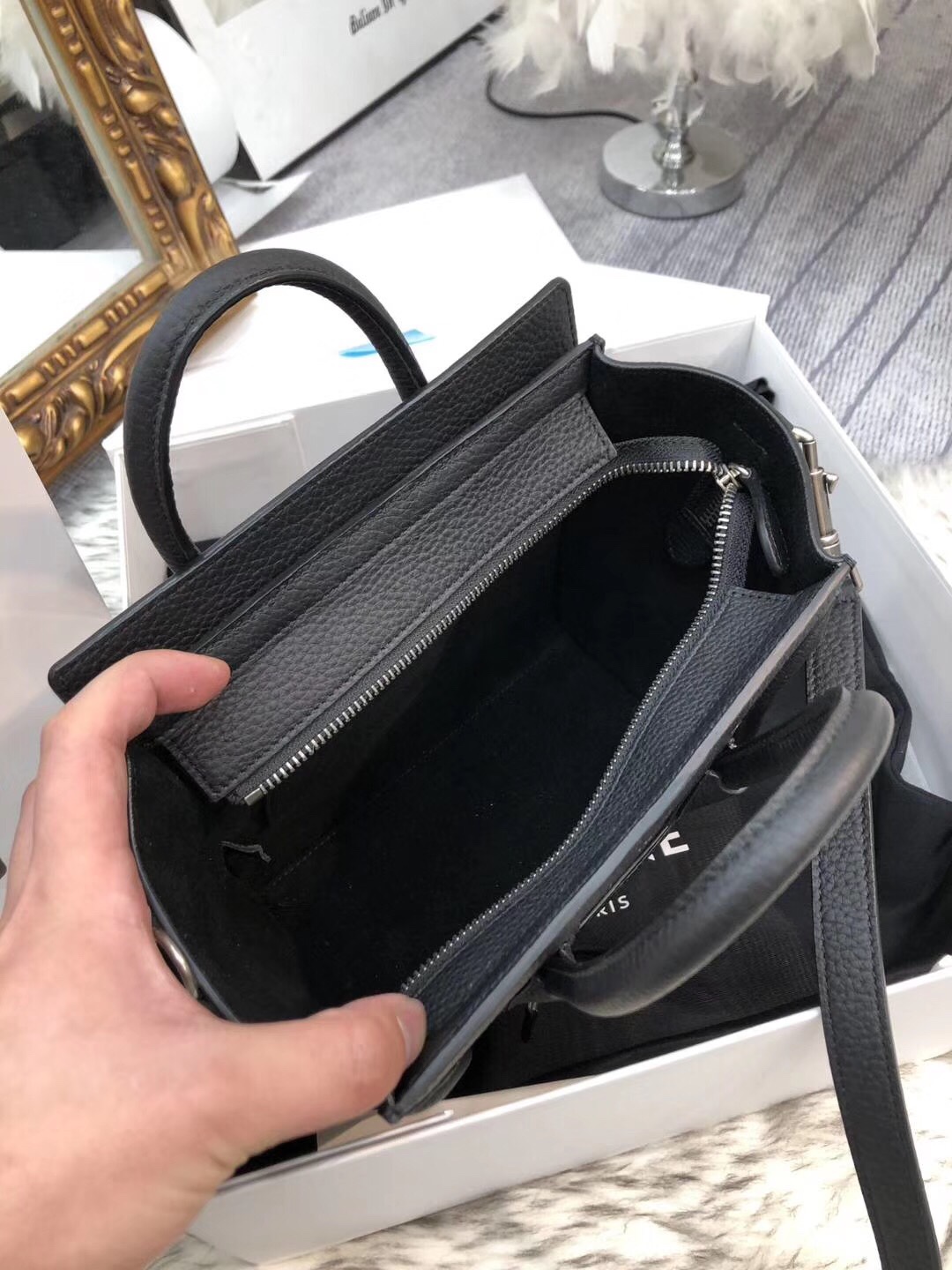 Private goods~ Celine nano Luggage smiling face bag. Made from Italian imported calfskin grained leather, combining simple lines and texture. Its cute and quirky style has made it highly sought after by many bloggers and celebrities. Two-tone or solid color options更能立体的展现出的囧笑感 😊 Can be carried on the shoulder or across the body. Dimensions: 20-20-10 (🔍168243)