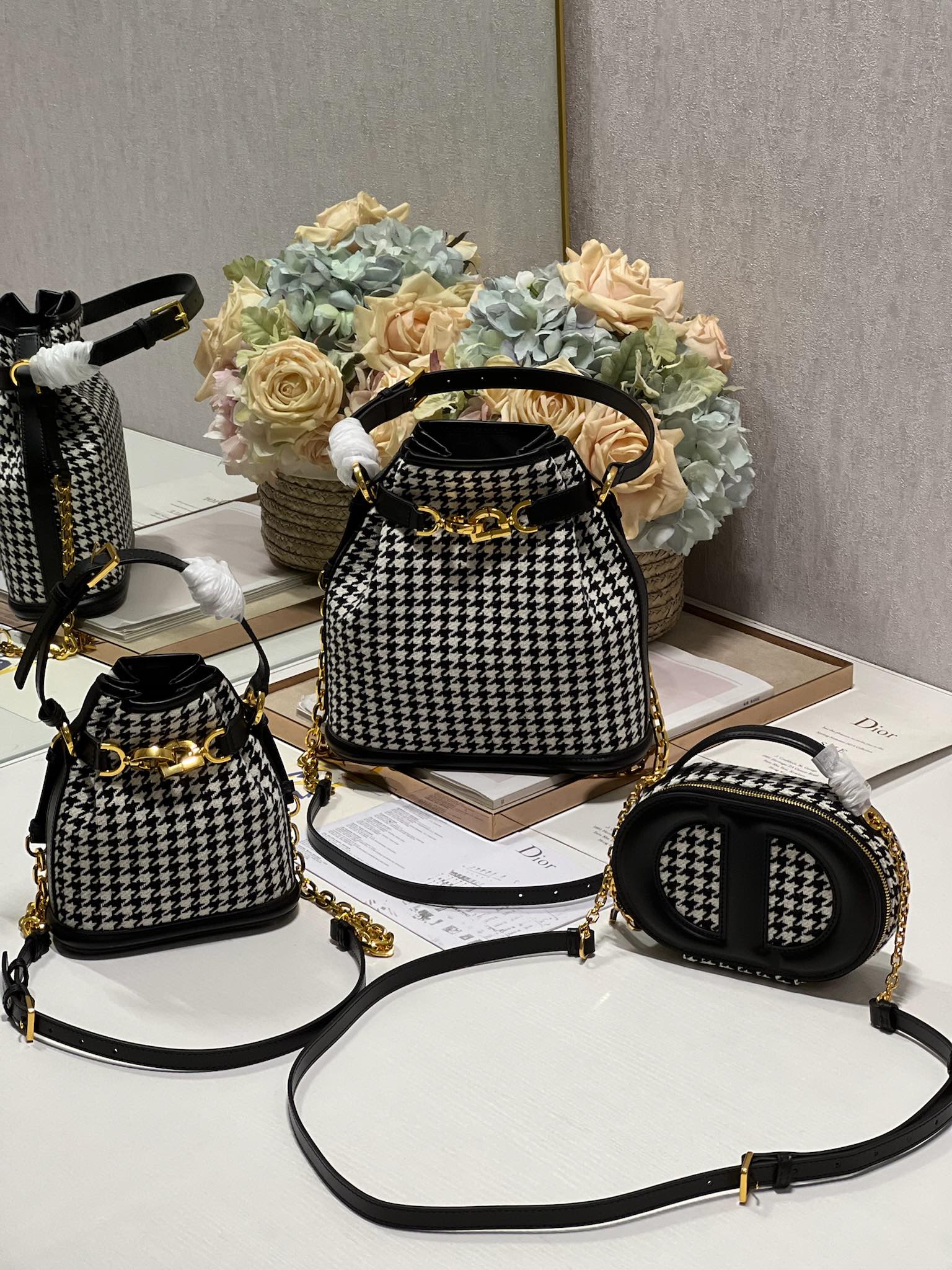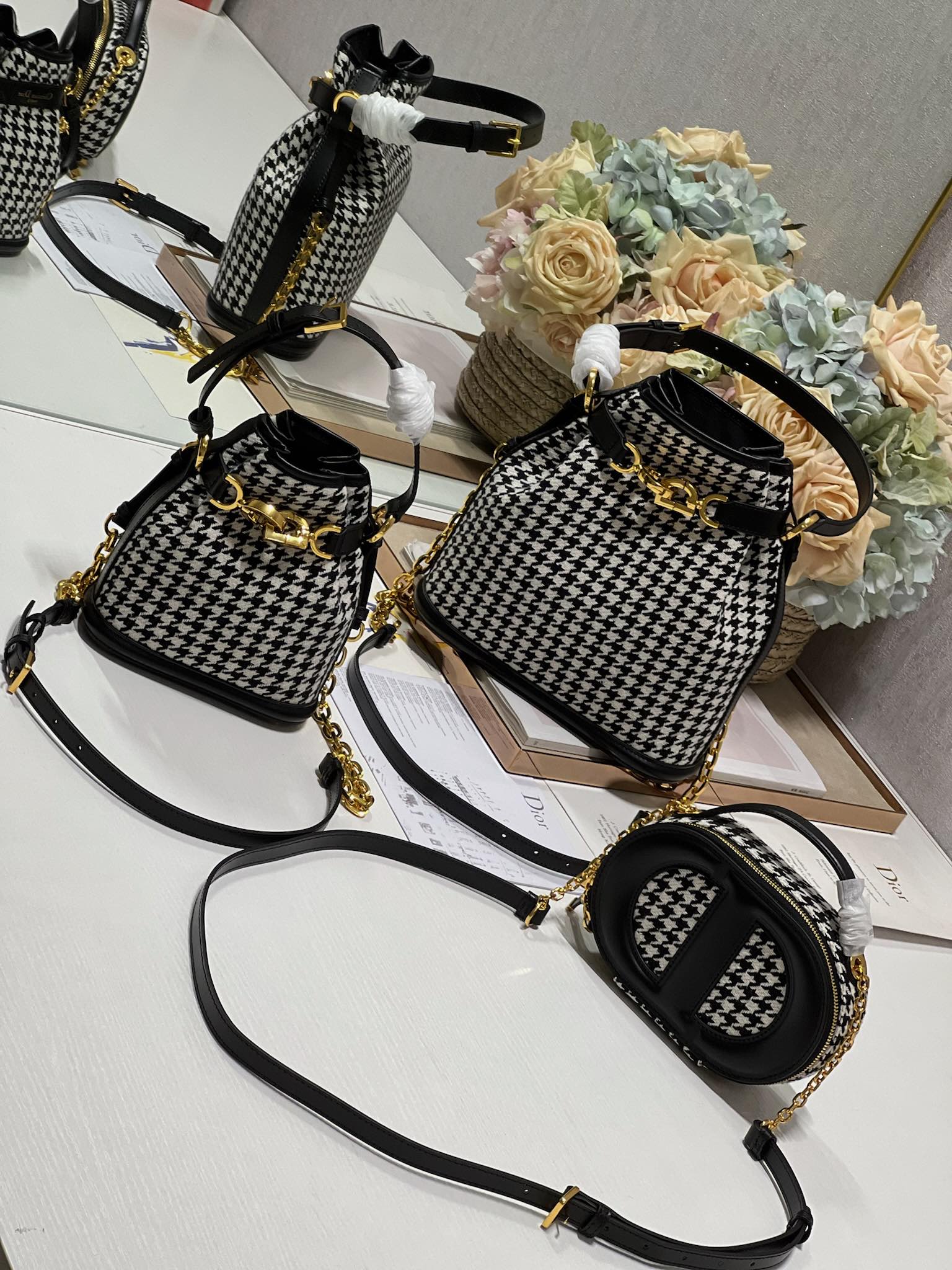Dior bucket bag, camera bag, Montaigne, new houndstooth pattern available.