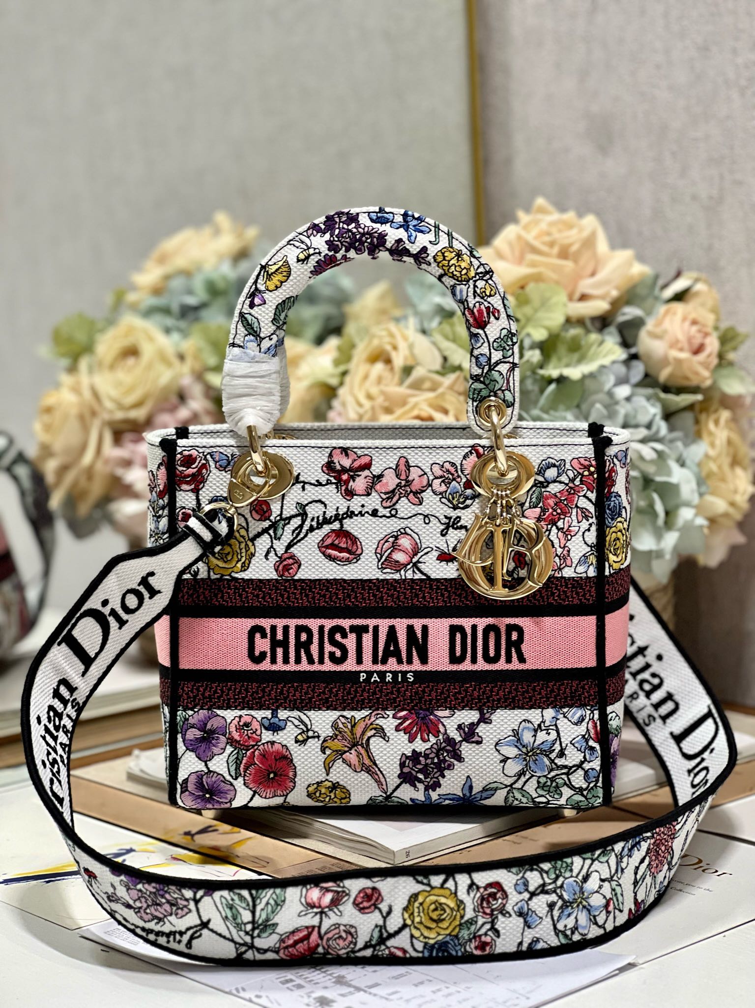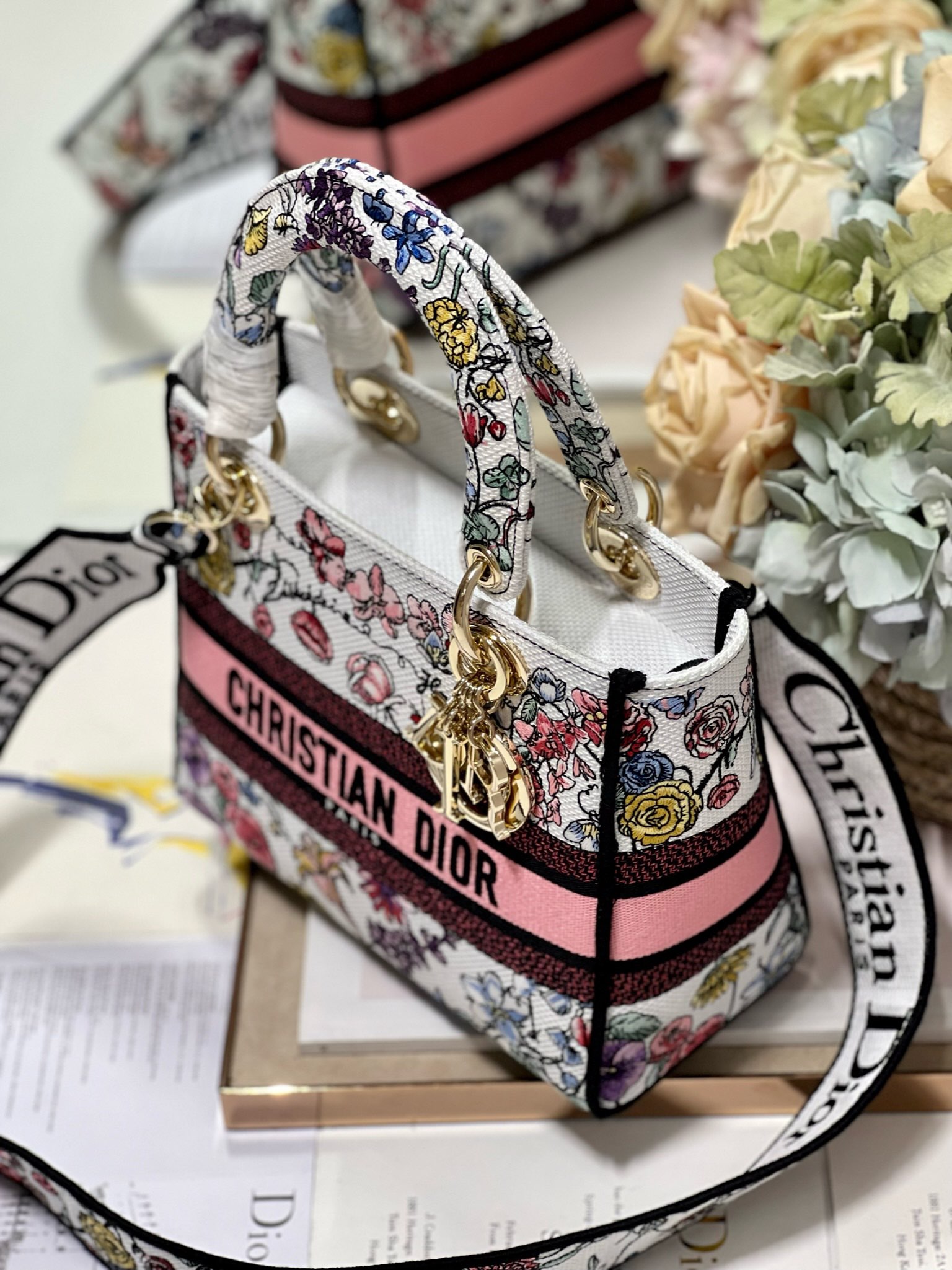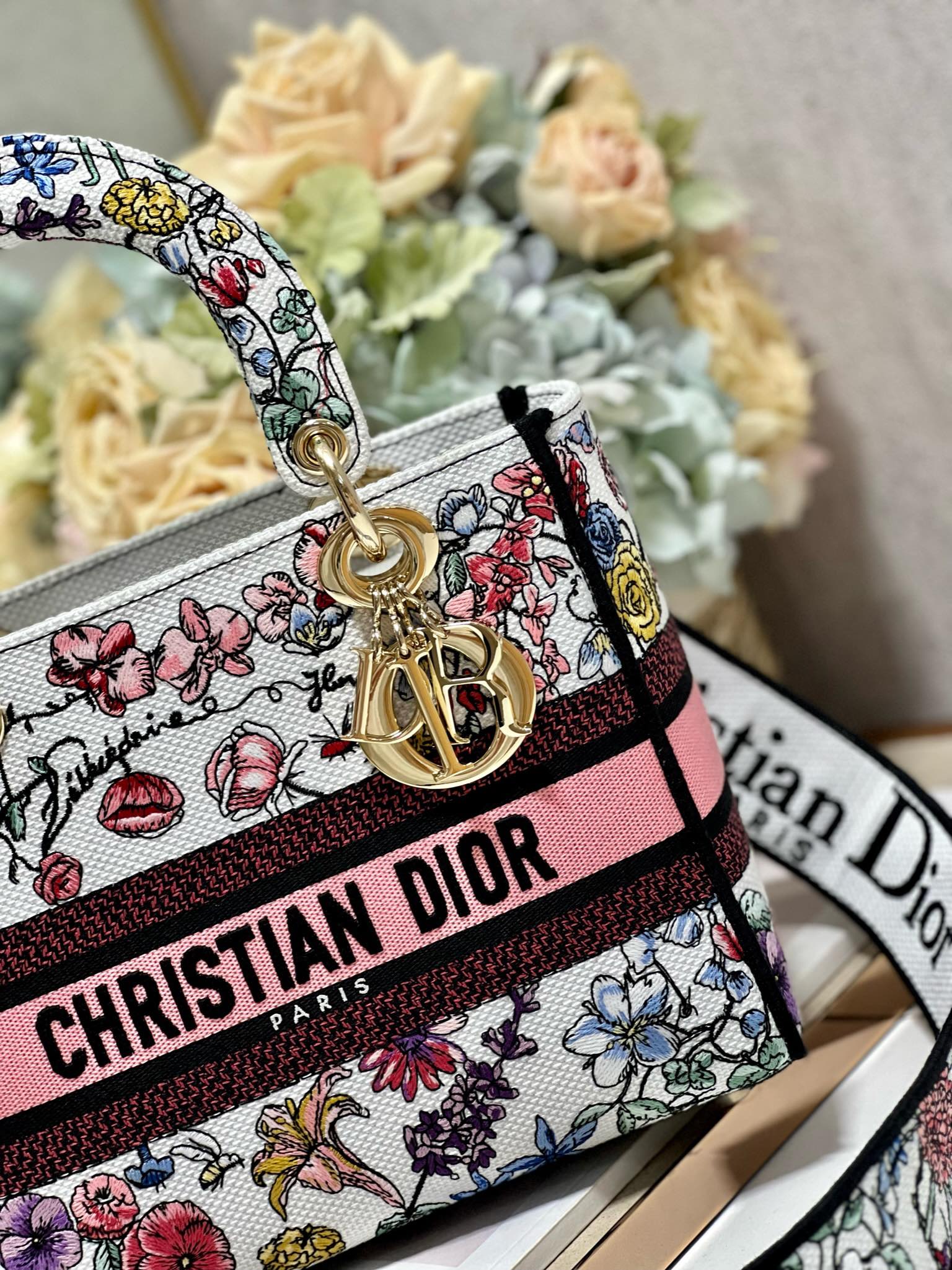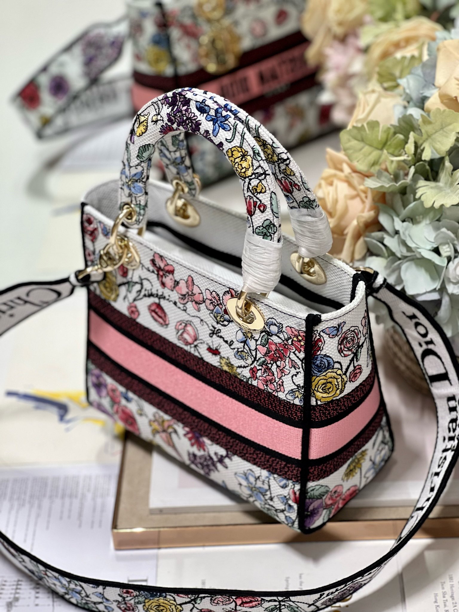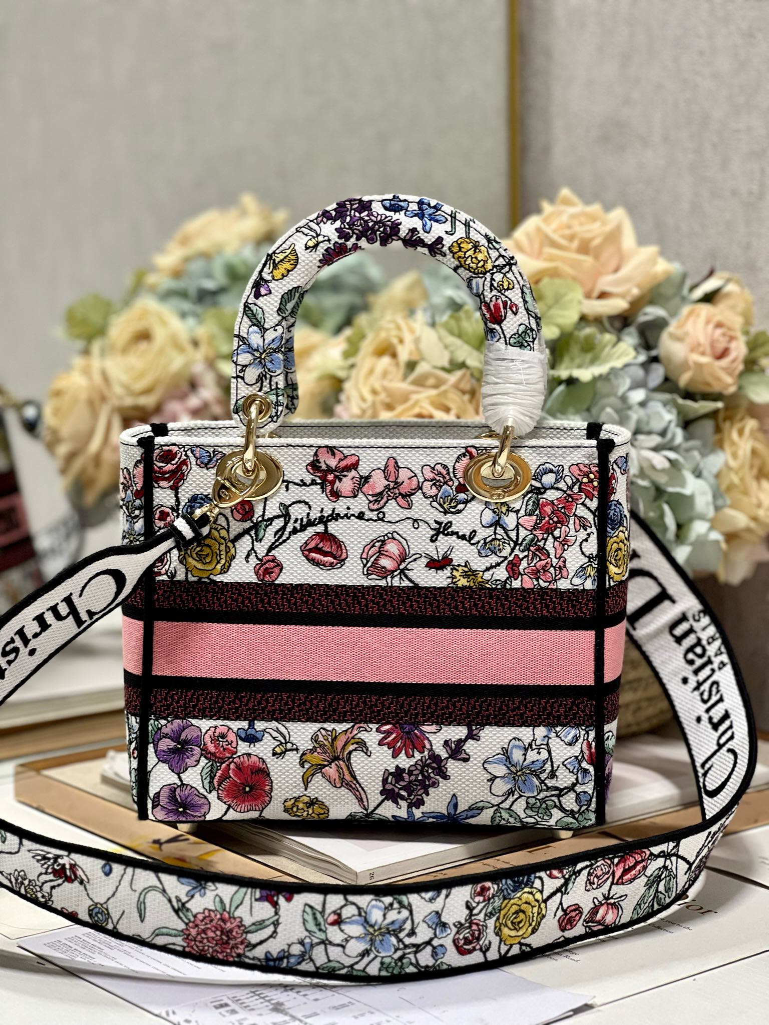 [Butterfly Love Pink Five-Compartment Embroidered Lady Dior] The Lady Dior embroidered bag features the "Christian Dior" logo, fashionable and soft. Adorned with the iconic "D.I.O.R." charm, it adds a touch of liveliness to the exquisite silhouette. It comes with a large detachable double-sided embroidered shoulder strap, allowing you to choose how to carry it as you wish. The detachable double-sided embroidered wide shoulder strap, internal zippered pocket, and patch pocket enable it to be carried by hand, on the shoulder, or across the body, and it can be freely paired with other embroidered straps.