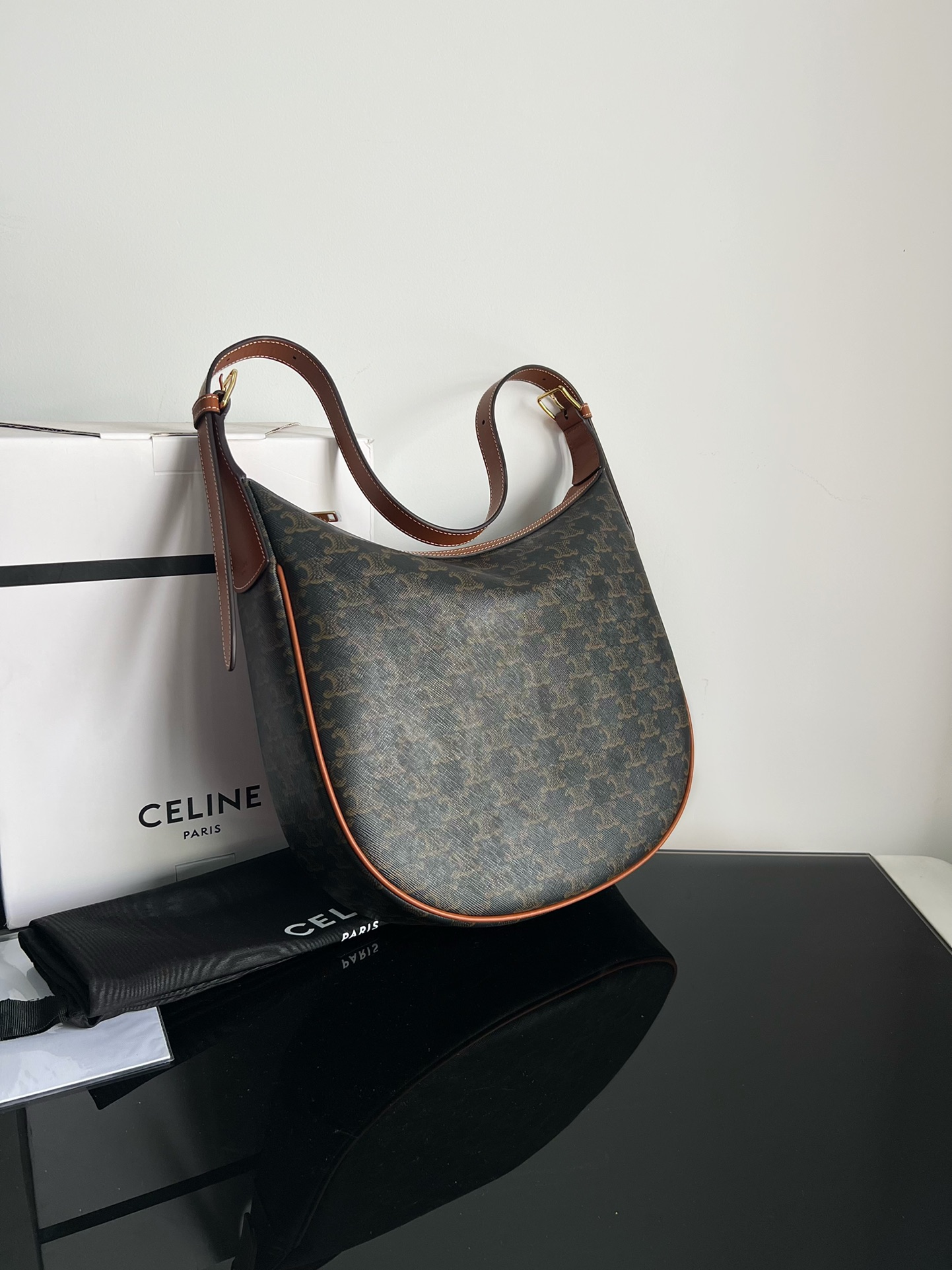 CELINE HELOISE logo printed calfskin handbag, new Hobo underarm bag [original factory leather, all steel hardware] Dimensions: 30 X 28.5 X 8cm, logo print, calfskin trim, fabric lining, gold finish, single shoulder underarm carry, zipper closure, 1 main compartment, adjustable strap