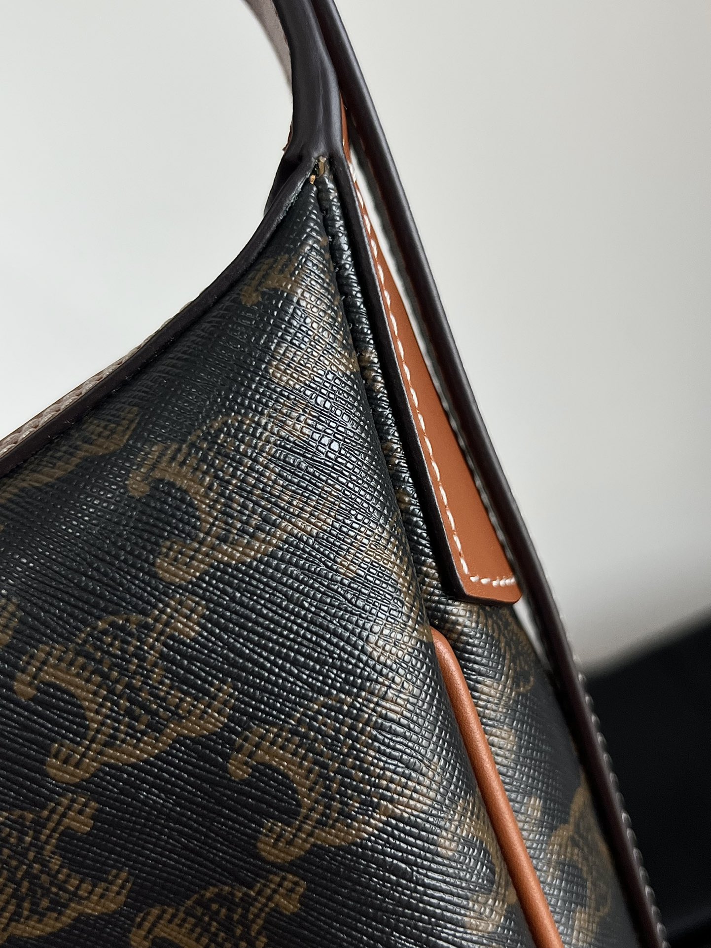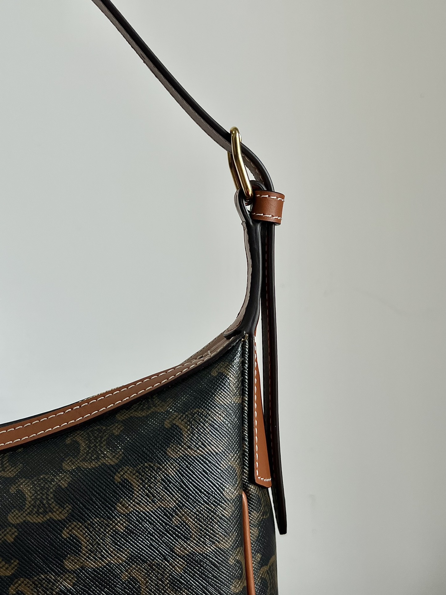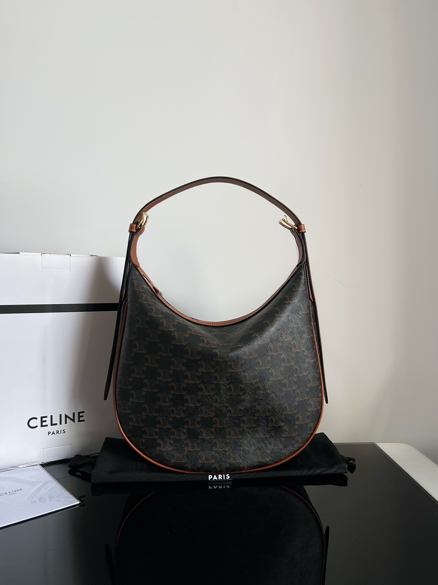 CELINE HELOISE Logo Printed Calfskin Leather Handbag, New Hobo Underarm Bag [Original Factory Leather, Full Steel Hardware] Dimensions: 30 X 28.5 X 8cm, Logo Print, Calfskin Leather Edging, Fabric Lining, Gold Finish, Single Shoulder Underarm Carry, Zipper Closure, 1 Main Compartment, Adjustable Strap