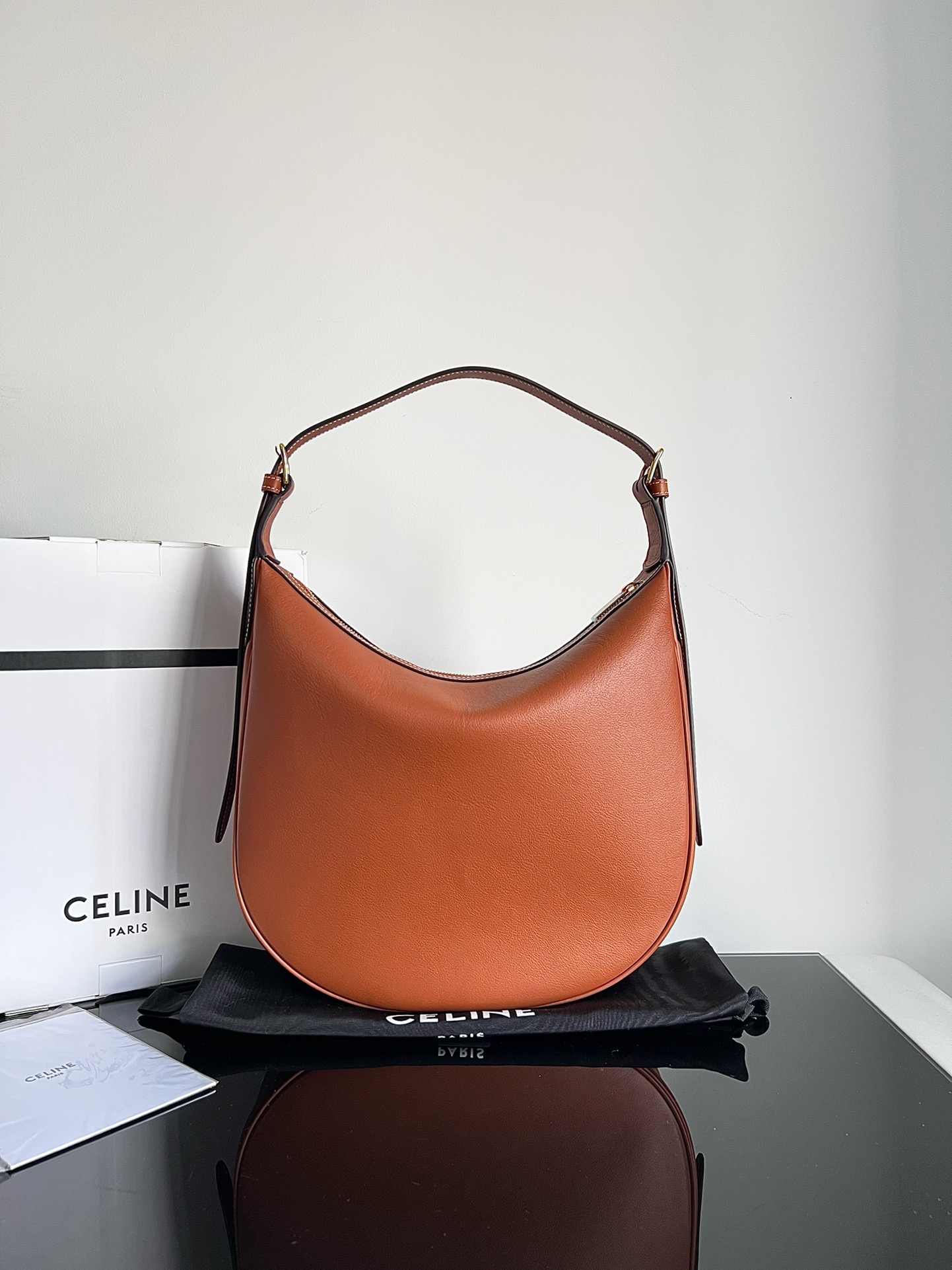 CELINE HELOISE Soft Calfskin Handbag, New Hobo Underarm Bag, Original Factory Leather Full Steel Hardware, Dimensions: 31 X 8 X 25.5cm, Calf Suede Lining, Gold Finish, Single Shoulder Underarm Carry, Zipper Closure, 1 Main Compartment, Adjustable Strap
