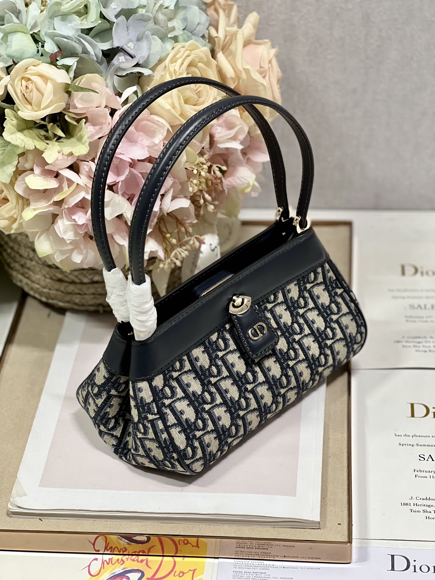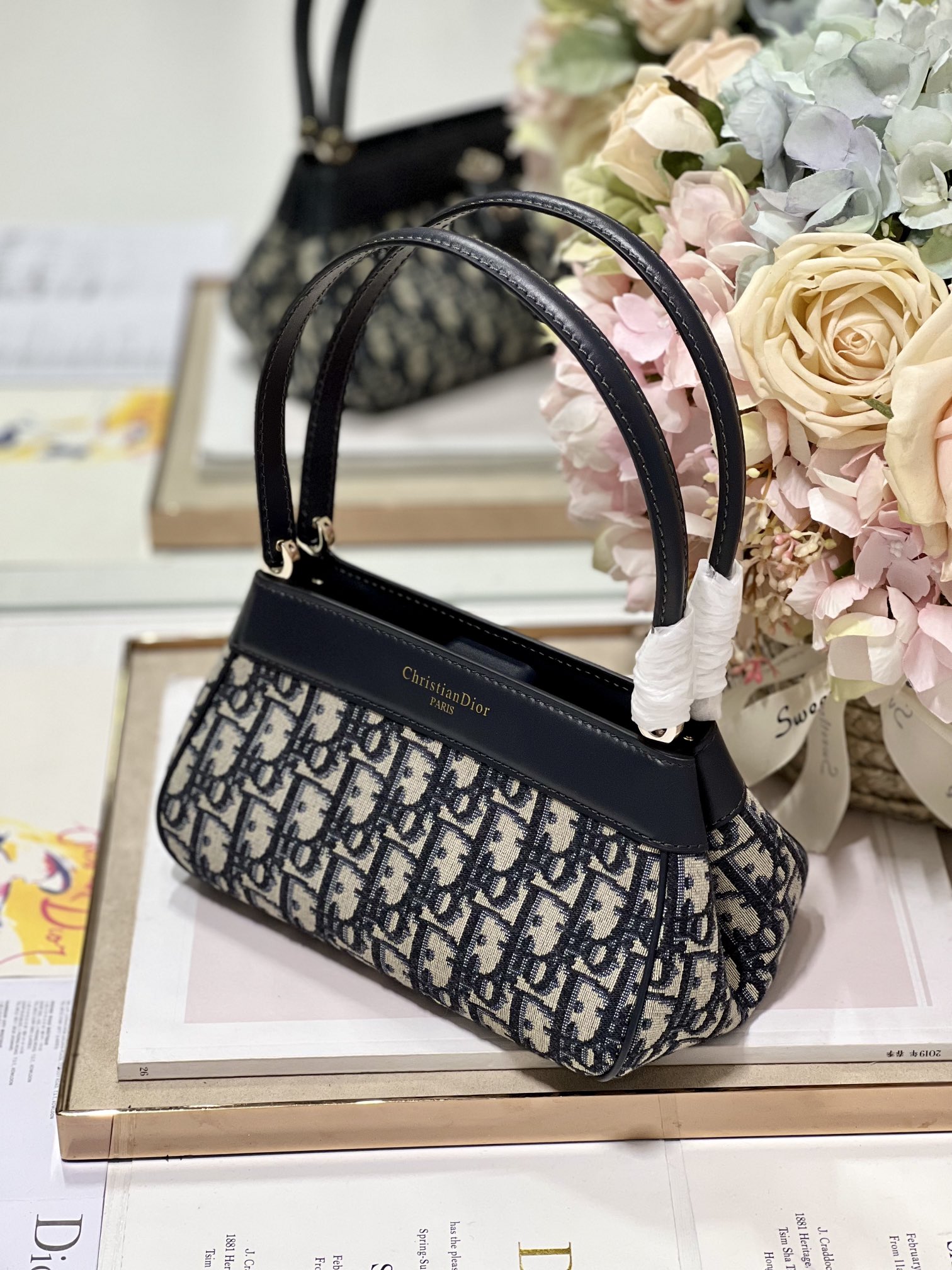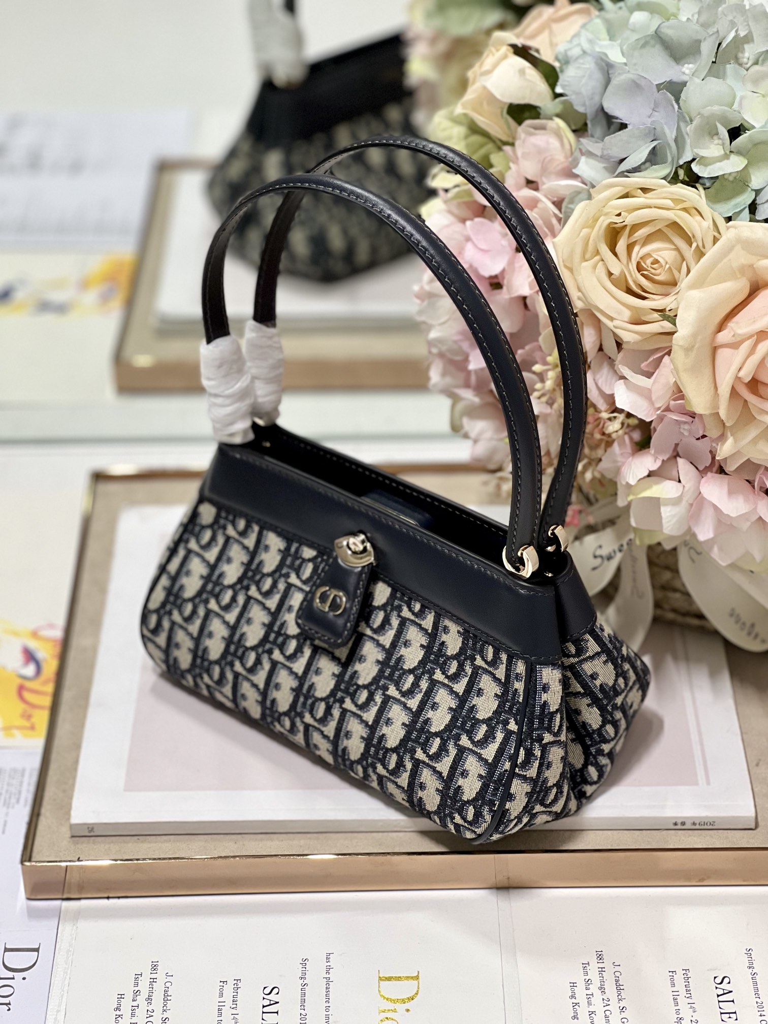 This season's newly launched Dior Key handbag is a main piece from the Ready-to-Wear Spring-Summer 2023 show. Inspired by Dior archives, it exudes retro charm with exquisite style. Meticulously crafted from blue Oblique jacquard fabric, it features a distinctive twist CD logo clasp inspired by signature locks. The interior compartment organizes daily essentials. This small style comes with a slim leather handle for shoulder or hand carry, pairing elegantly with this season's various outfits.