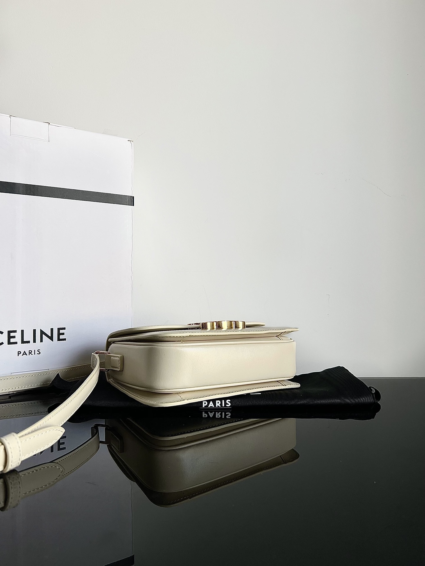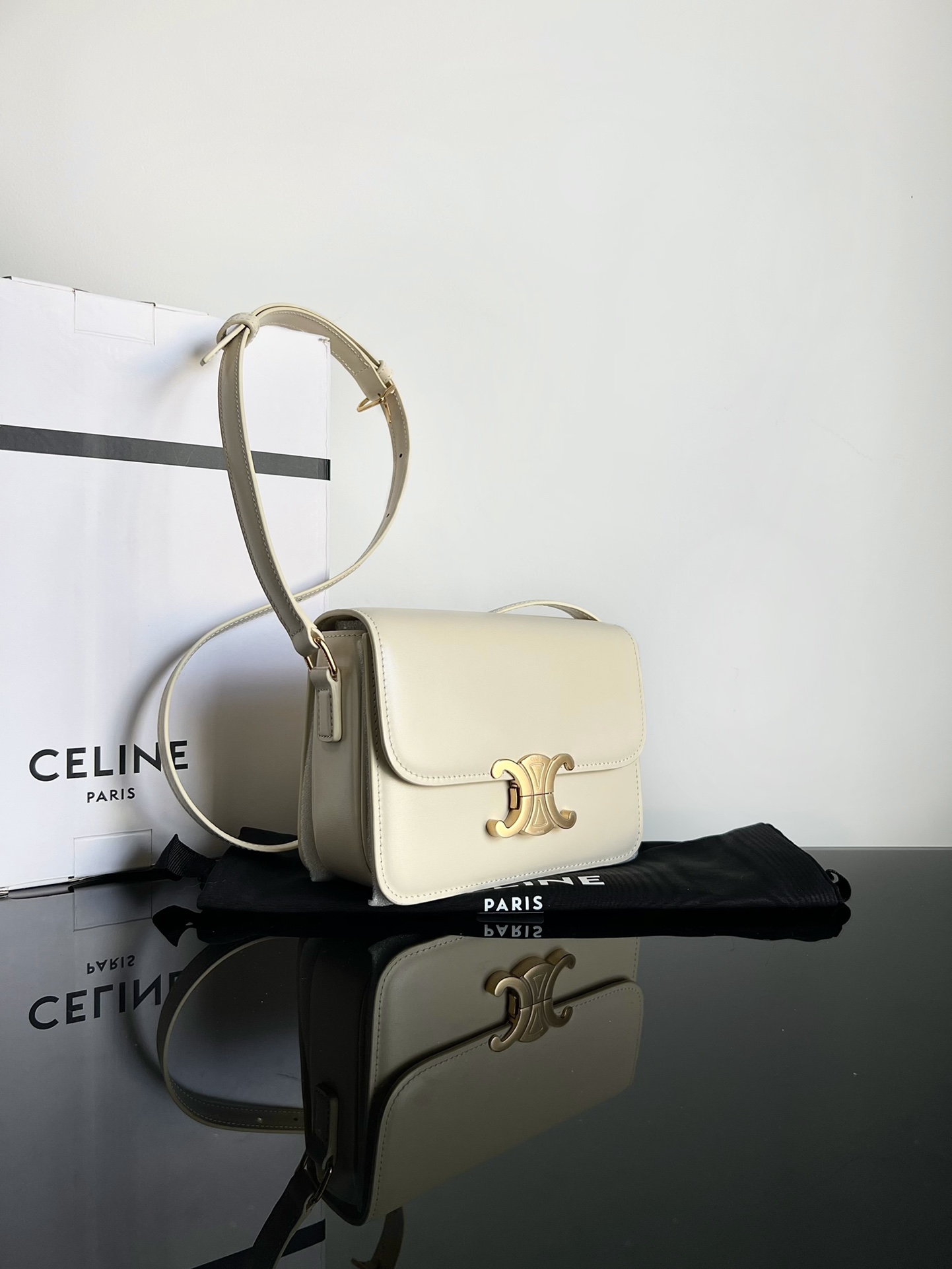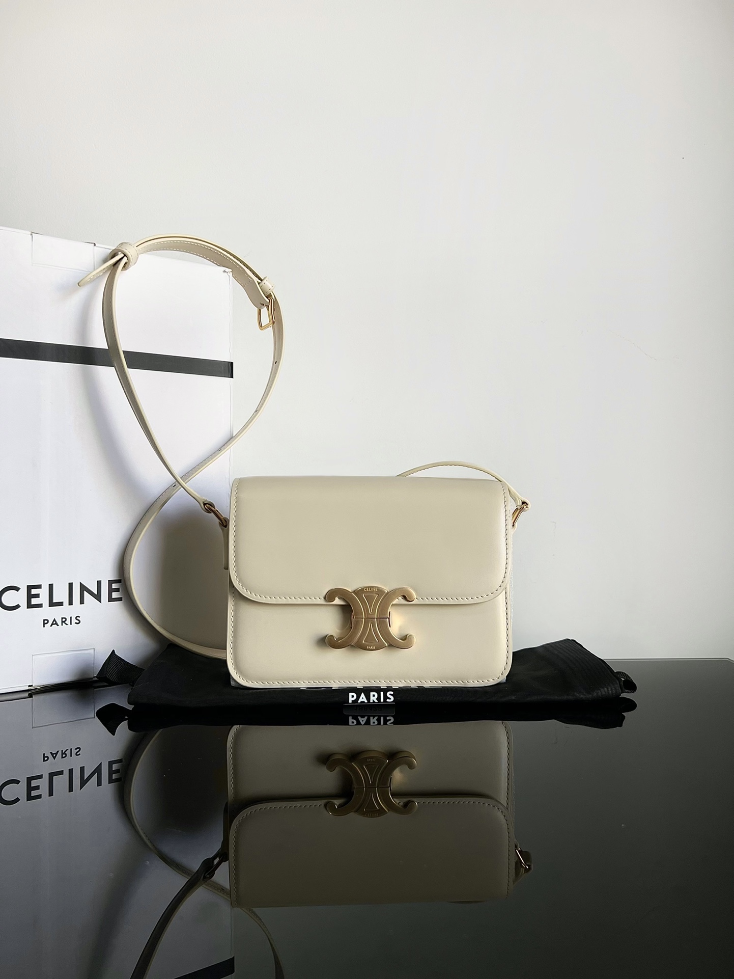 CELINE TRIOMPHE Teen Arch of Triumph. Small size: 18.5 X 14 X 6cm. Genuine factory leather, full steel hardware, TRIOMPHE external cowhide, lambskin lining, crossbody and shoulder wear, TRIOMPHE metallic lock clasp, interior zippered pocket and flat pocket, adjustable leather shoulder strap, authentic factory leather, full steel hardware.