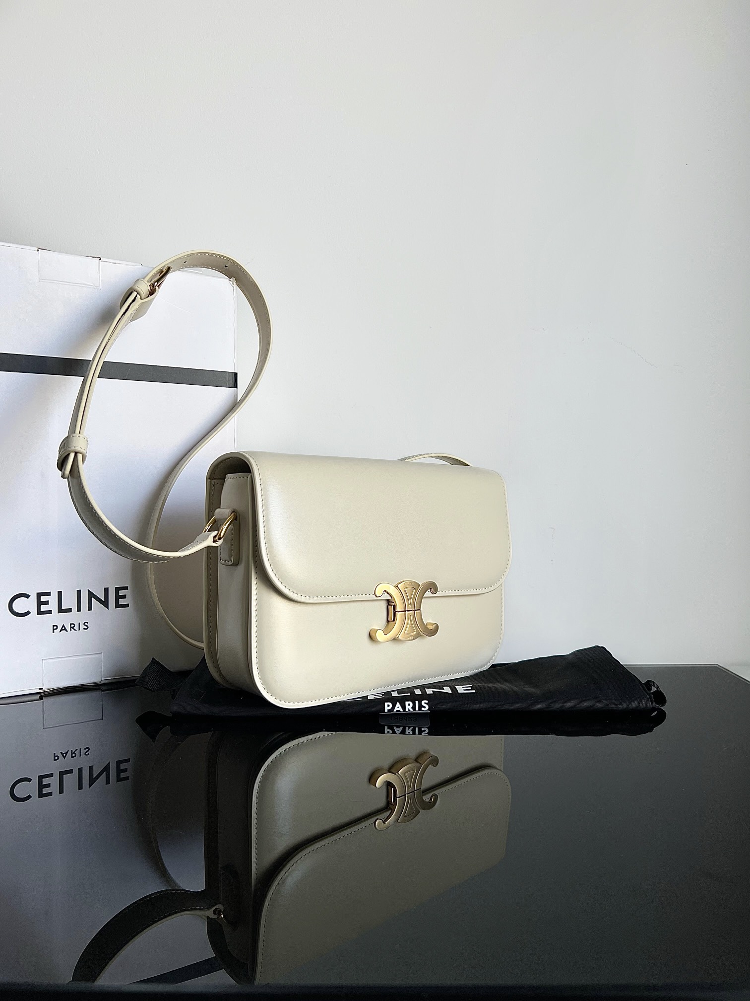 CELINE TRIOMPHE Medium size, dimensions: 22.5 X 16.5 X 7.5cm. Original factory leather, full steel hardware, TRIOMPHE exterior cowhide, lambskin lining, crossbody and shoulder wear, TRIOMPHE metal texture lock clasp, interior zippered pocket and flat pocket, adjustable leather shoulder strap, original genuine leather, top original quality.