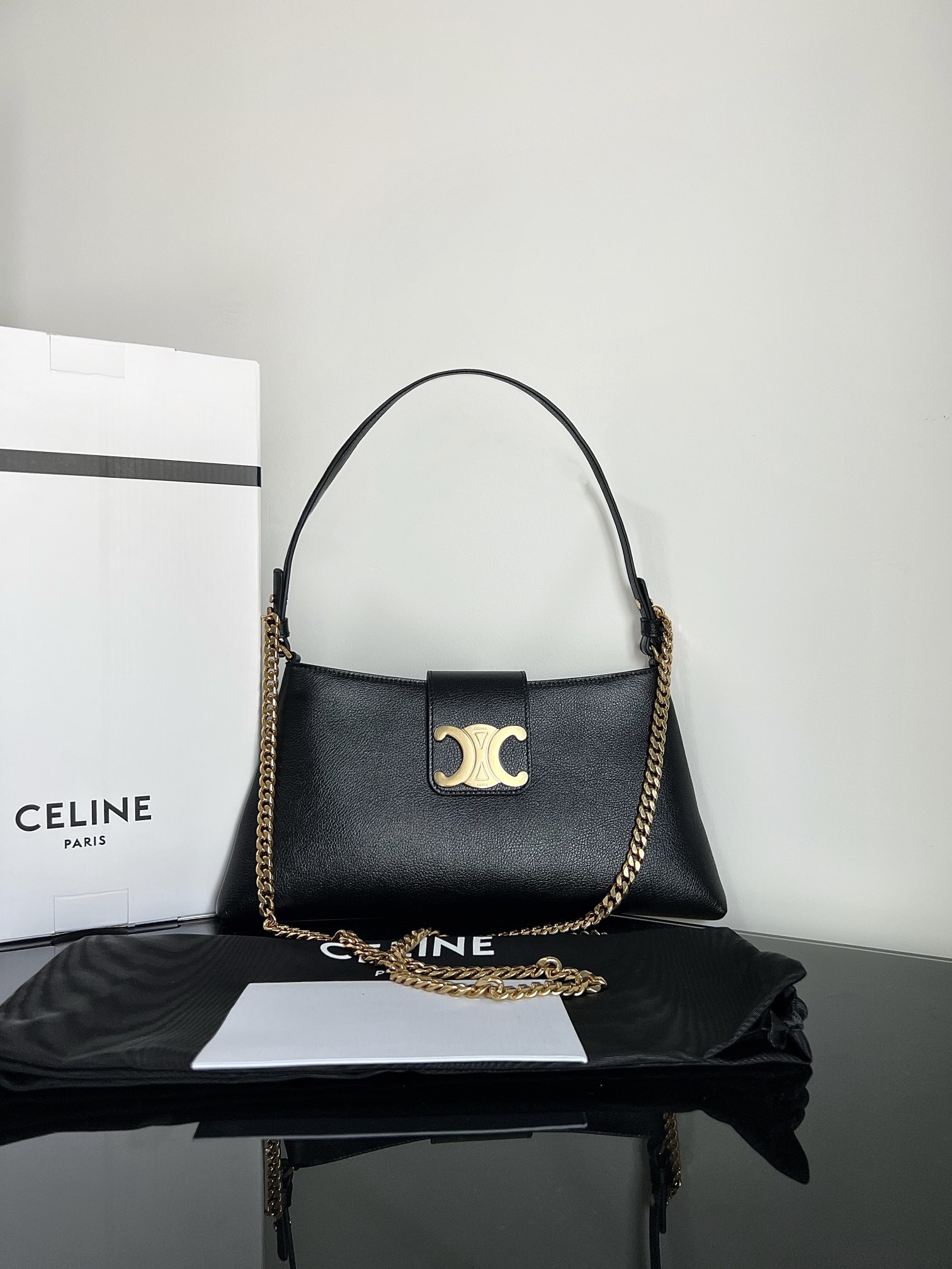 CELINE WILTERN TRIOMPHE SOFT Triumph smooth calfskin handbag, original factory leather + full steel hardware, dimensions: 31 X 15 X 2cm, calfskin, lambskin lining, 1 bag multiple uses: can be carried by hand, on the shoulder, crossbody, and as a clutch. Zipper closure, leather flap, equipped with TRIOMPHE magnetic clasp, 1 main compartment, detachable and adjustable leather shoulder strap 22cm~28cm + detachable chain length 45cm, new Triumph double shoulder strap underarm