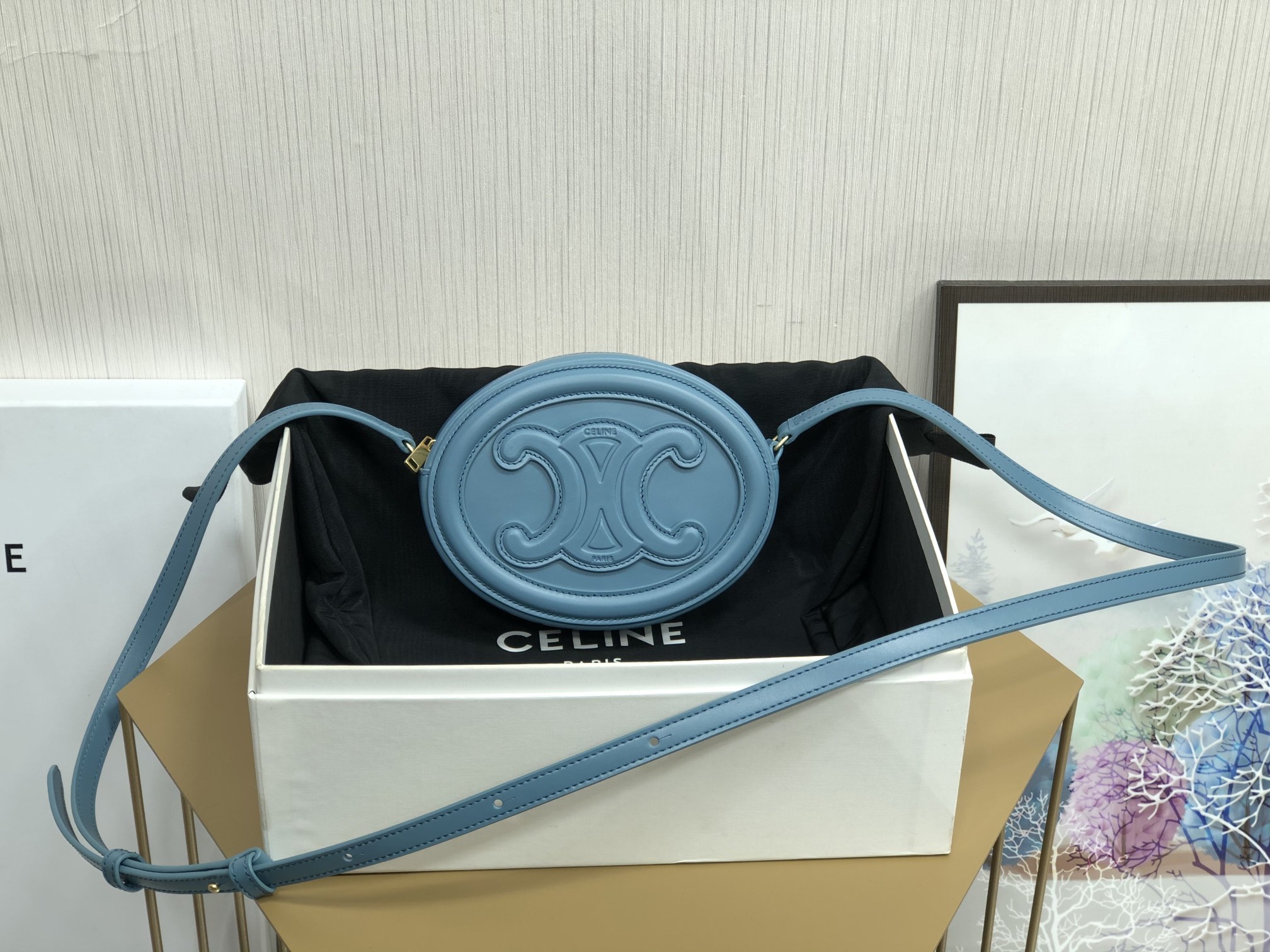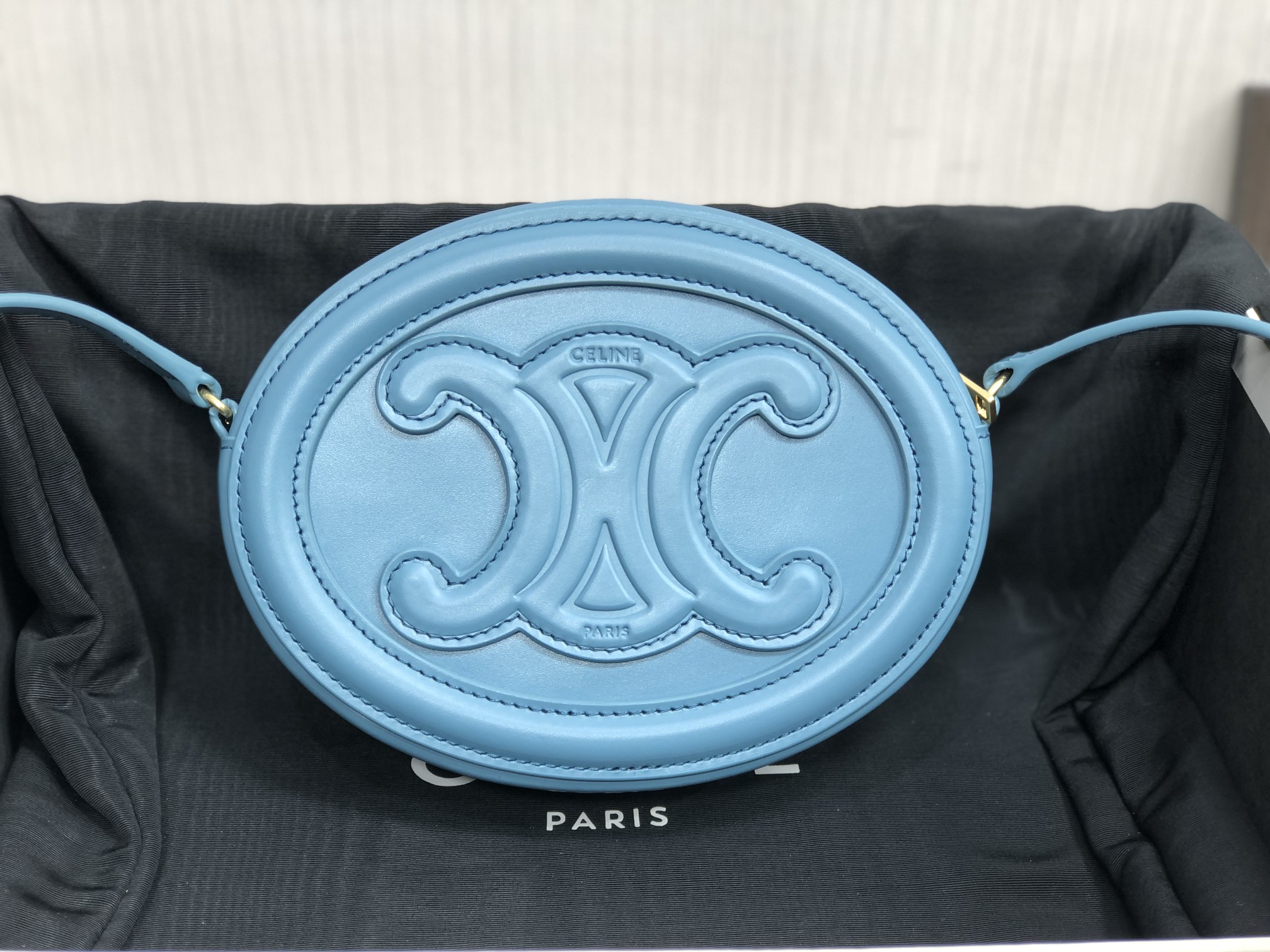 Original Title: CELINE|New Arrival~Small Smooth Calfskin Crossbody Oval Mooncake Bag