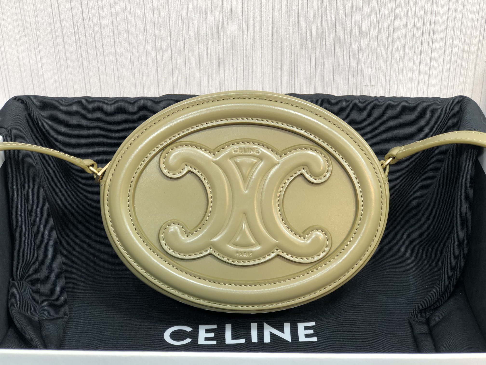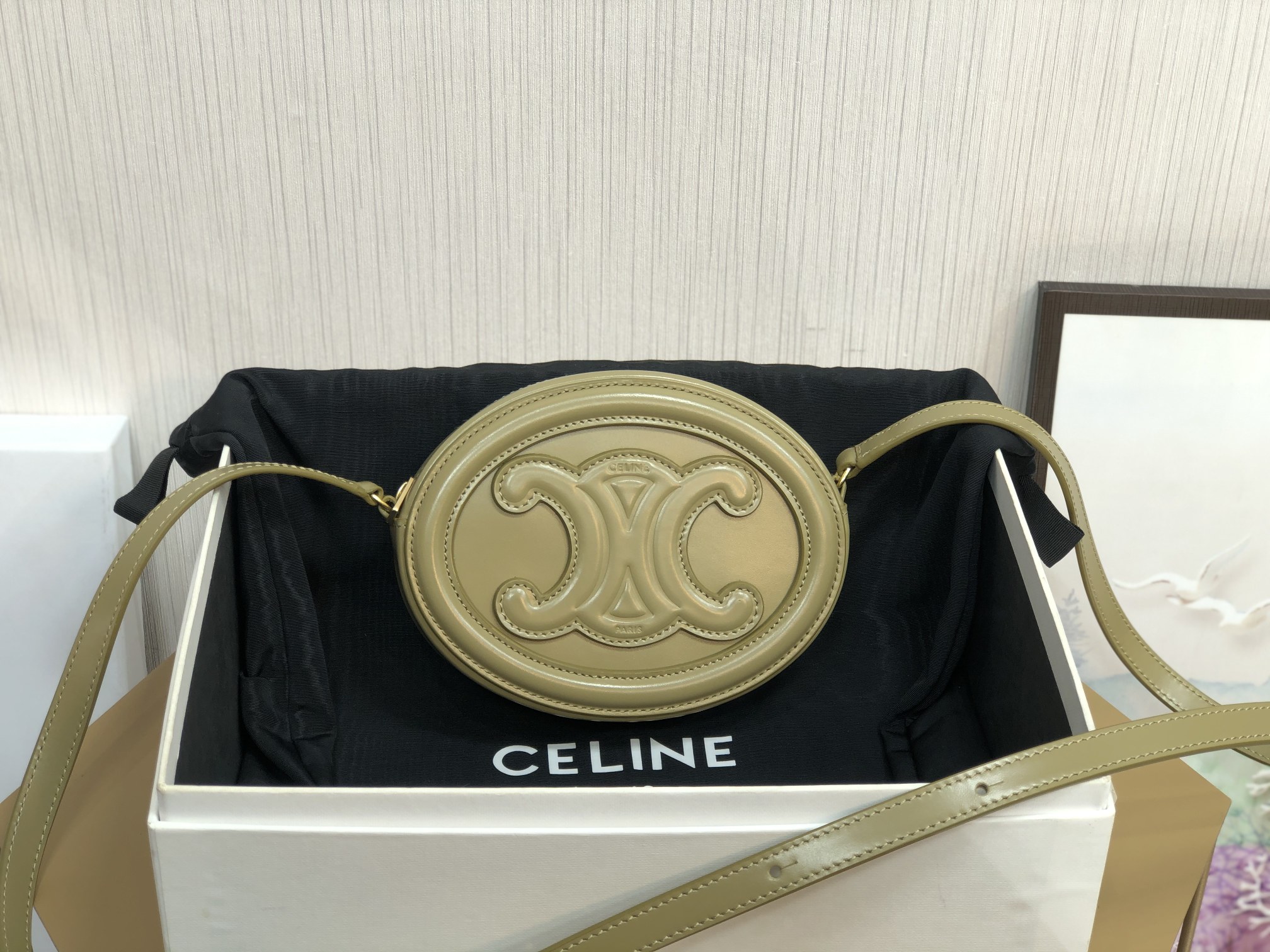 Original Title: CELINE|New Arrival~Small Smooth Calfskin Crossbody Oval Mooncake Bag