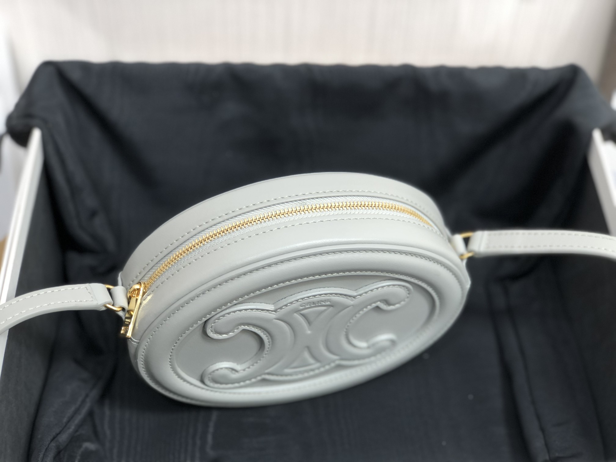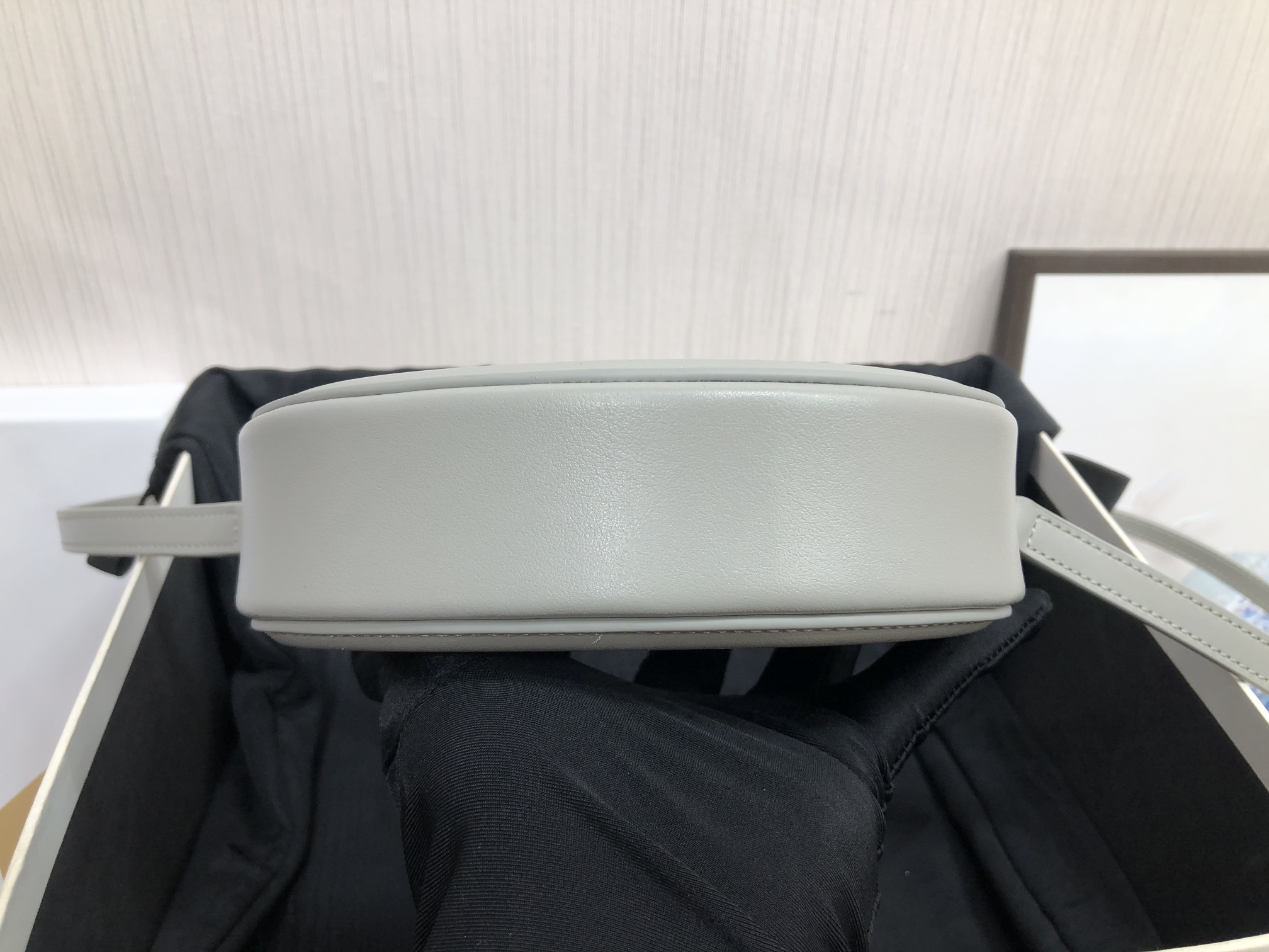 The small mooncake bag is too adorable. Light gray~ The leather texture is perfect.