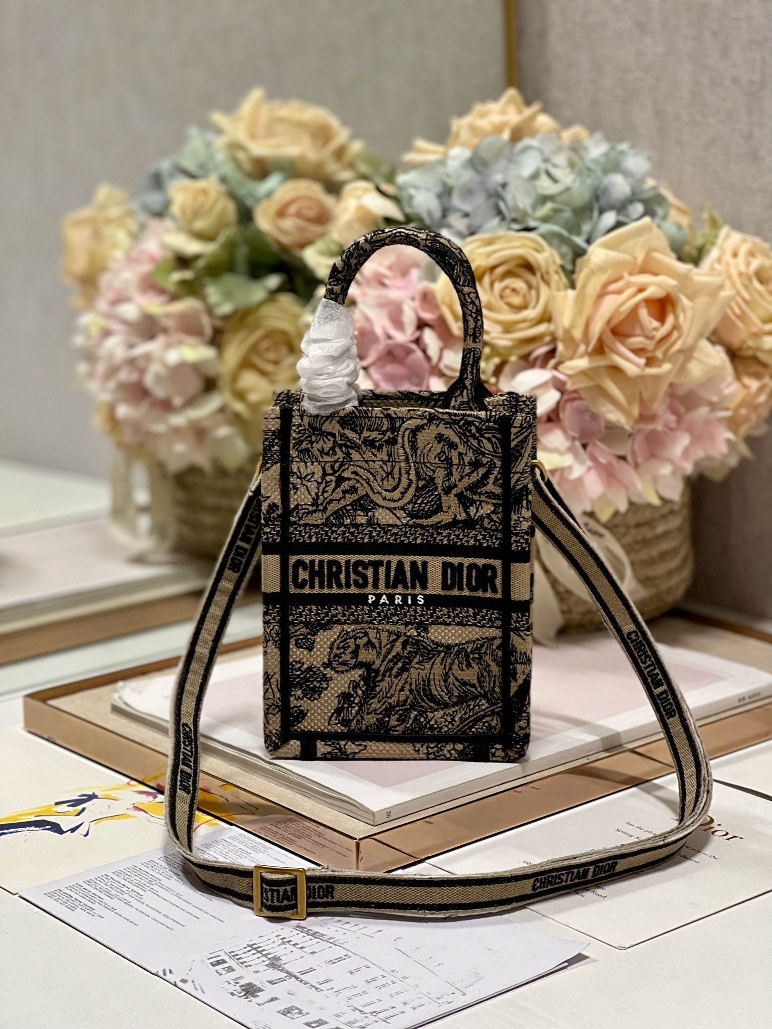 Batch 510/Dior Mini BOOK TOTE Phone Pouch "Apricot Tiger"