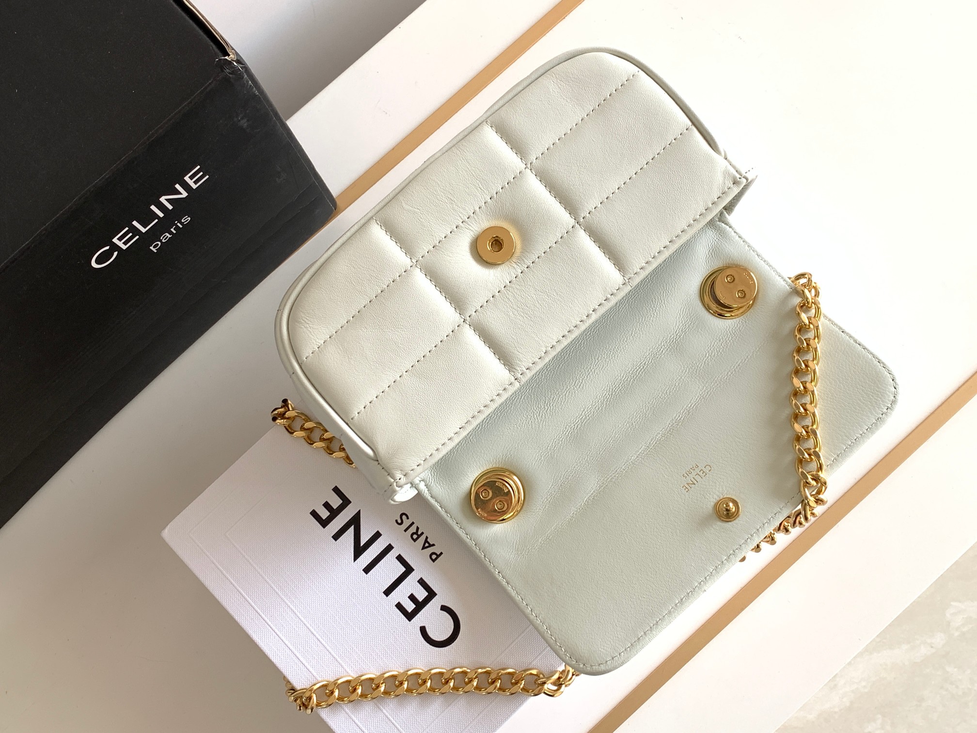 CELINE New Product | MATELASSÉ MONOCHROM Small Quilted Lambskin Chain Horizontal Bag