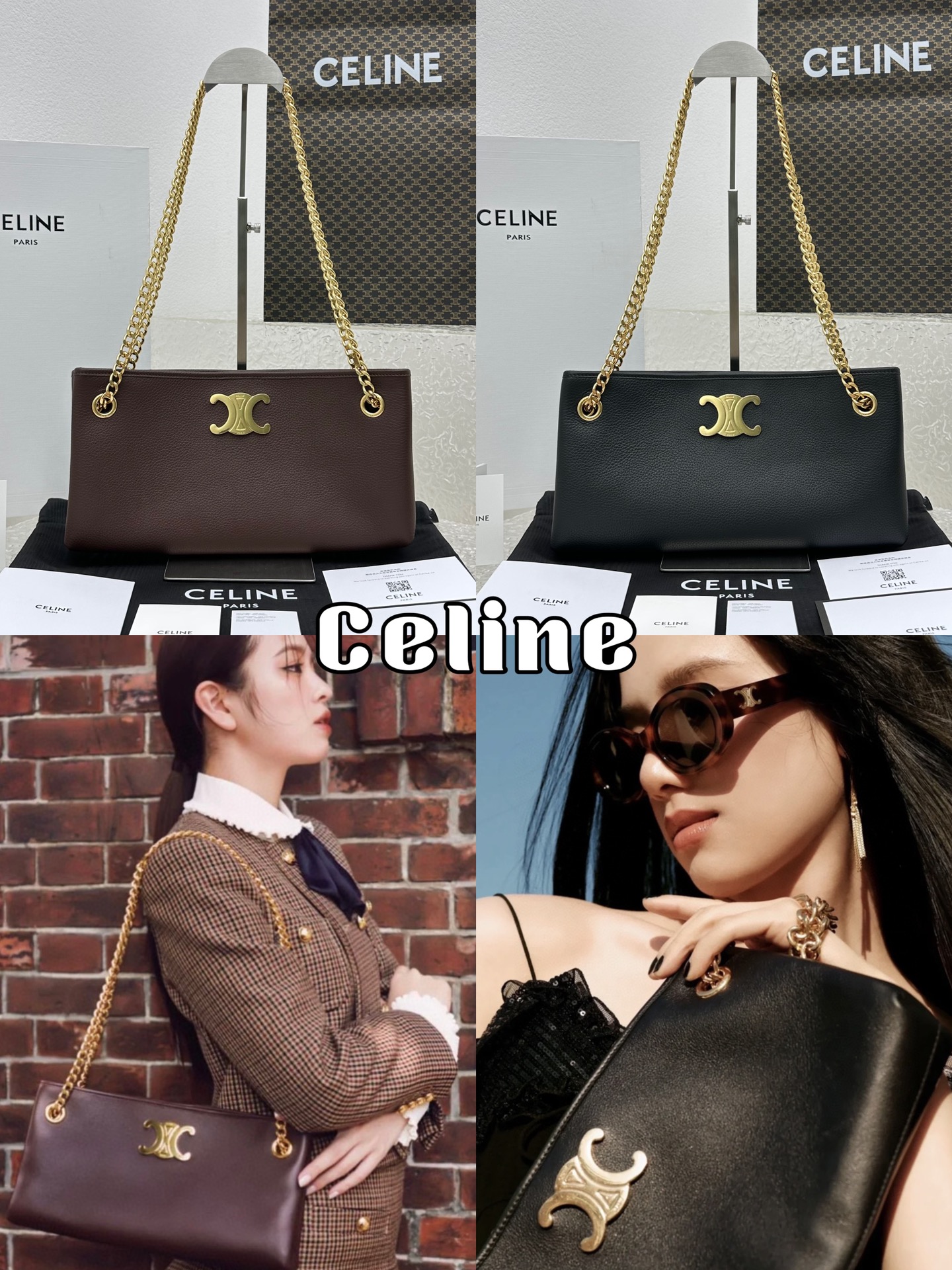 Two colors CELINE Newspaper bag chain bag