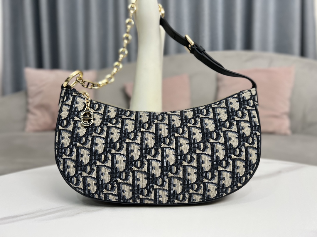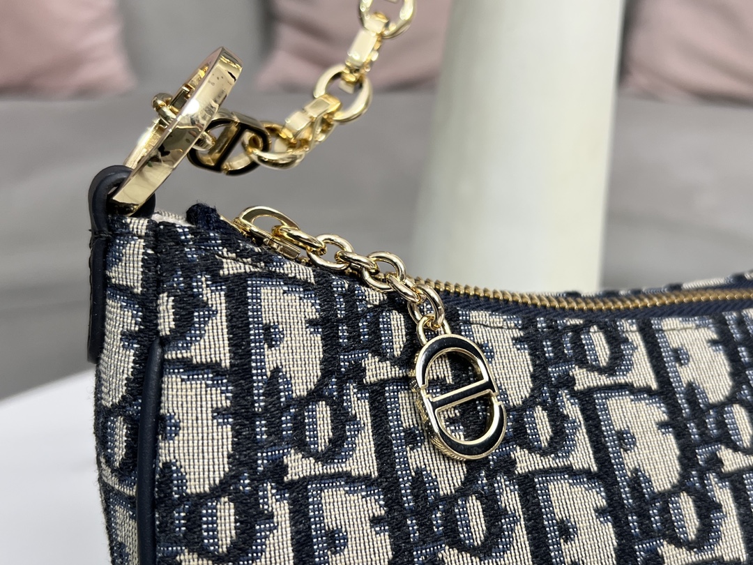 This CD Lounge handbag is a new product for the summer of 2023, showcasing Dior's modern aesthetic and haute couture style. Meticulously crafted from blue Oblique printed fabric, it highlights Dior's classic pattern. The classic chain is combined with leather, alternately adorned with gold-finish metal and enamel links in the same tone. Features a foldable design and can be carried on the shoulder or by hand.