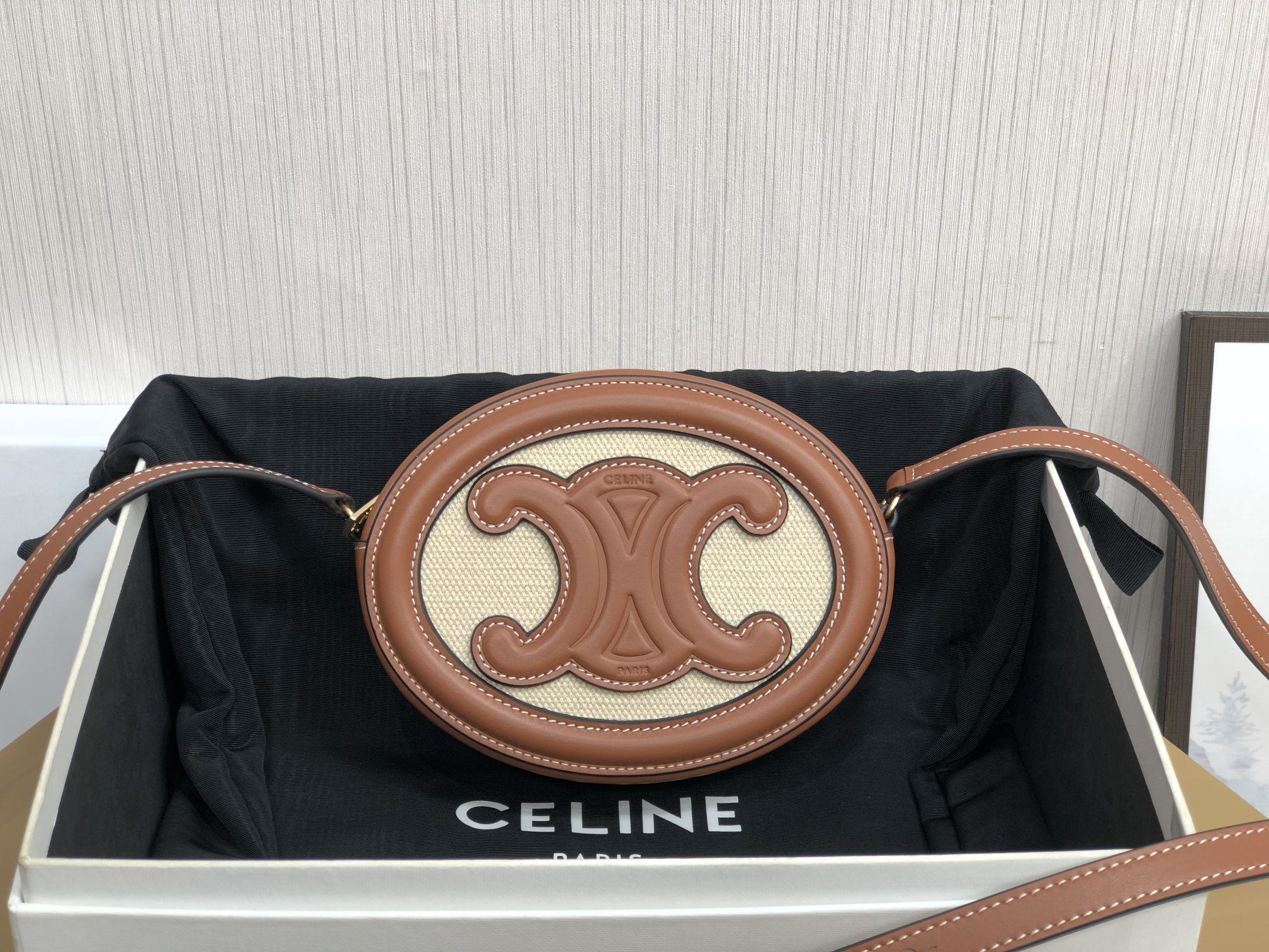 CELINE new product launch | New two-tone small mooncake bag, white woven fabric paired with cowhide. This color is always pleasing to the eye, casual and comfortable, perfect for summer~ Full marks for aesthetics~ Perfect for everyday styling.