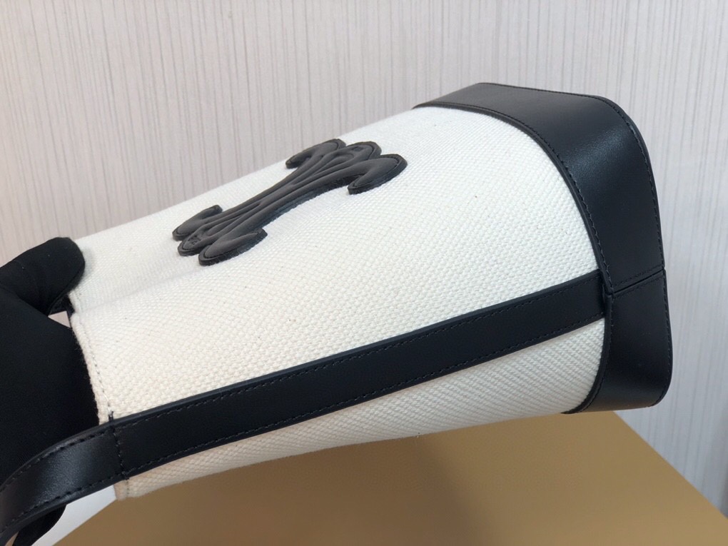 CELINE CUIR TRIOMPHE Small Fabric and Calfskin Bucket Bag