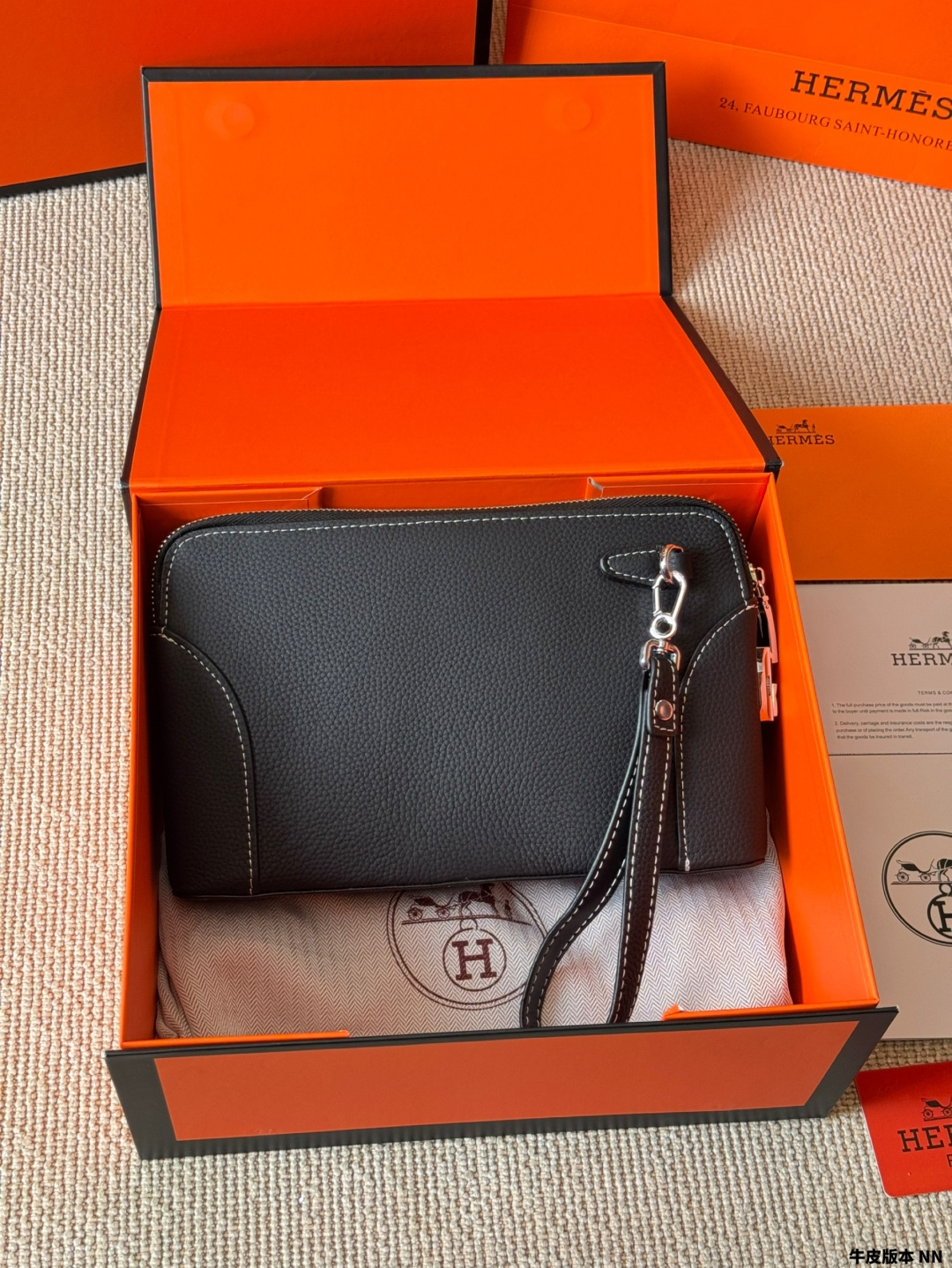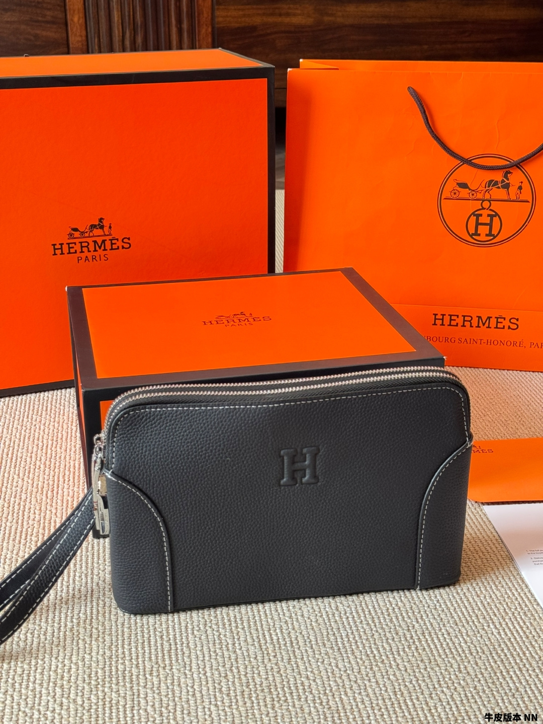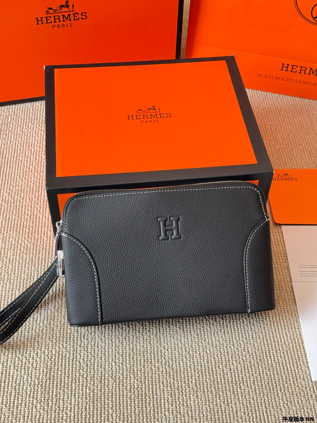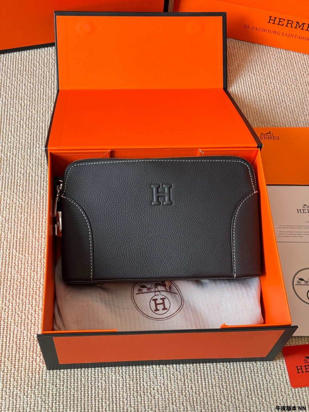 New men's handbag, made from imported cowhide. The leather grain is clear with excellent gloss, and the texture feels great. Perfectly interprets the quality of the leather. Original custom hardware, meticulously handcrafted by top artisans with perfect stitching. (Photos are taken of the actual product, no effects added.) The quality is impeccable, all materials are carefully selected, focusing on high-end, only creating premium products. Dimensions: 29-18-3.5