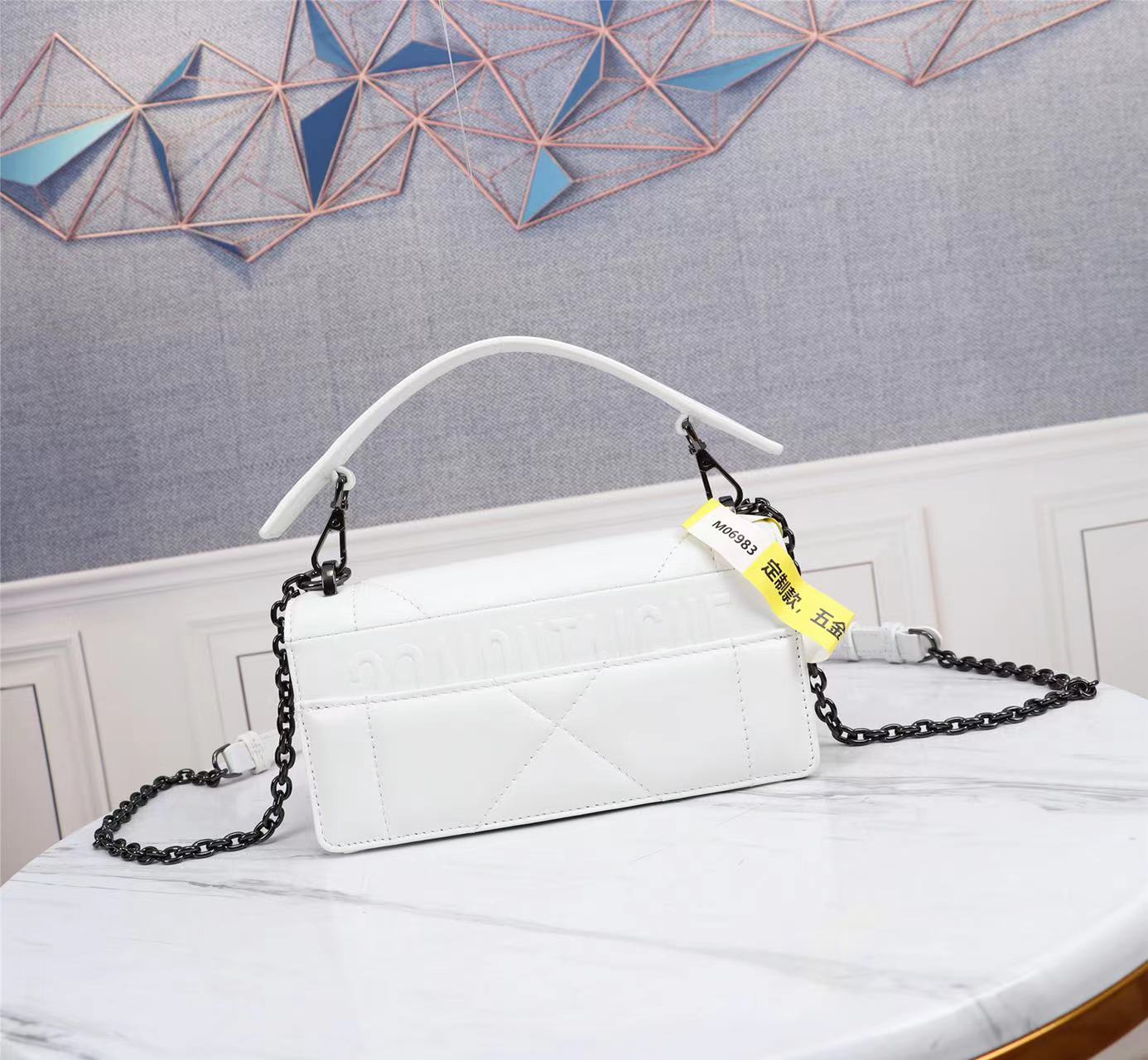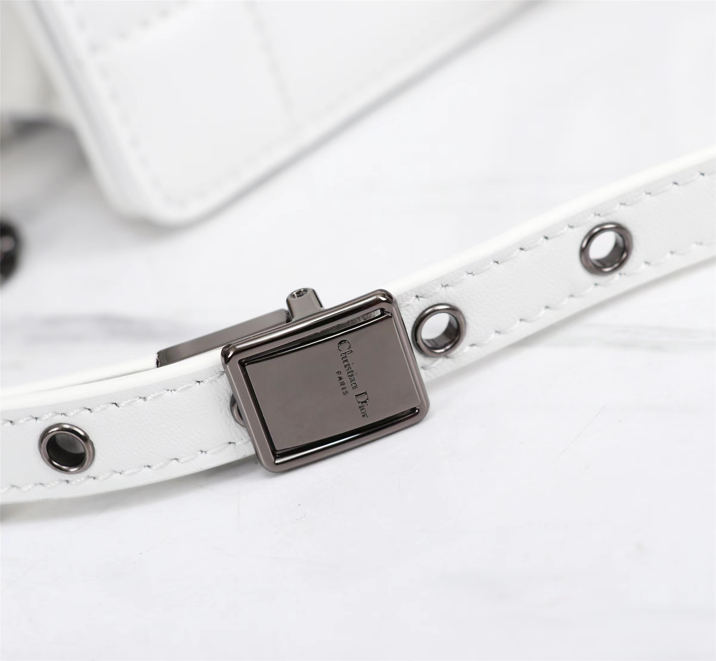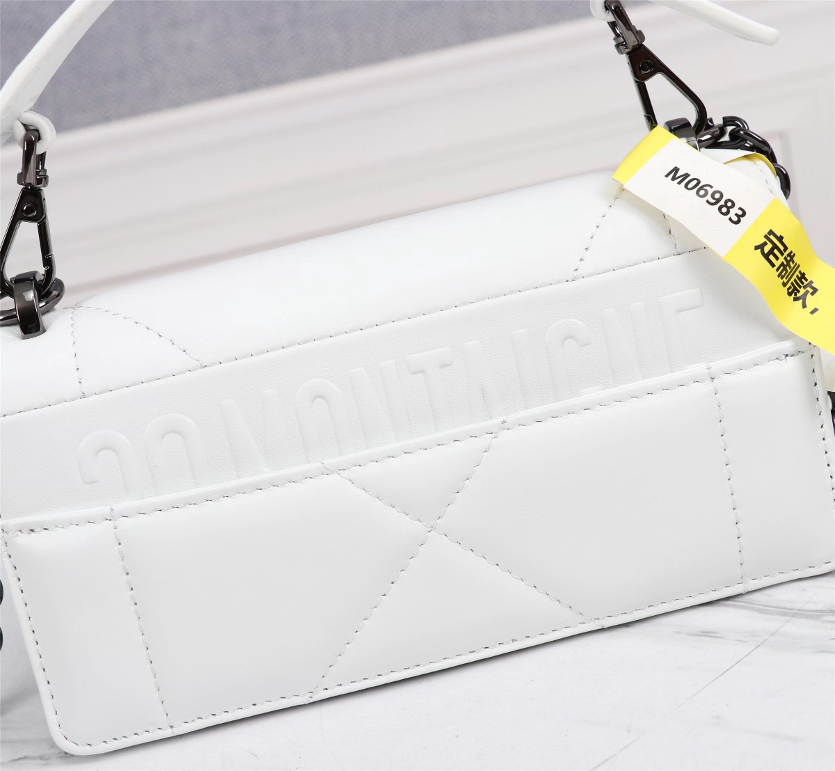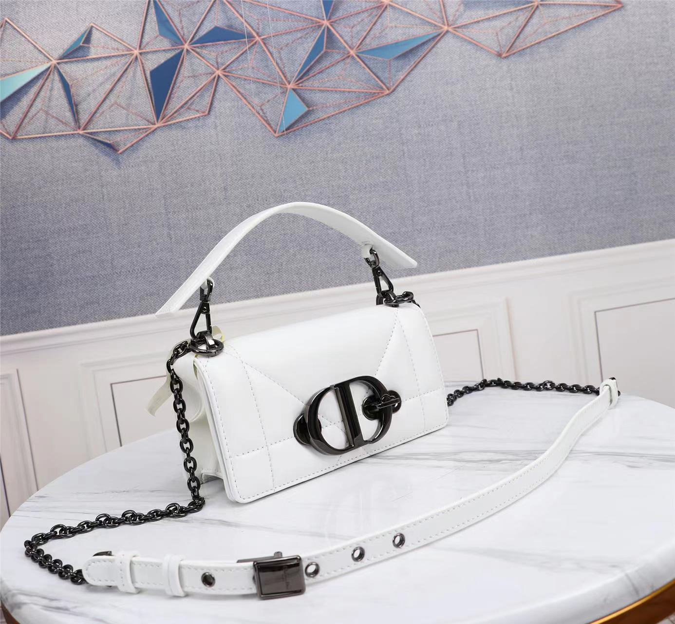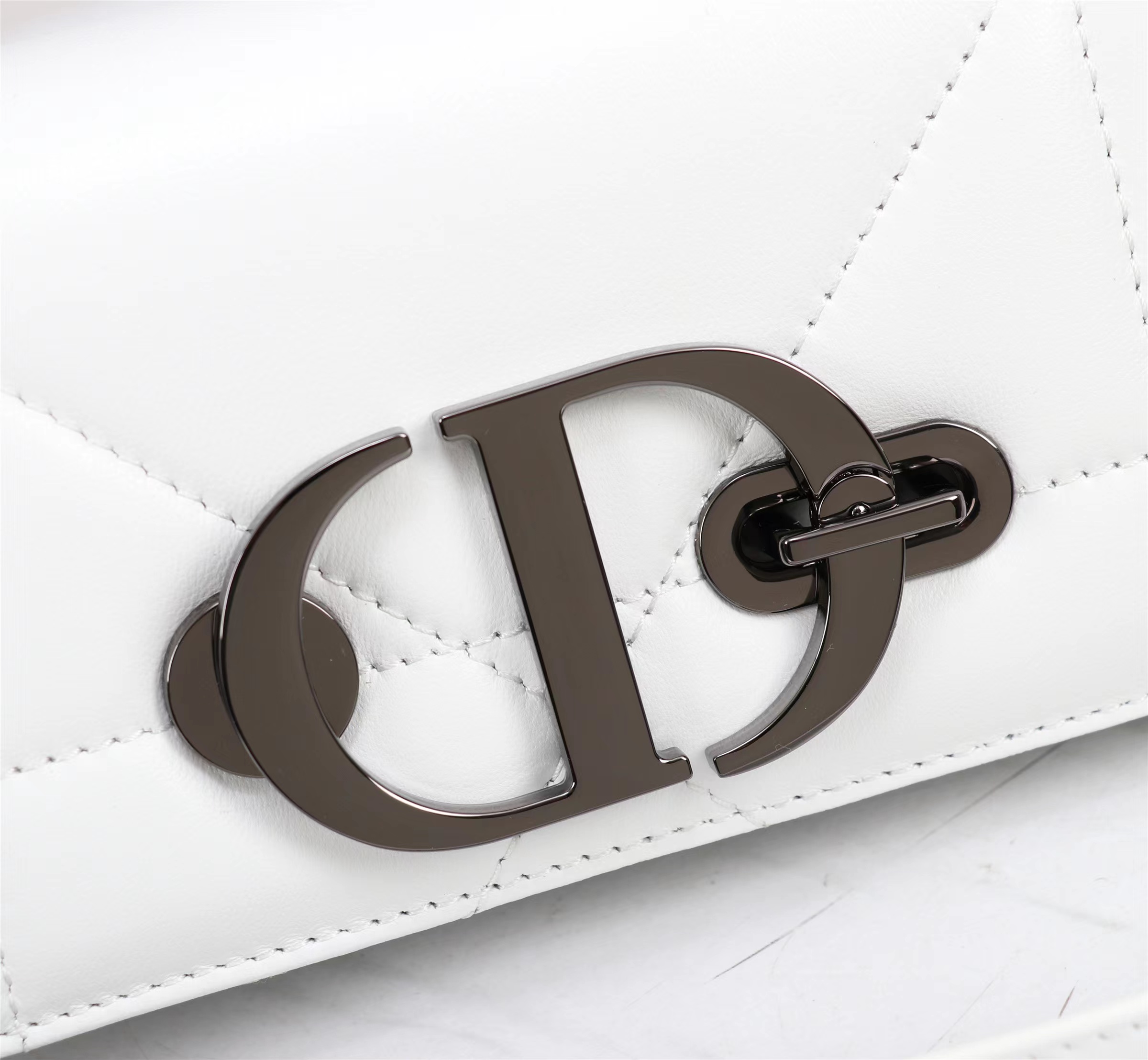 This season's chain pouch with a handle offers an elegant and stylish design, further enriching the 30 Montaigne line. Meticulously crafted from white lambskin, it features an enlarged Cannage pattern with topstitching, a flap, and a metal "CD" hook clasp with metallic coating. It comes with a detachable top handle and an adjustable chain strap, allowing it to be carried by hand, on the shoulder, or cross-body. It can be paired with other 30 Montaigne pieces to create a coordinated look.