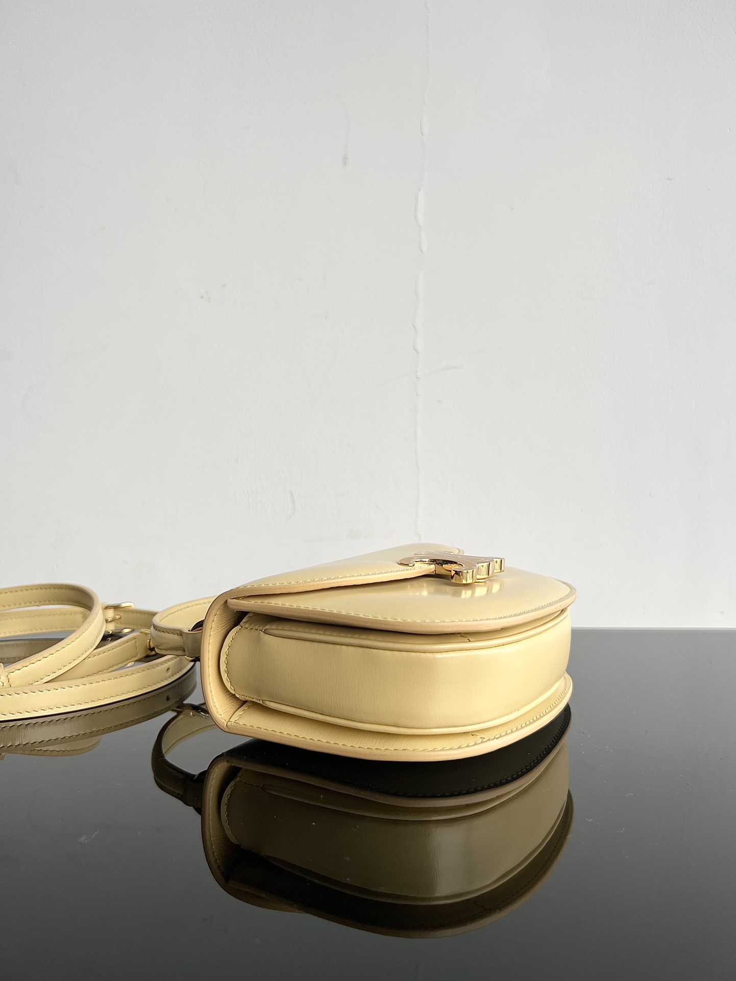 CELINE BESACE TRIOMPHE Mini Shiny Calfskin Bag, Triomphe Handheld Saddle, Dimensions: 15.5 X 11.5 X 5 cm, ❌ This model cannot fit a phone, can be worn cross-body, handheld, or on the shoulder, TRIOMPHE metal snap closure, 1 main compartment, inner flat pocket, adjustable and detachable leather strap [Original leather + full steel hardware] Market highest grade product, comes with full set of packaging as shown in the picture