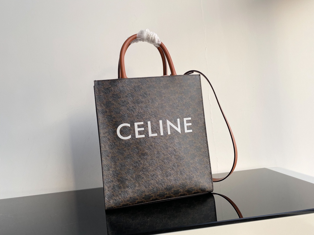 𝐂𝐄𝐋𝐈𝐍𝐄 CABAS MAILLON TRIOMPHE PVC and printed canvas tote calfskin small vertical handbag. Dimensions: 28.5 X 33 X 8cm. Fabric material, 100% fabric lining, inner zip pocket, adjustable leather strap